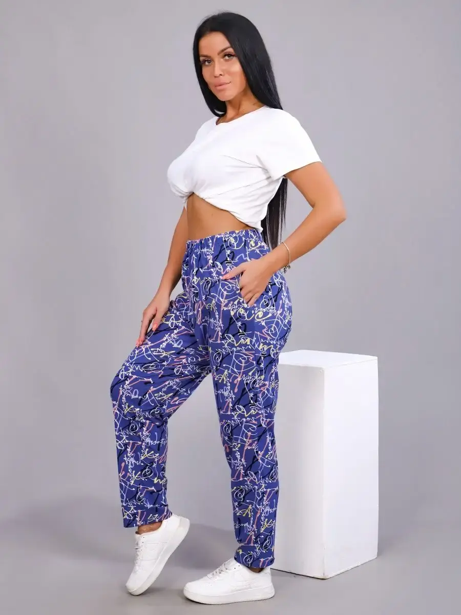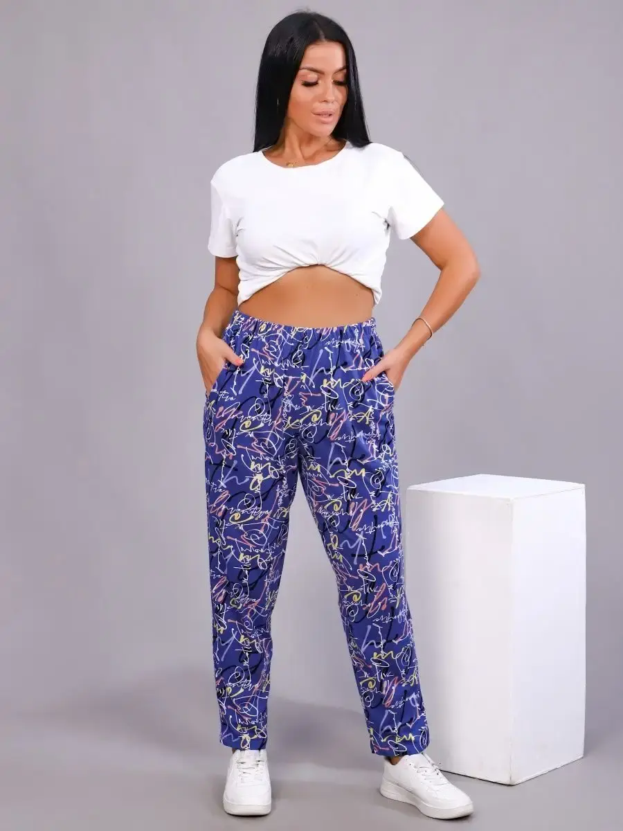 Женские брюки из натурального хлопка, с высокой посадкой, не стесняют движение, имеют боковые удобные карманы, пояс на эластичной резинке. Брюки подойдут на пышнотелых дам, широкий размерный ряд с 50 по 72 размер, сделает Ваш выбор более удобным. Женские брюки отлично подойдут для прогулок, дома и отдыха! Брюки можно сочетать с футболкой различных цветов.