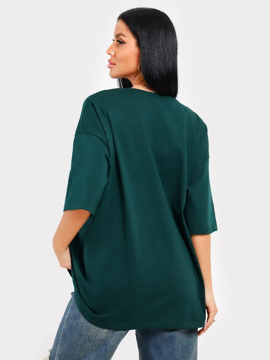Женская футболка - это идеальный выбор для всевозможных случаев! Будь то дом, офис, спортзал или пляж, эта свободная и удлиненная одежда создана для того, чтобы подчеркнуть ваш стиль. Выполненная из хлопкового материала высокого качества, она идеально подходит для повседневного использования в теплые летние дни. Оверсайз крой делает её удобной и практичной для любых активностей. Длинные футболки стали настоящим хитом этого года среди беременных женщин, подростков и девушек. Легкая, премиум-класса ткань обеспечивает вам комфорт на протяжении всего дня. Это незаменимая базовая вещь как для повседневного гардероба, так и для занятий спортом или танцами. Эта однотонная футболка идеально сочетается с шортами или узкими джинсами - прекрасный вариант для офиса или школы.