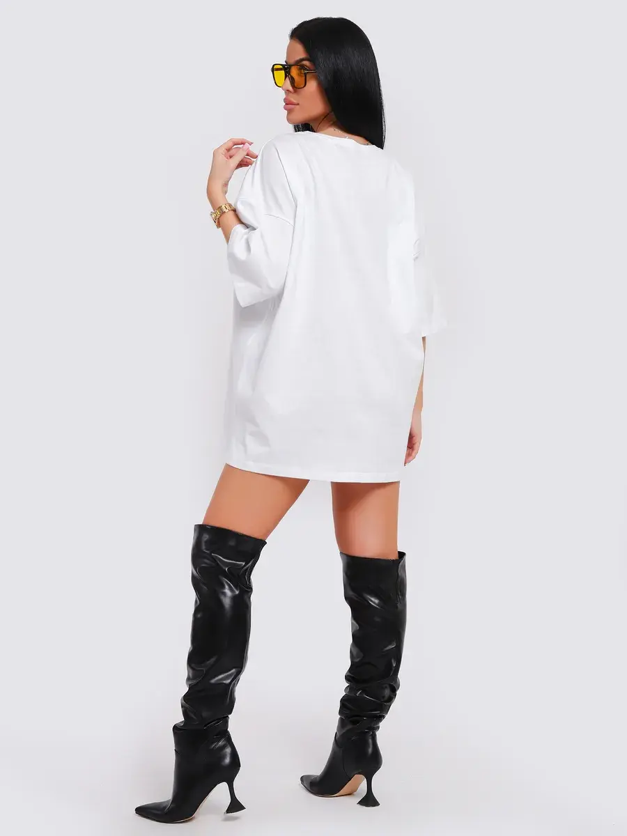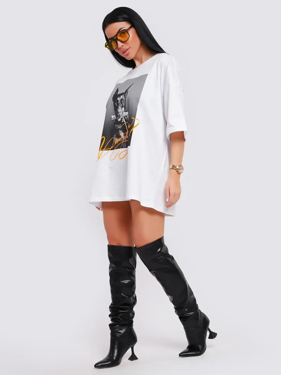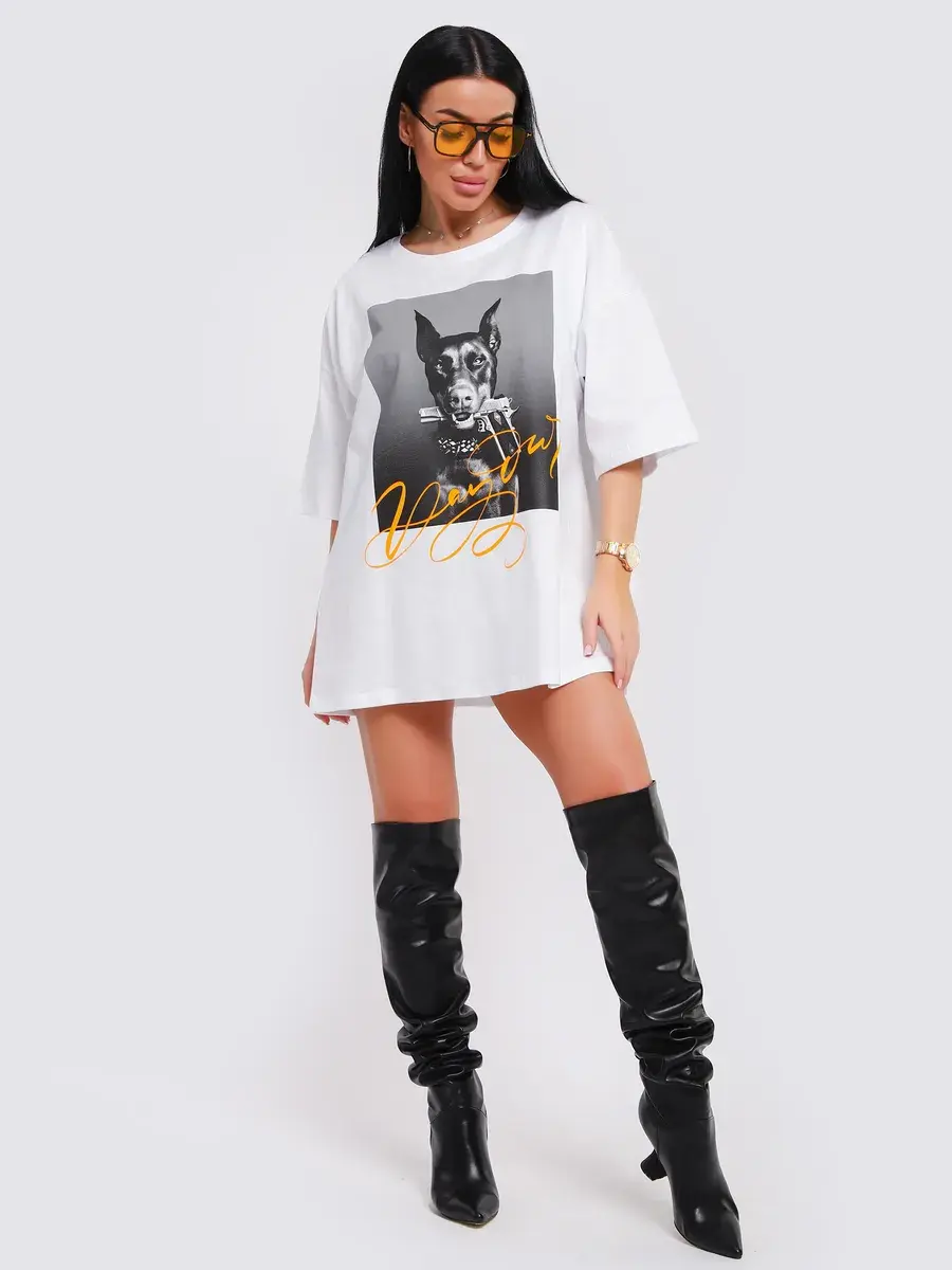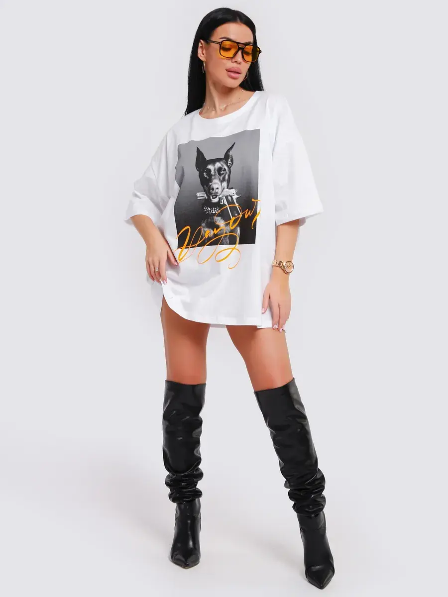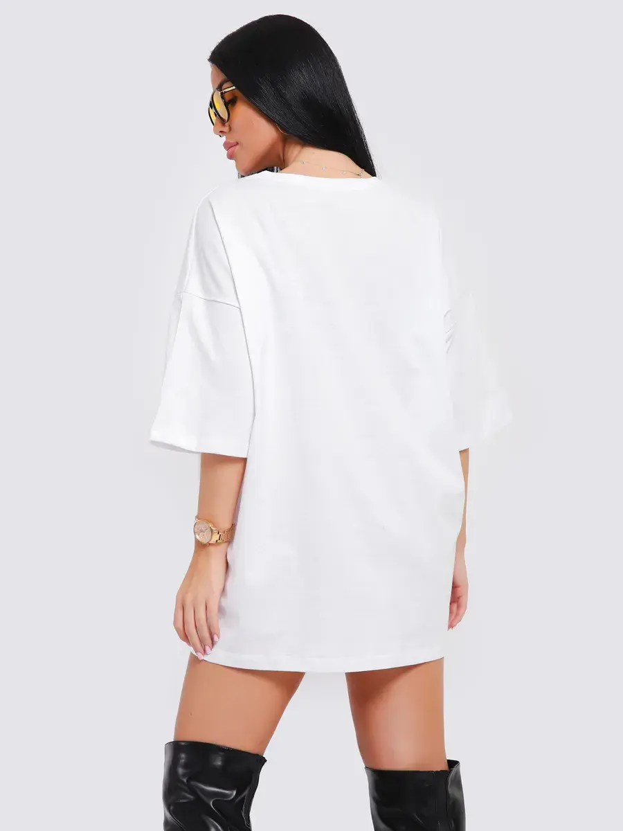 Женская футболка - это идеальный выбор для всевозможных случаев! Будь то дом, офис, спортзал или пляж, эта свободная и удлиненная одежда создана для того, чтобы подчеркнуть ваш стиль. Выполненная из хлопкового материала высокого качества, она идеально подходит для повседневного использования. Оверсайз крой делает её удобной и практичной для любых активностей. Длинные футболки стали настоящим хитом этого года среди беременных женщин, подростков и девушек. Легкая, премиум-класса ткань обеспечивает вам комфорт на протяжении всего дня. Это незаменимая базовая вещь как для повседневного гардероба, так и для занятий спортом или танцами. Эта однотонная футболка идеально сочетается с шортами или узкими джинсами - прекрасный вариант для офиса или школы. Вы можете выбрать подходящий Вам размер,ориентируясь на Ваши предпочтения-футболки подойдут на размеры от 42 до 62р. Желаем Вам удачных покупок!