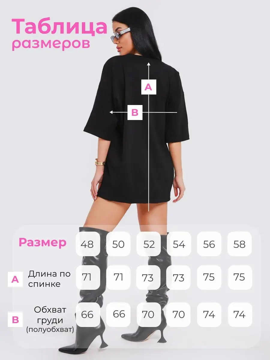 Женская футболка - это идеальный выбор для всевозможных случаев! Будь то дом, офис, спортзал или пляж, эта свободная и удлиненная одежда создана для того, чтобы подчеркнуть ваш стиль. Выполненная из хлопкового материала высокого качества, она идеально подходит для повседневного использования. Оверсайз крой делает её удобной и практичной для любых активностей. Длинные футболки стали настоящим хитом этого года среди беременных женщин, подростков и девушек. Легкая, премиум-класса ткань обеспечивает вам комфорт на протяжении всего дня. Это незаменимая базовая вещь как для повседневного гардероба, так и для занятий спортом или танцами. Эта однотонная футболка идеально сочетается с шортами или узкими джинсами - прекрасный вариант для офиса или школы. Вы можете выбрать подходящий Вам размер,ориентируясь на Ваши предпочтения-футболки подойдут на размеры от 42 до 62р. Желаем Вам удачных покупок!