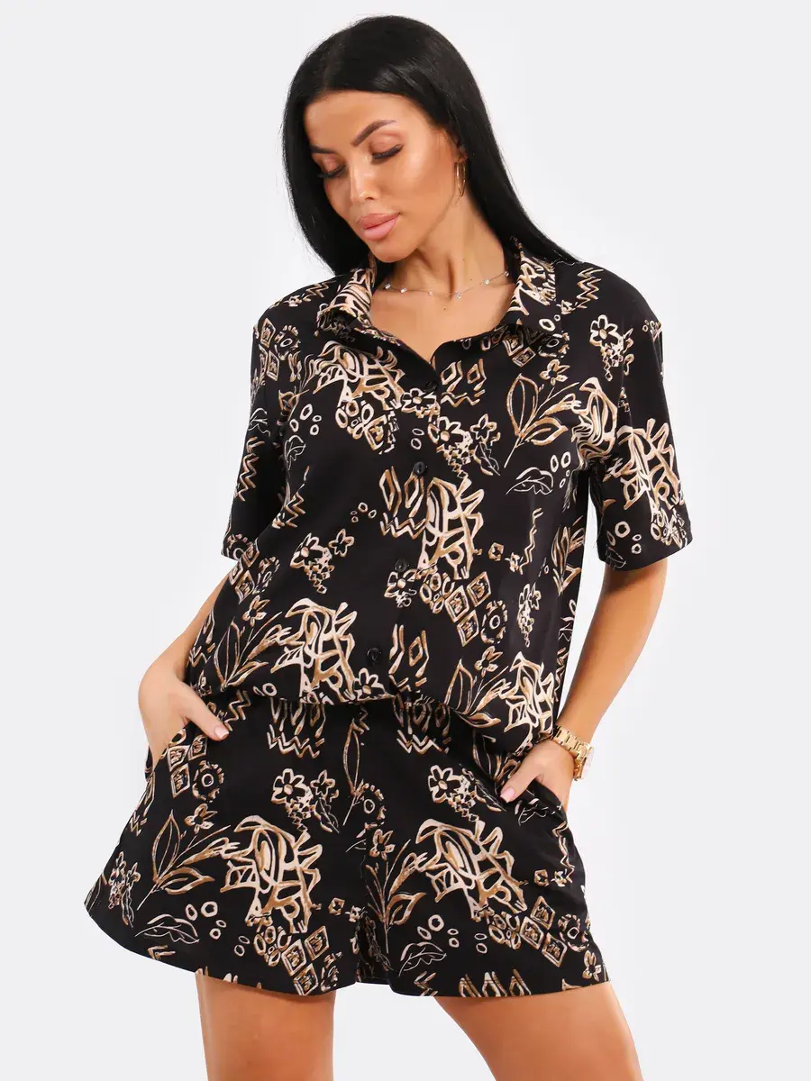 Костюм с шортами из Турецкого хлопка идеальный вариант для весеннего и летнего сезонов. Этот хлопковый комплект двойка из шорт и рубашки с коротким рукавом позволит создать повседневный или офисный образ. Он подходит для прогулок, встреч с друзьями, походов на пляж.
