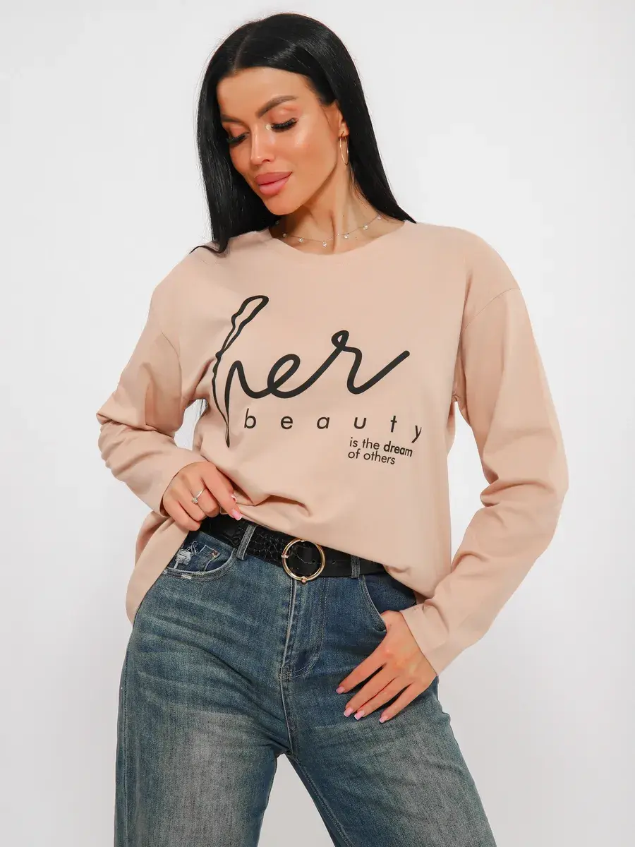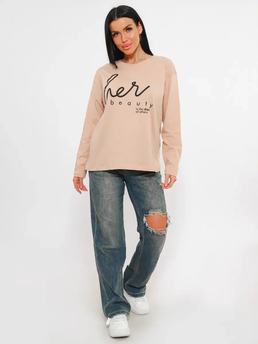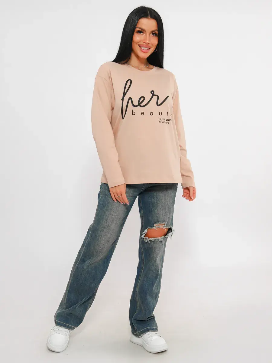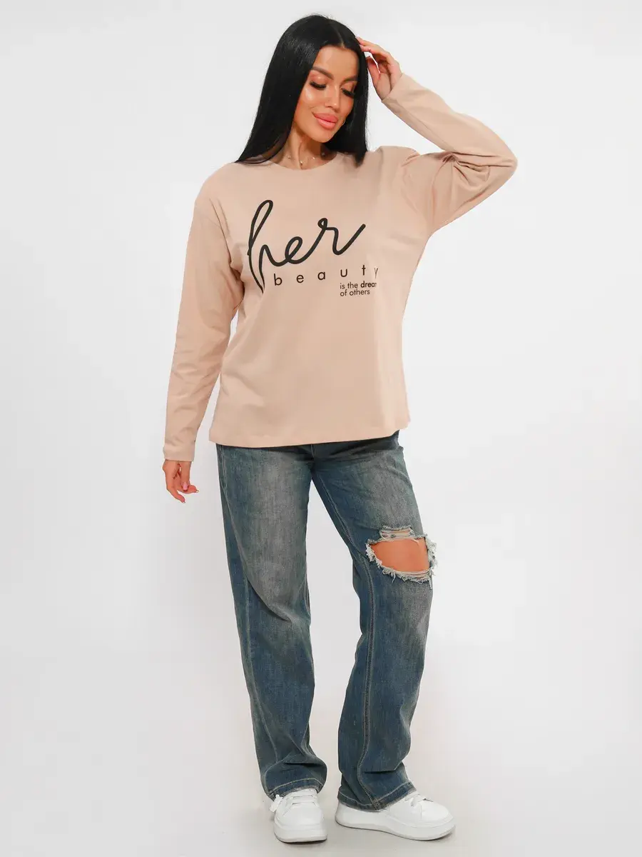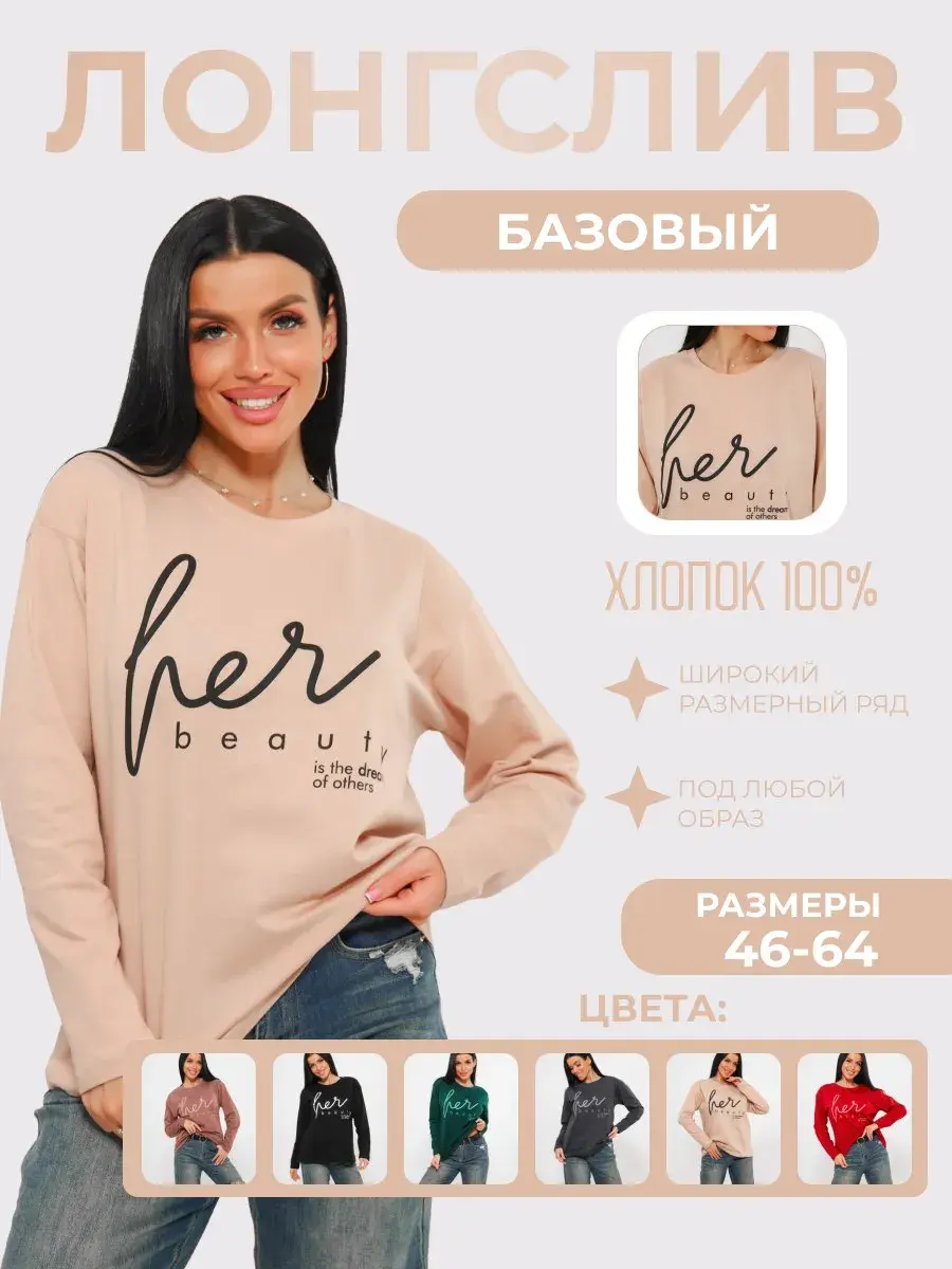 Идеальный женский лонгслив с принтом с длинным рукавом из мягкого хлопкового полотна приятного к телу. Лонгслив не просвечивает, красиво облегает силуэт. Понятная модель, которую легко сочетать с любыми вещами из гардероба - лонгслив с рукавами подойдет как к деловому стилю, так и расслабленному спортивному комплекту, впишется в образ или легко дополнит романтический лук. Наш лонгслив как футболка с длинным рукавом, является одной из самых популярных моделей одежды круглый год. Лонгслив длинный подойдет как для высоких, так и для невысоких девушек. Он станет вашим любимчиком при выборе образа на каждый день. Стирать с вещами похожего цвета и вынимать сразу после стирки. Гладить с изнаночной стороны. При выборе ориентируйтесь на российские размеры, но, если предпочитаете более свободный крой, закажите на размер больше или даже два.