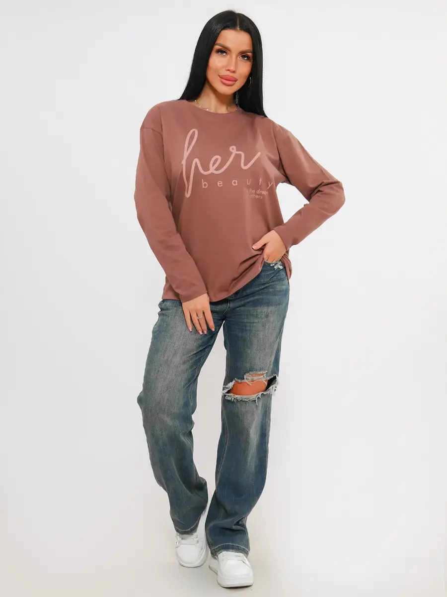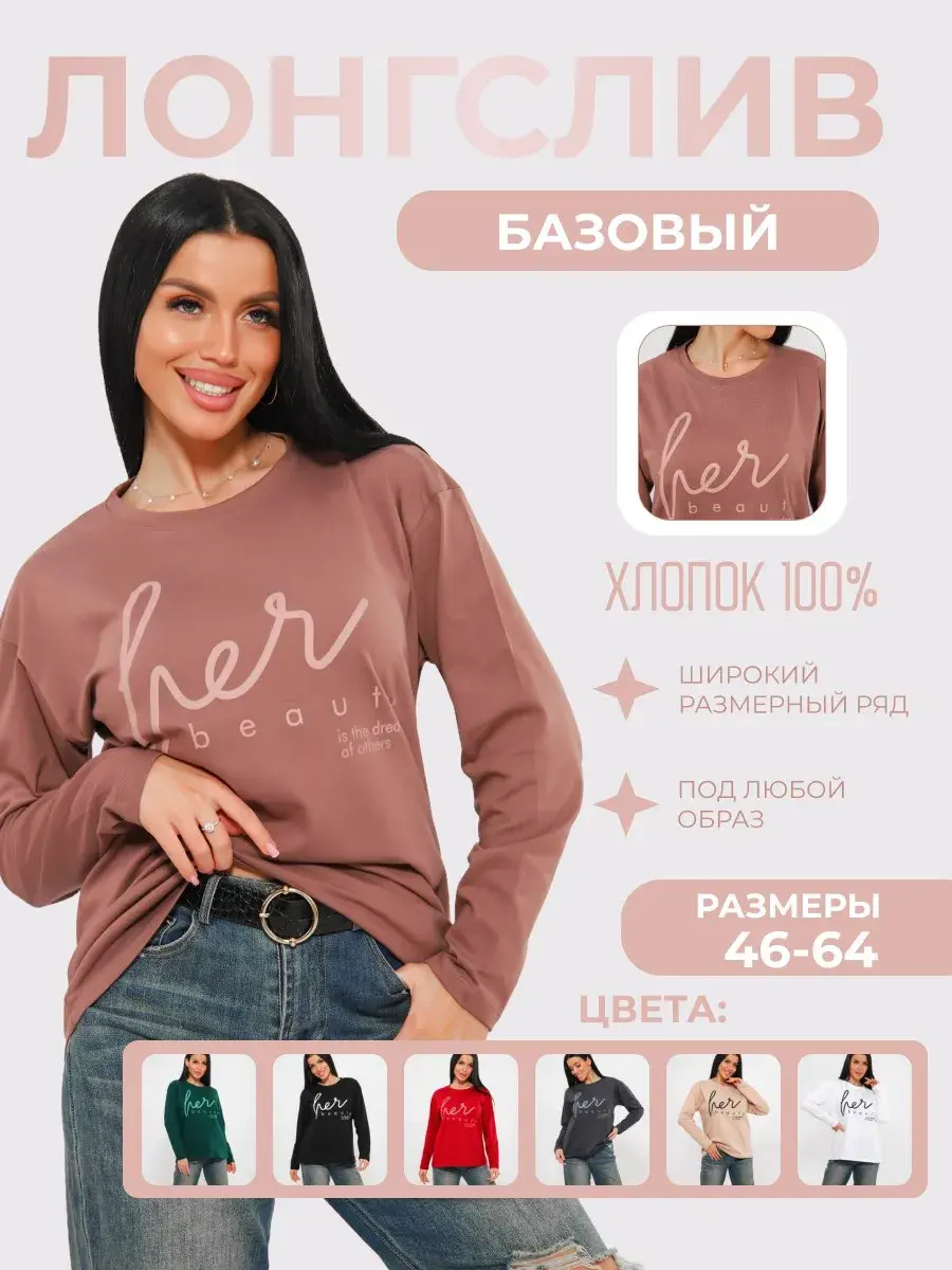 Идеальный женский лонгслив с принтом с длинным рукавом из мягкого хлопкового полотна приятного к телу. Лонгслив не просвечивает, красиво облегает силуэт. Понятная модель, которую легко сочетать с любыми вещами из гардероба - лонгслив с рукавами подойдет как к деловому стилю, так и расслабленному спортивному комплекту, впишется в образ или легко дополнит романтический лук. Наш лонгслив как футболка с длинным рукавом, является одной из самых популярных моделей одежды круглый год. Лонгслив длинный подойдет как для высоких, так и для невысоких девушек. Он станет вашим любимчиком при выборе образа на каждый день. Стирать с вещами похожего цвета и вынимать сразу после стирки. Гладить с изнаночной стороны. При выборе ориентируйтесь на российские размеры, но, если предпочитаете более свободный крой, закажите на размер больше или даже два.