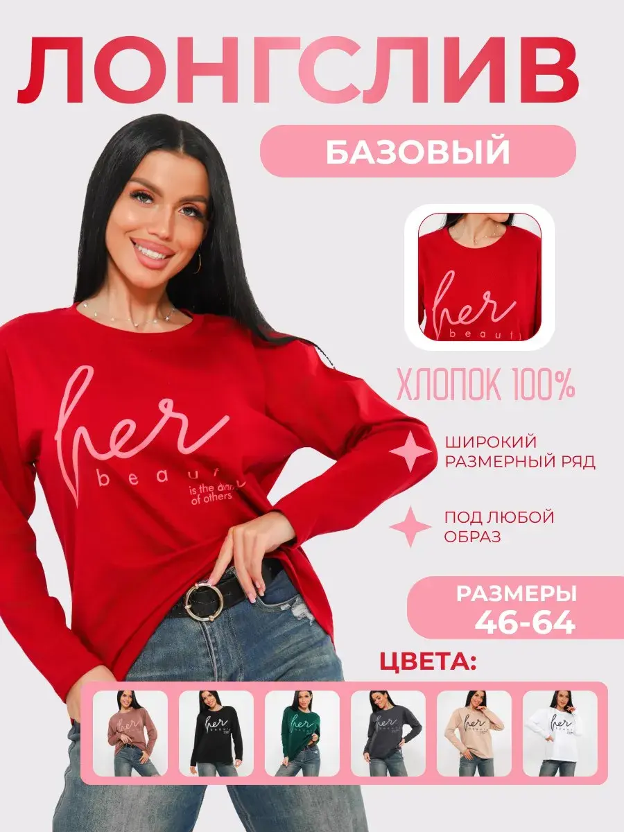 Идеальный женский лонгслив с принтом с длинным рукавом из мягкого хлопкового полотна приятного к телу. Лонгслив не просвечивает, красиво облегает силуэт. Понятная модель, которую легко сочетать с любыми вещами из гардероба - лонгслив с рукавами подойдет как к деловому стилю, так и расслабленному спортивному комплекту, впишется в образ или легко дополнит романтический лук. Наш лонгслив как футболка с длинным рукавом, является одной из самых популярных моделей одежды круглый год. Лонгслив длинный подойдет как для высоких, так и для невысоких девушек. Он станет вашим любимчиком при выборе образа на каждый день. Стирать с вещами похожего цвета и вынимать сразу после стирки. Гладить с изнаночной стороны. При выборе ориентируйтесь на российские размеры, но, если предпочитаете более свободный крой, закажите на размер больше или даже два.