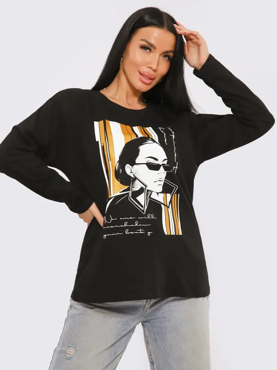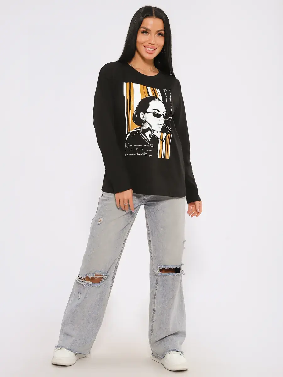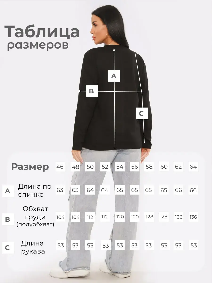 Идеальный женский лонгслив с принтом с длинным рукавом из мягкого хлопкового полотна приятного к телу. Лонгслив не просвечивает, красиво облегает силуэт. Понятная модель, которую легко сочетать с любыми вещами из гардероба - лонгслив с рукавами подойдет как к деловому стилю, так и расслабленному спортивному комплекту, впишется в образ или легко дополнит романтический лук. Наш лонгслив как футболка с длинным рукавом, является одной из самых популярных моделей одежды круглый год. Лонгслив длинный подойдет как для высоких, так и для невысоких девушек. Он станет вашим любимчиком при выборе образа на каждый день. Лонгслив украшен принтом из стойких красок с легким шиммером. Лонгслив имеет широкий размерный ряд, Вы сможете подобрать подходящий размер. При выборе ориентируйтесь на российские размеры, но, если предпочитаете более свободный крой, закажите на размер больше или даже два. Желаем Вам удачных покупок!