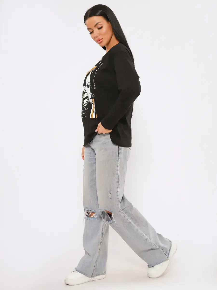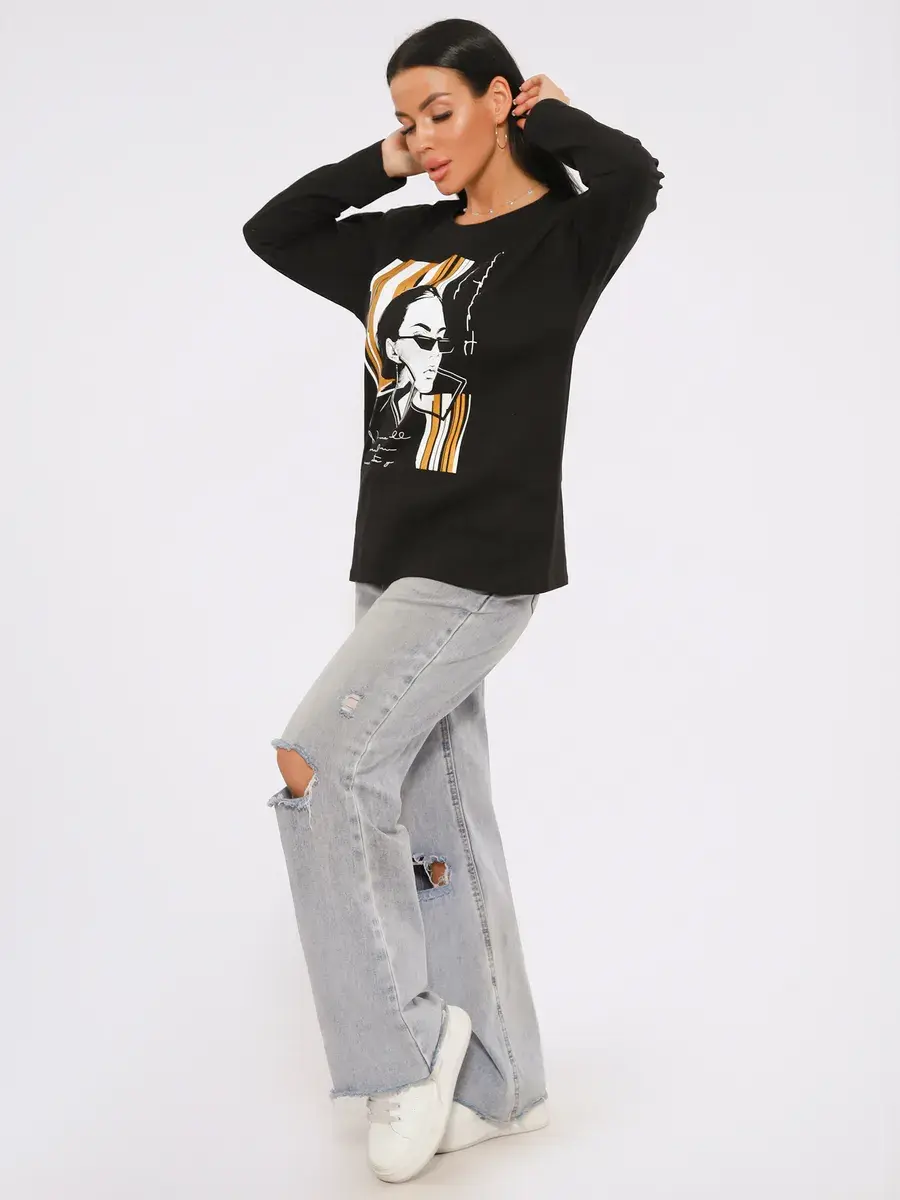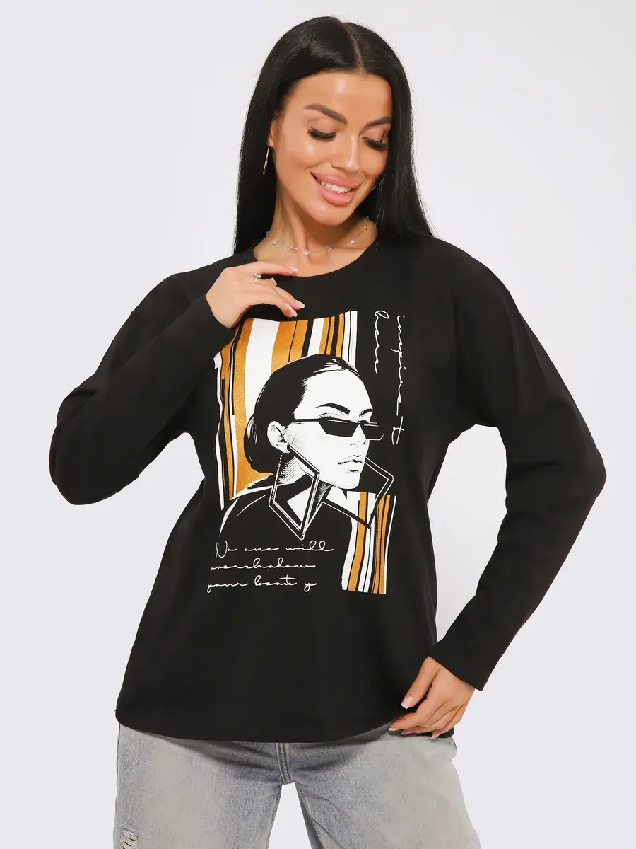 Идеальный женский лонгслив с принтом с длинным рукавом из мягкого хлопкового полотна приятного к телу. Лонгслив не просвечивает, красиво облегает силуэт. Понятная модель, которую легко сочетать с любыми вещами из гардероба - лонгслив с рукавами подойдет как к деловому стилю, так и расслабленному спортивному комплекту, впишется в образ или легко дополнит романтический лук. Наш лонгслив как футболка с длинным рукавом, является одной из самых популярных моделей одежды круглый год. Лонгслив длинный подойдет как для высоких, так и для невысоких девушек. Он станет вашим любимчиком при выборе образа на каждый день. Лонгслив украшен принтом из стойких красок с легким шиммером. Лонгслив имеет широкий размерный ряд, Вы сможете подобрать подходящий размер. При выборе ориентируйтесь на российские размеры, но, если предпочитаете более свободный крой, закажите на размер больше или даже два. Желаем Вам удачных покупок!