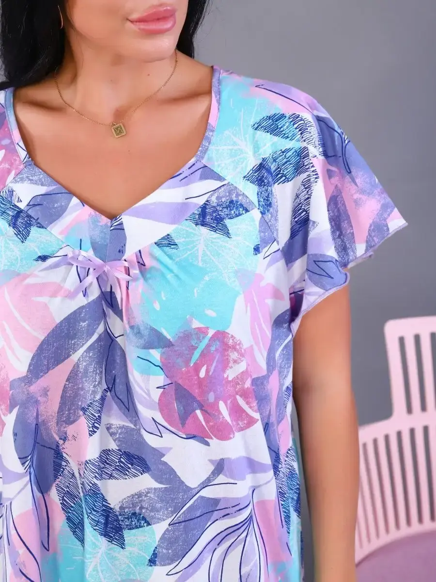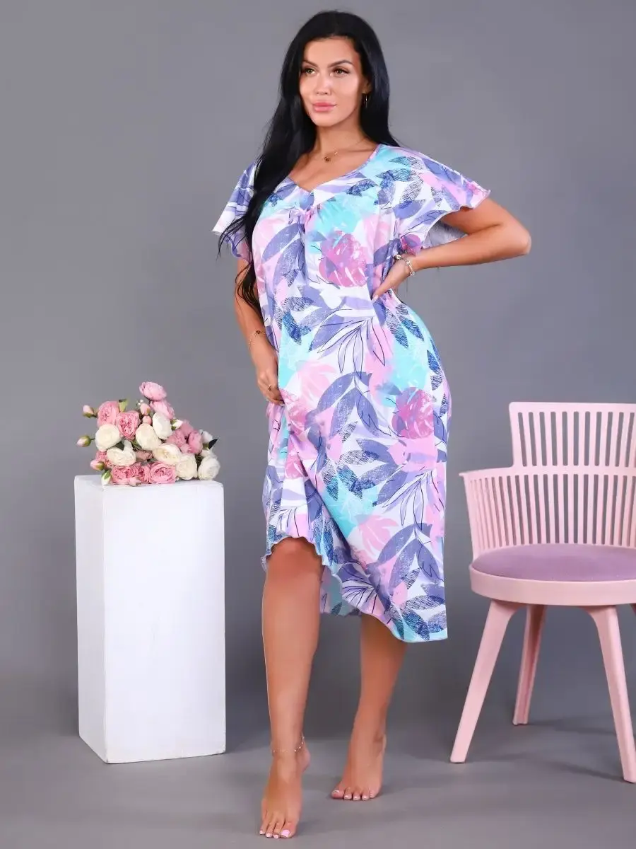 Предлагаем Вашему вниманию ночную сорочку удлиненную. Сорочка с цветами нежных оттенков. Удобная одежда для сна. Качественная сорочка больших размеров.