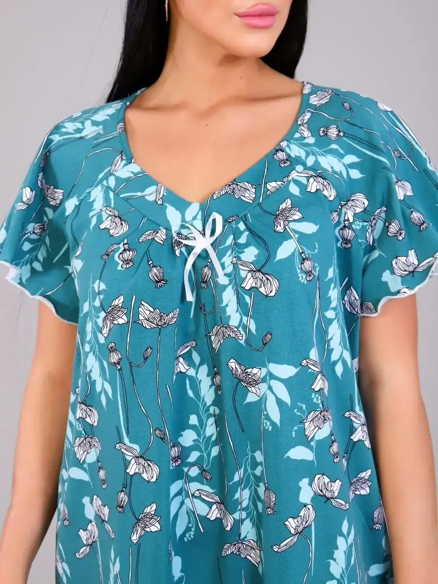 Предлагаем Вашему вниманию ночную сорочку удлиненную. Сорочка с цветами нежных оттенков. Удобная одежда для сна. Качественная сорочка больших размеров.