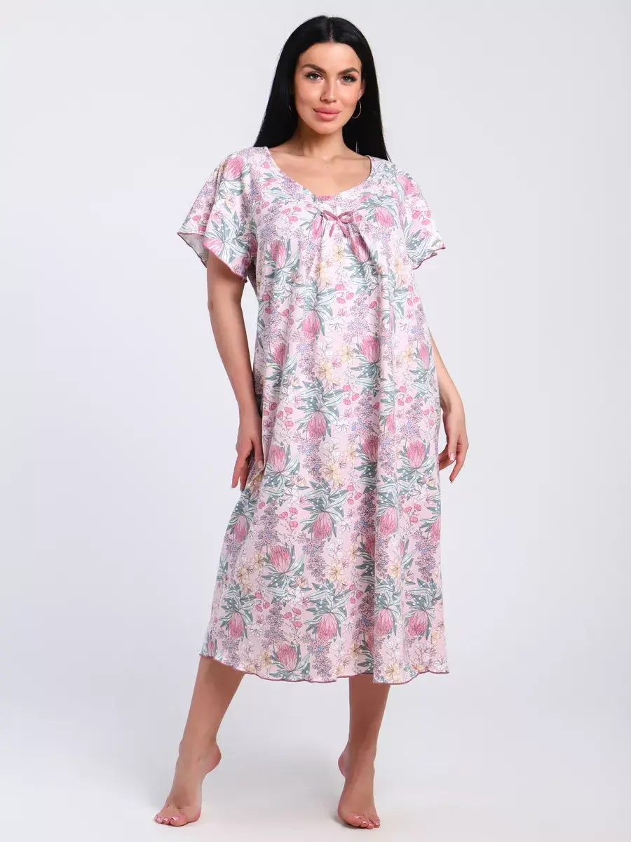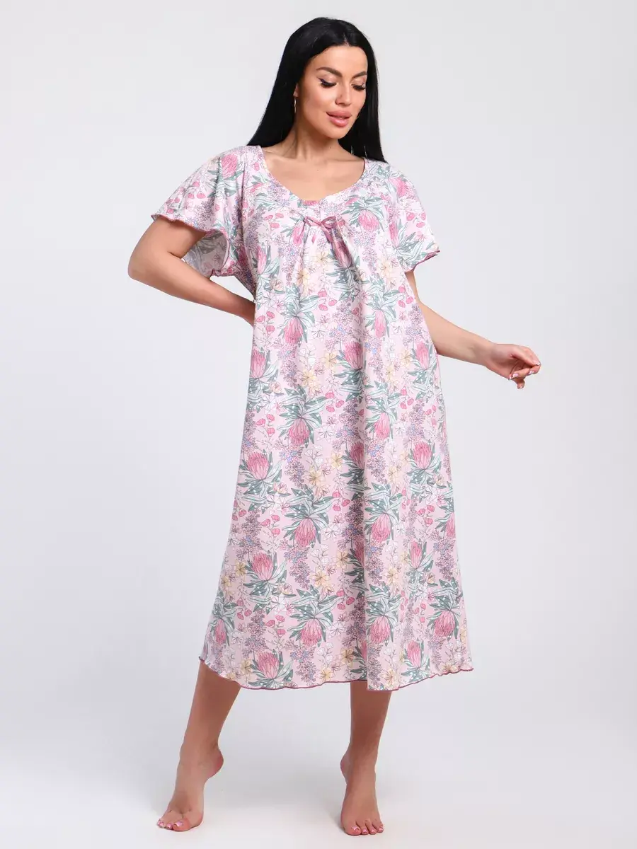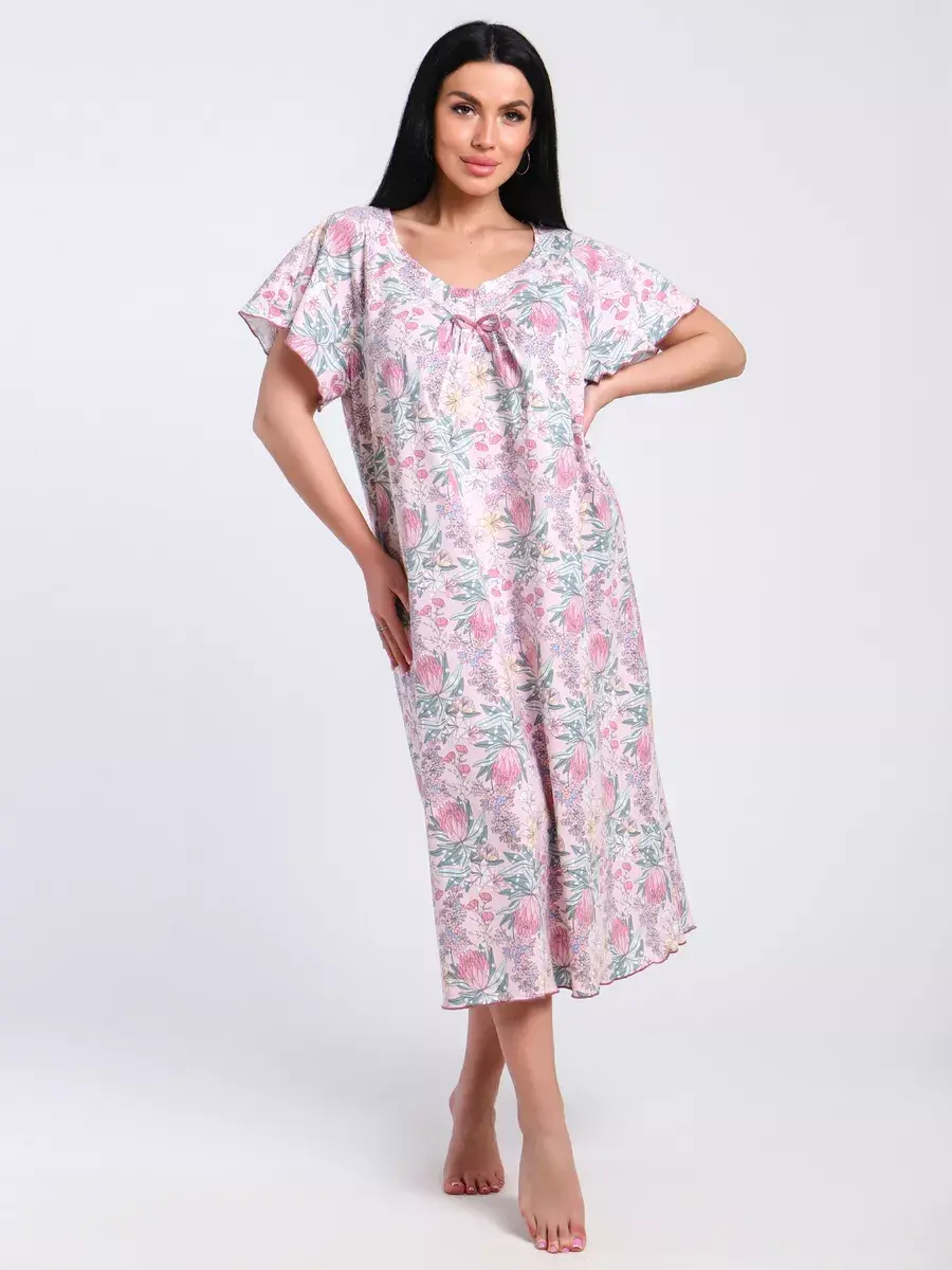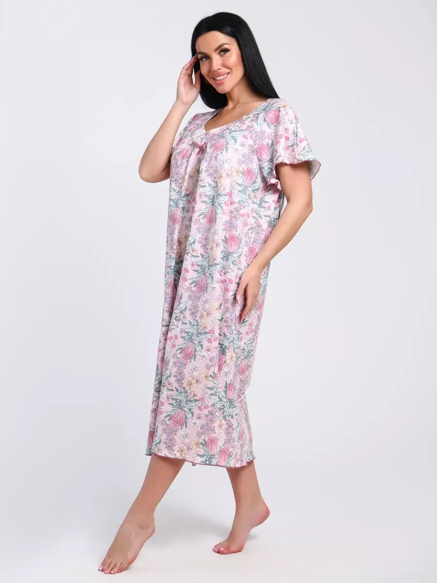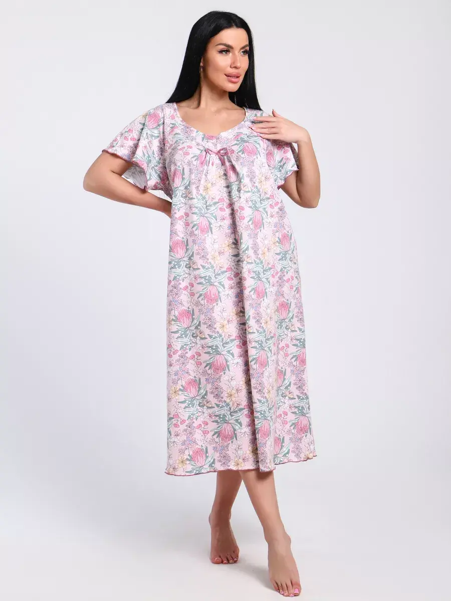 Предлагаем Вашему вниманию ночную сорочку удлиненную. Сорочка с цветами нежных оттенков. Удобная одежда для сна. Качественная сорочка больших размеров.