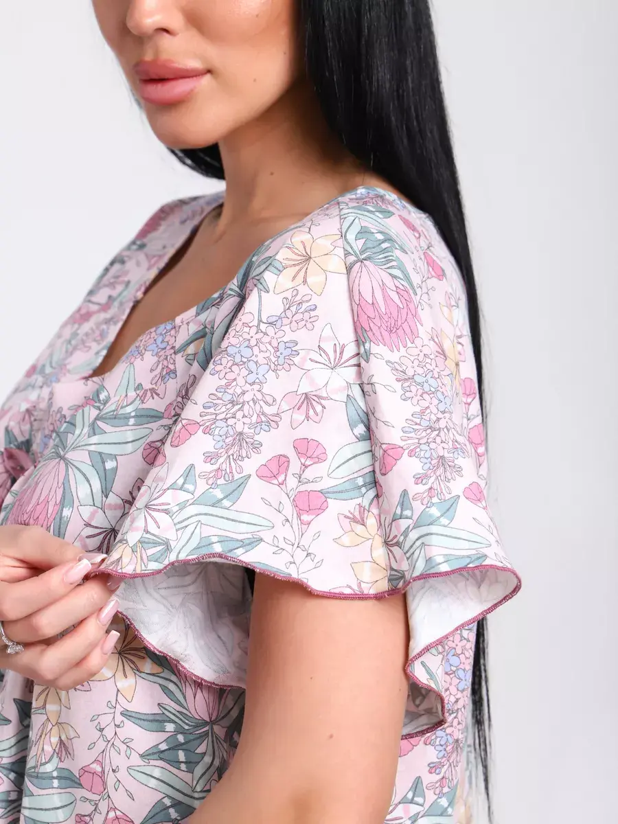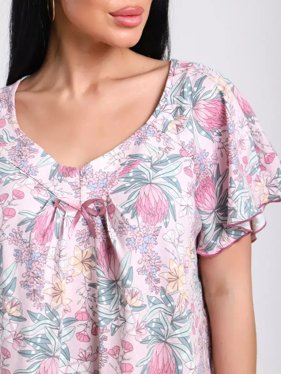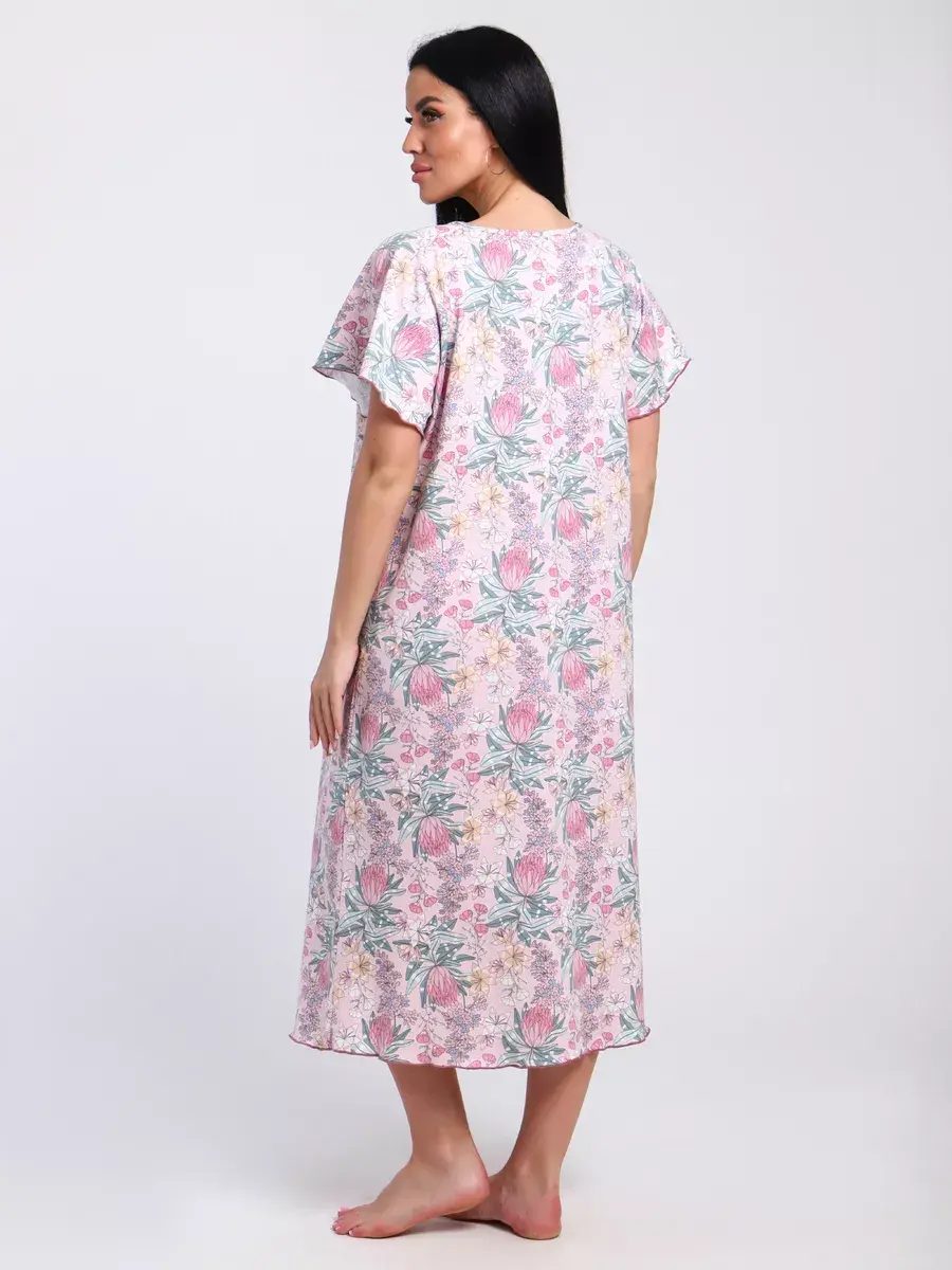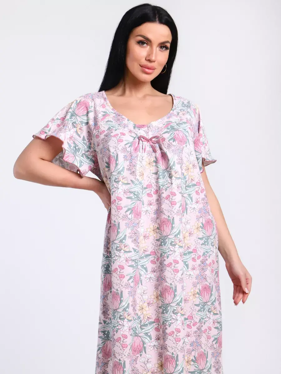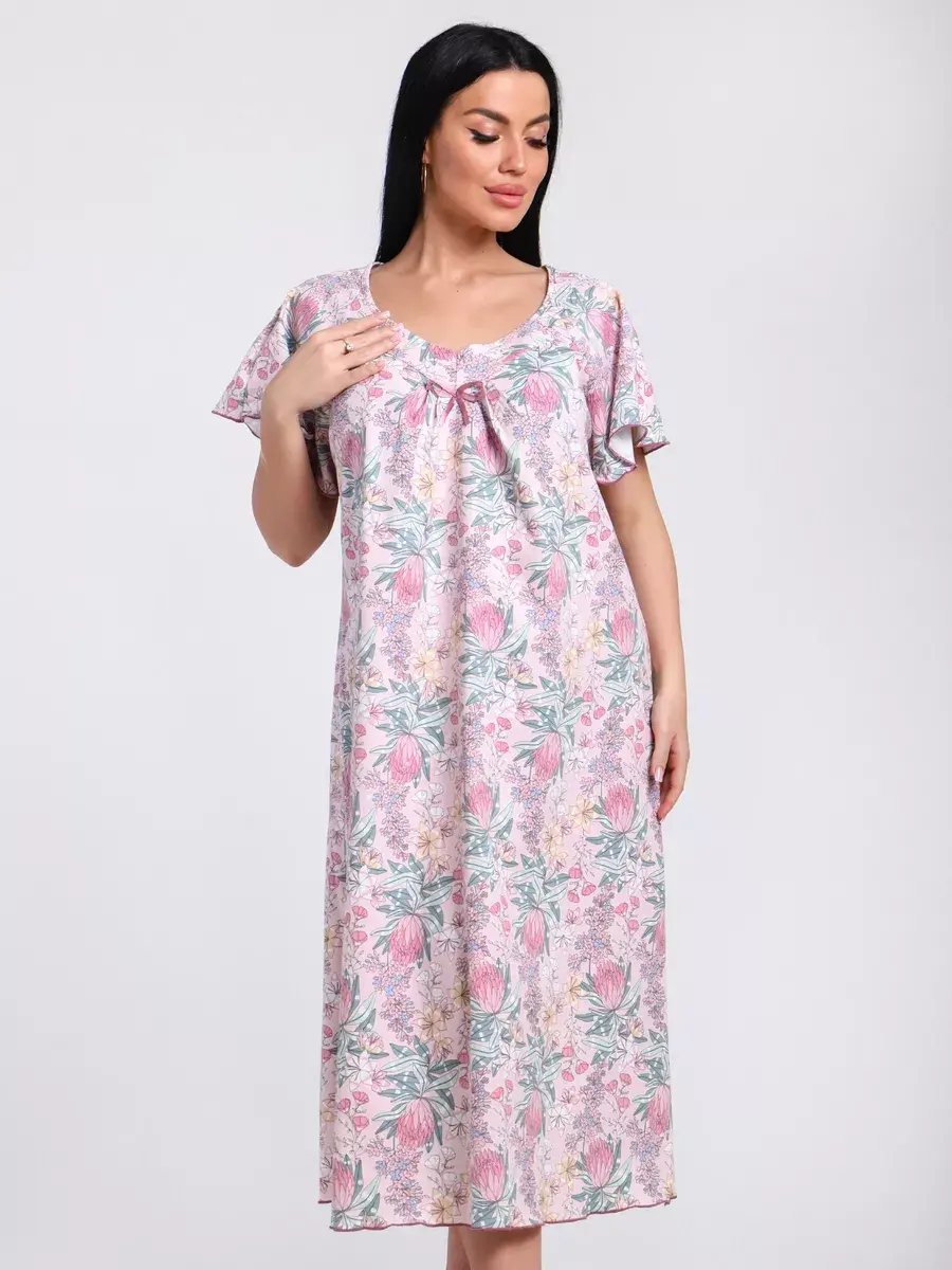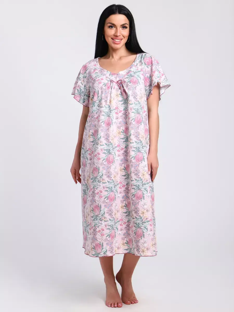 Предлагаем Вашему вниманию ночную сорочку удлиненную. Сорочка с цветами нежных оттенков. Удобная одежда для сна. Качественная сорочка больших размеров.