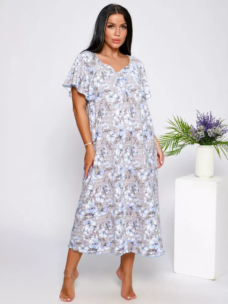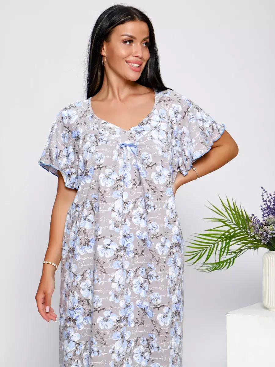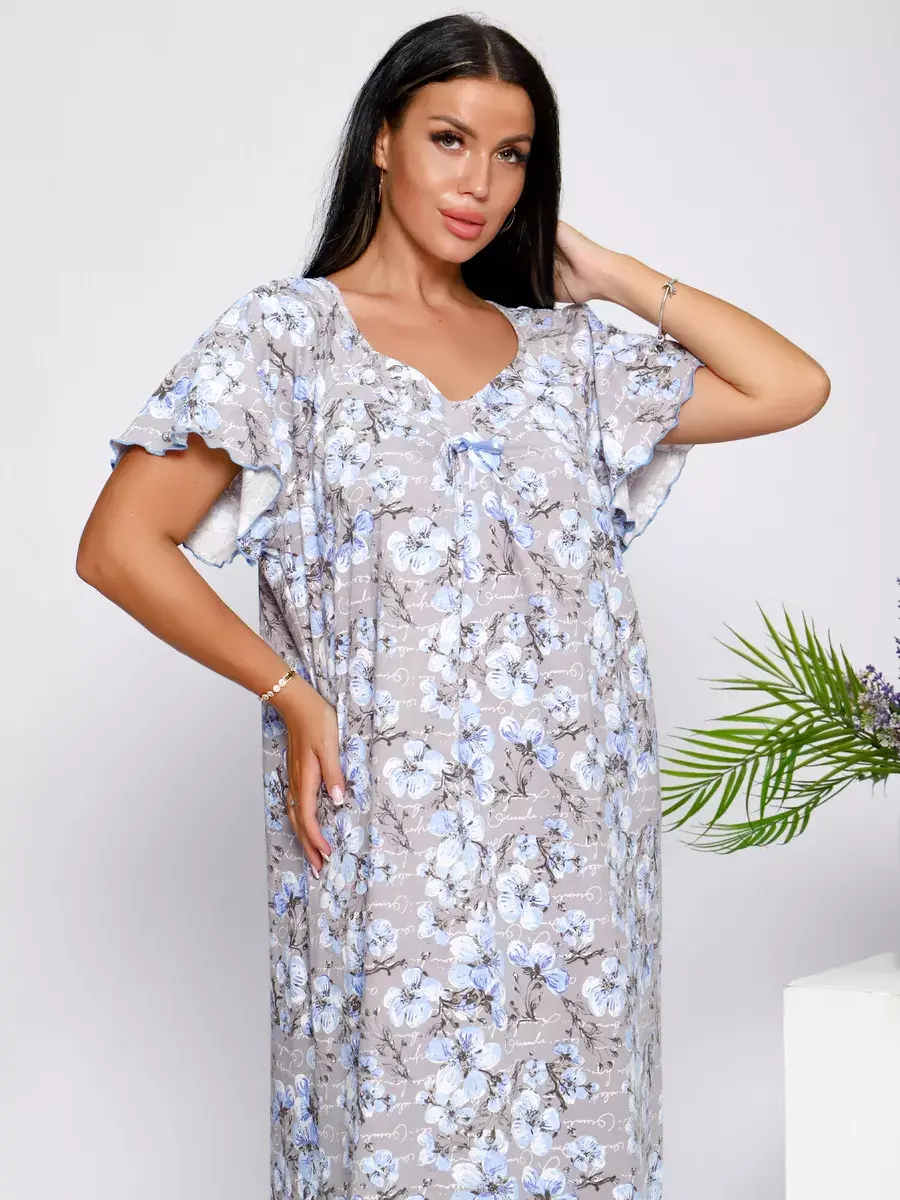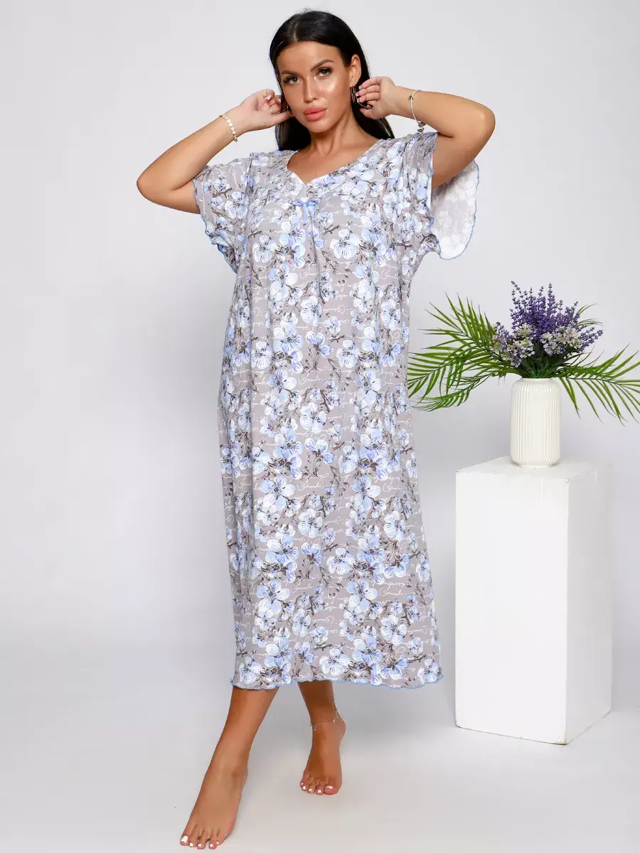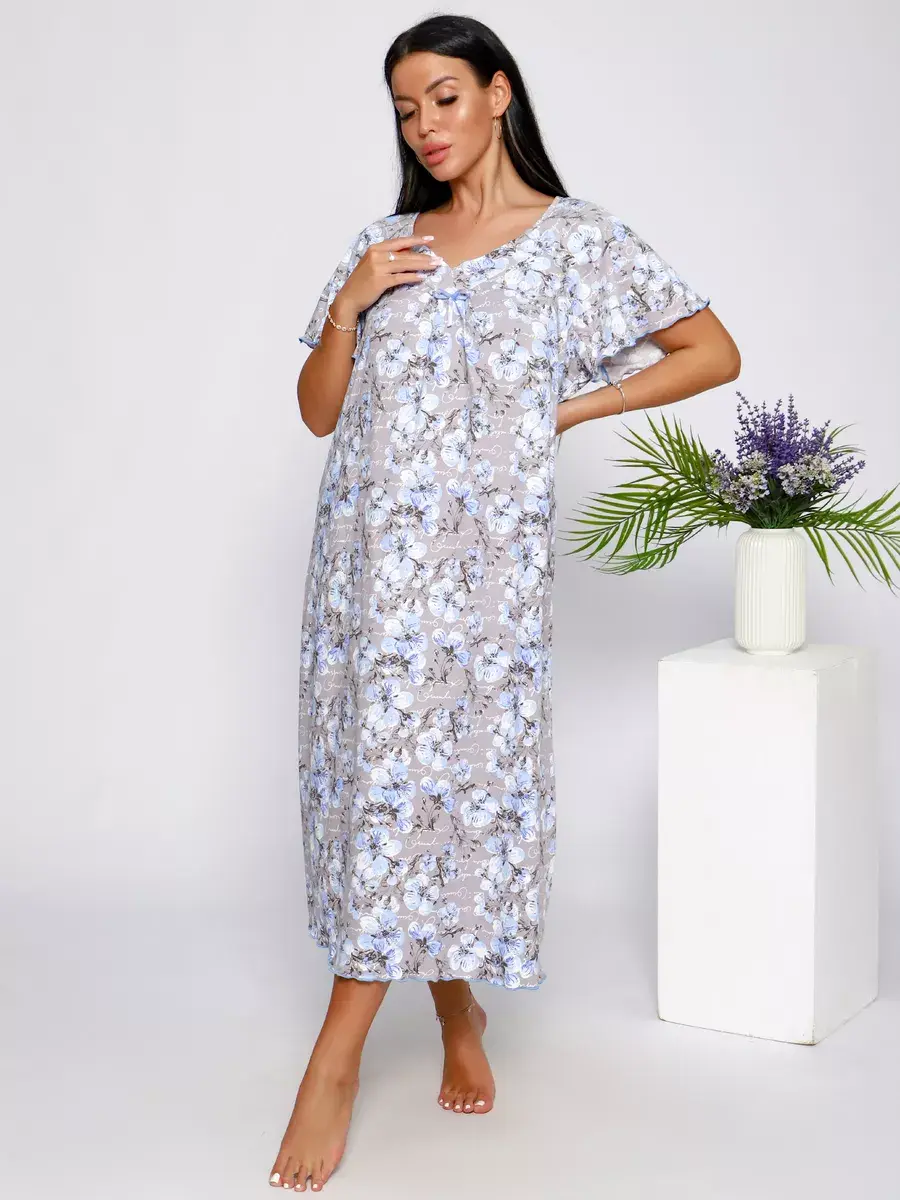 Предлагаем Вашему вниманию ночную сорочку удлиненную. Сорочка с цветами нежных оттенков. Удобная одежда для сна. Качественная сорочка больших размеров.