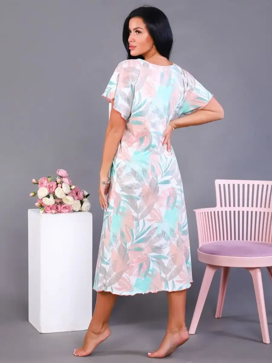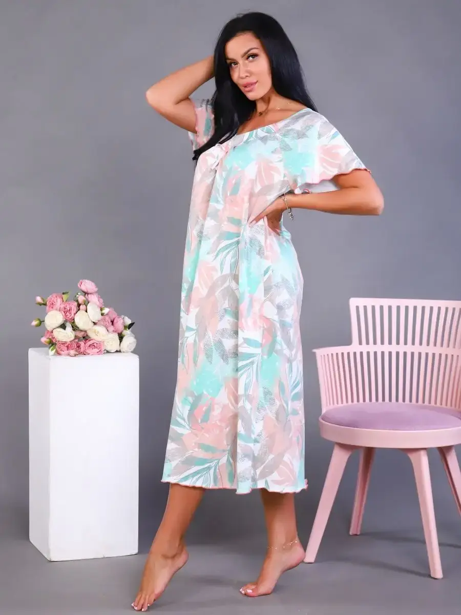 Предлагаем Вашему вниманию ночную сорочку удлиненную. Сорочка с цветами нежных оттенков. Удобная одежда для сна. Качественная сорочка больших размеров.