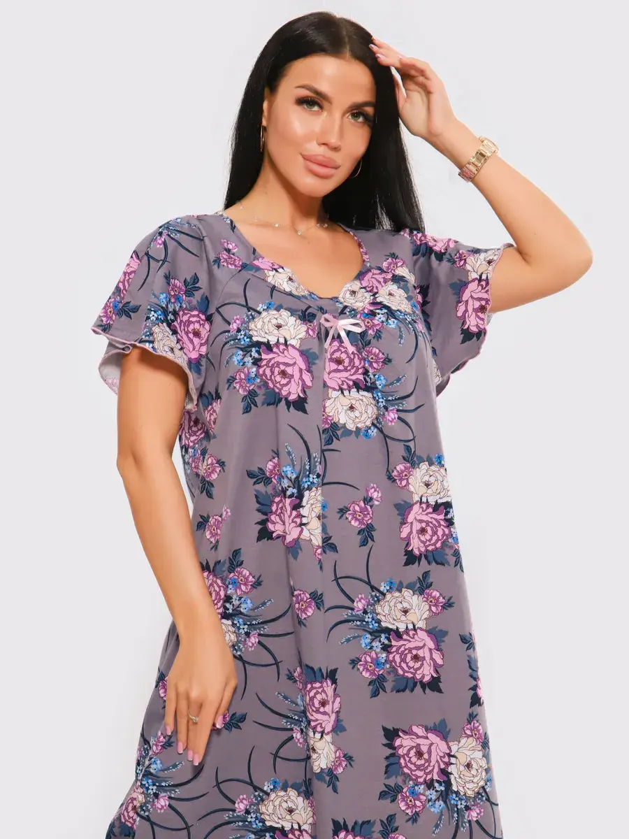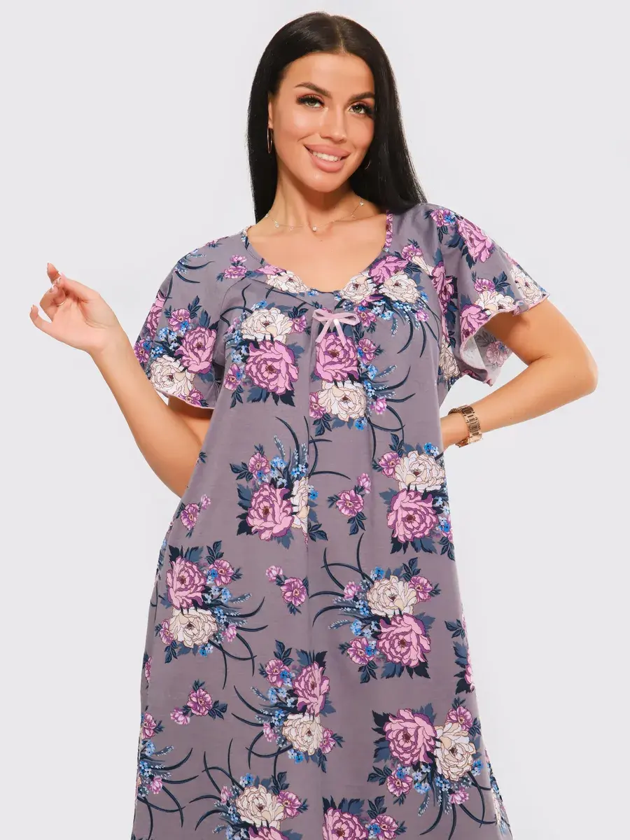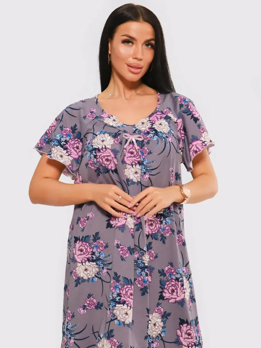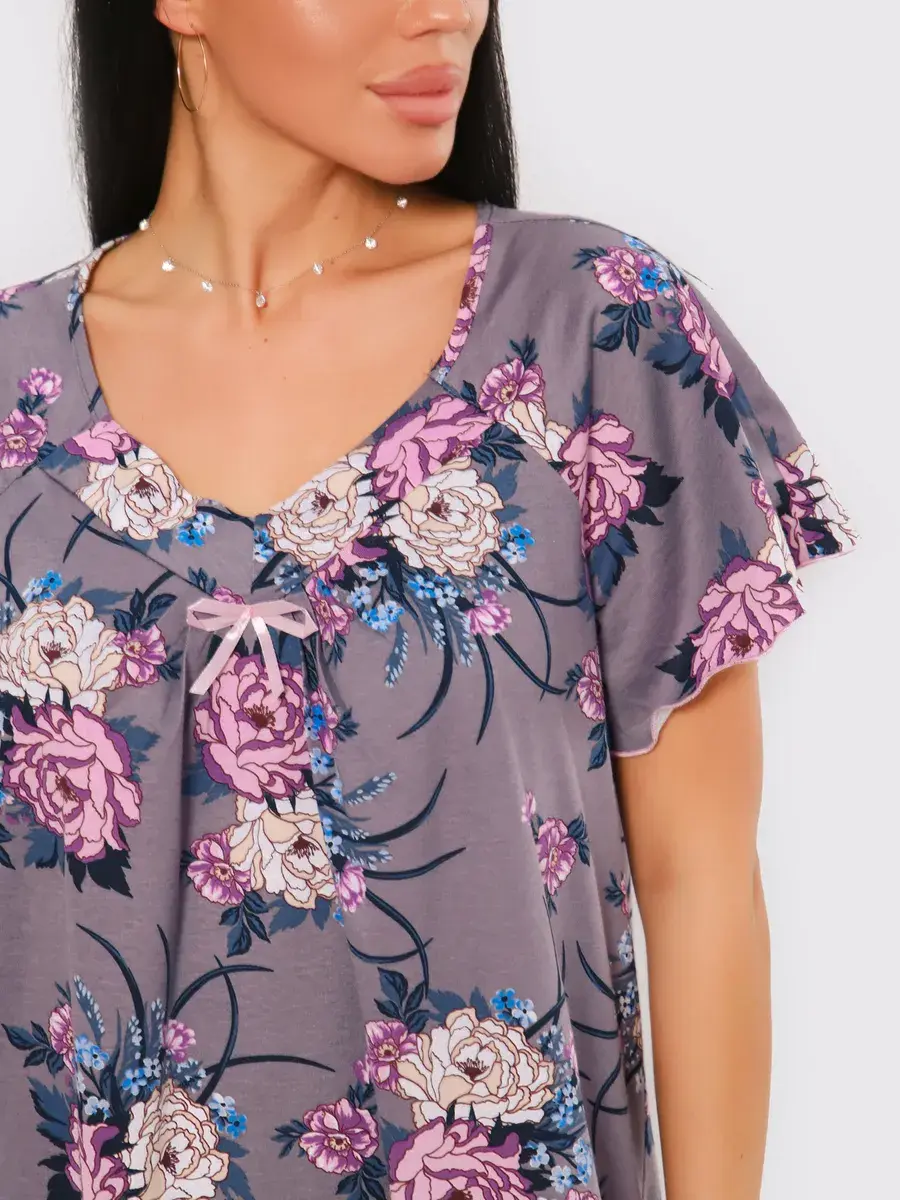 Предлагаем Вашему вниманию ночную сорочку удлиненную. Сорочка с цветами нежных оттенков. Удобная одежда для сна. Качественная сорочка больших размеров.
