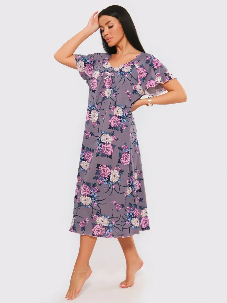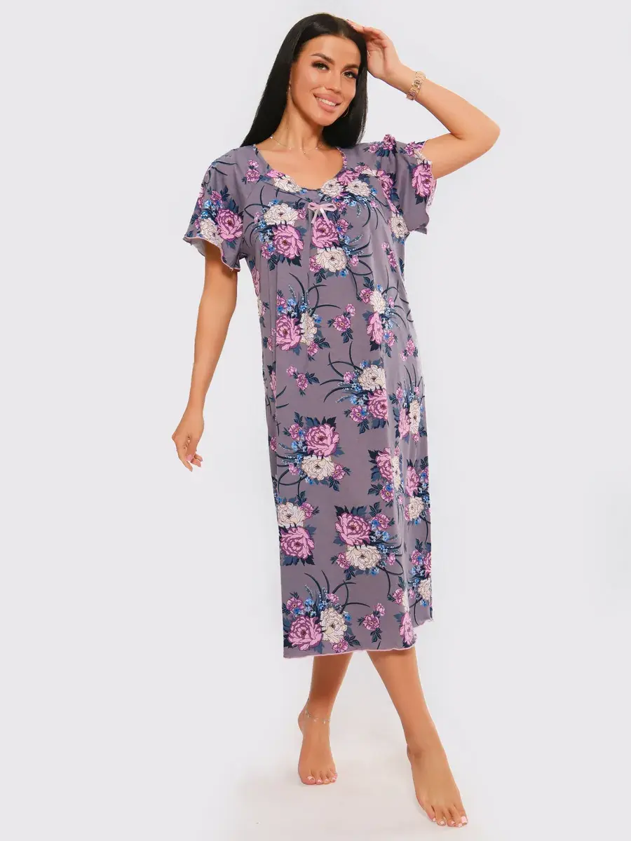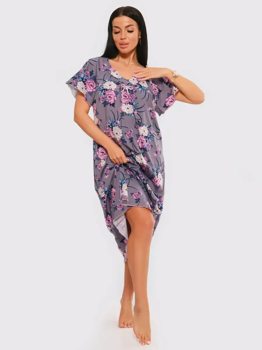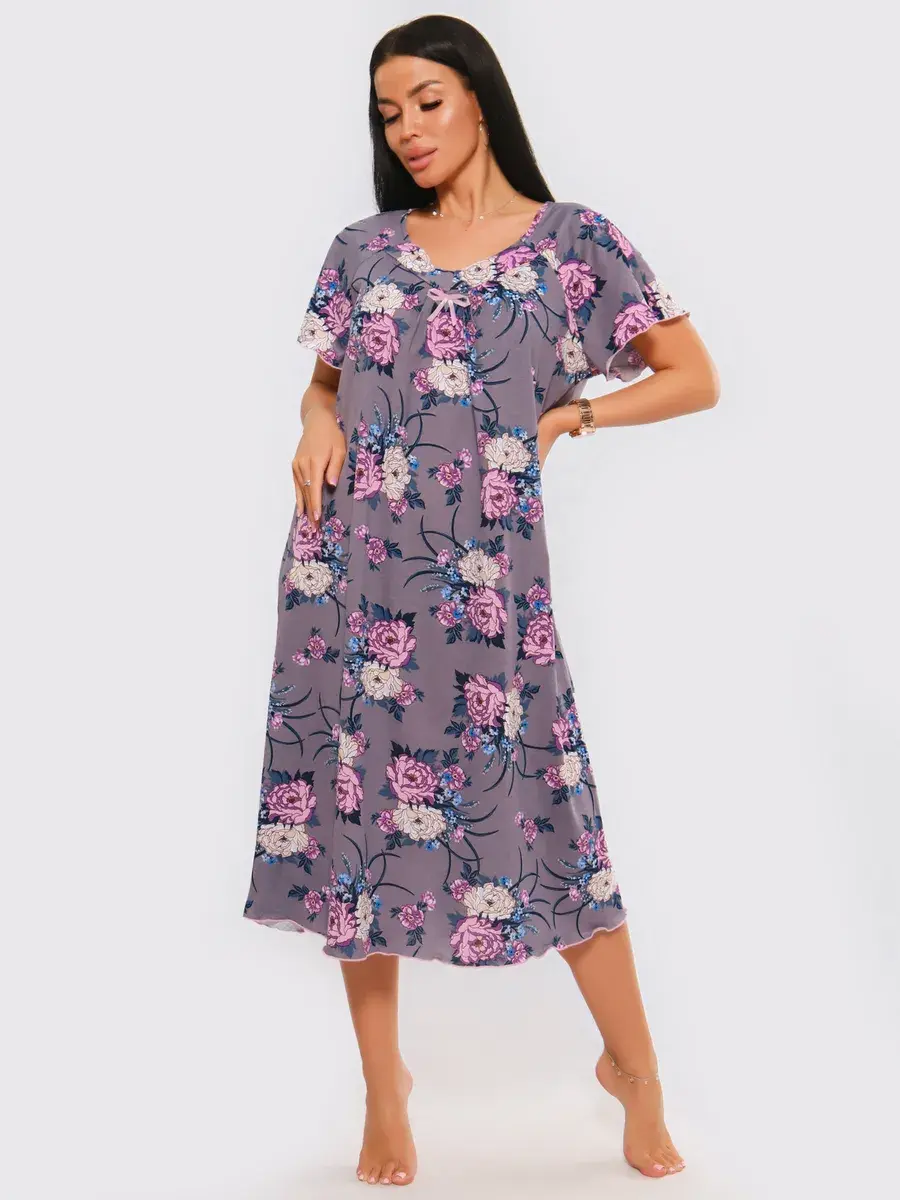 Предлагаем Вашему вниманию ночную сорочку удлиненную. Сорочка с цветами нежных оттенков. Удобная одежда для сна. Качественная сорочка больших размеров.