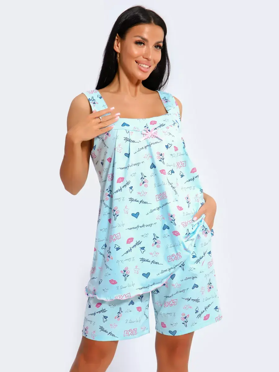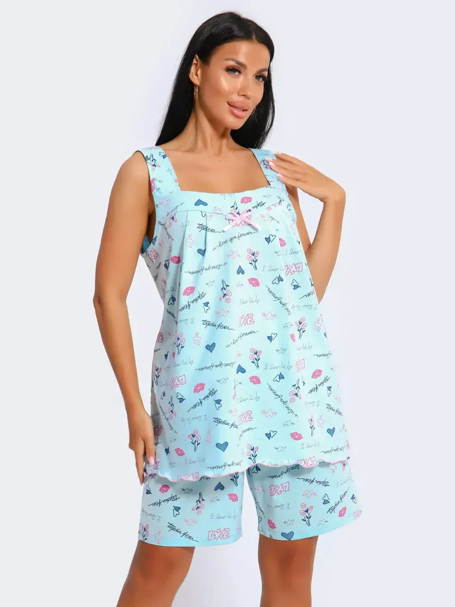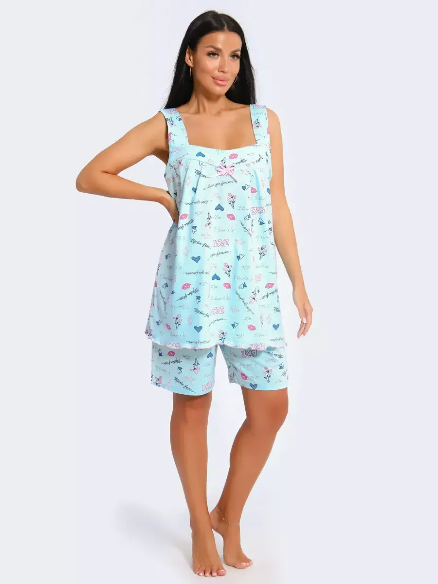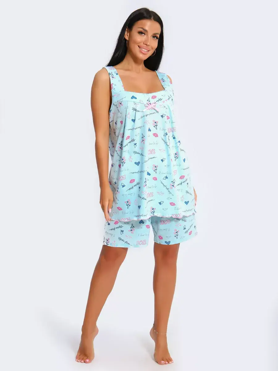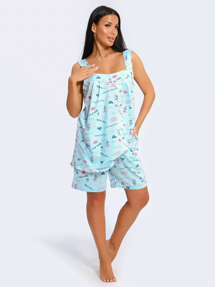 Женская пижама из хлопка - Ваш правильный выбор в поисках идеальной одежды для дома! Такая пижама подарит чувство уюта. Этот пижамный комплект невероятно легкий, невесомый. Ткань мягкая и приятная к телу, это дышащий материал. Пижама не сковывают движение. Шорты на талии оснащены мягкой резинкой, обеспечивают удобную посадку по фигуре.