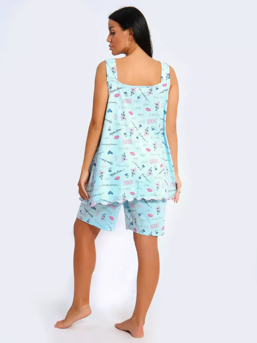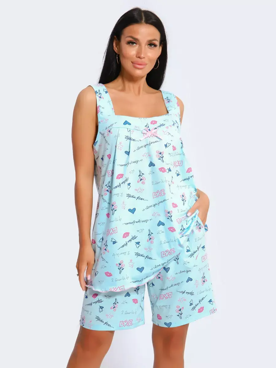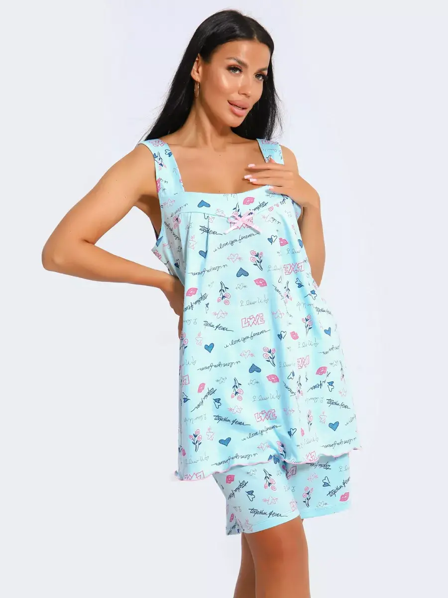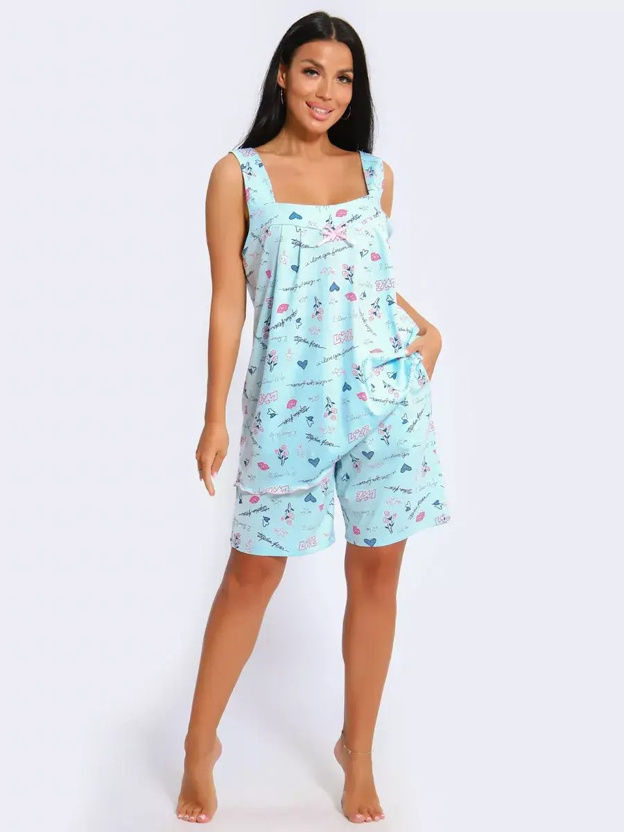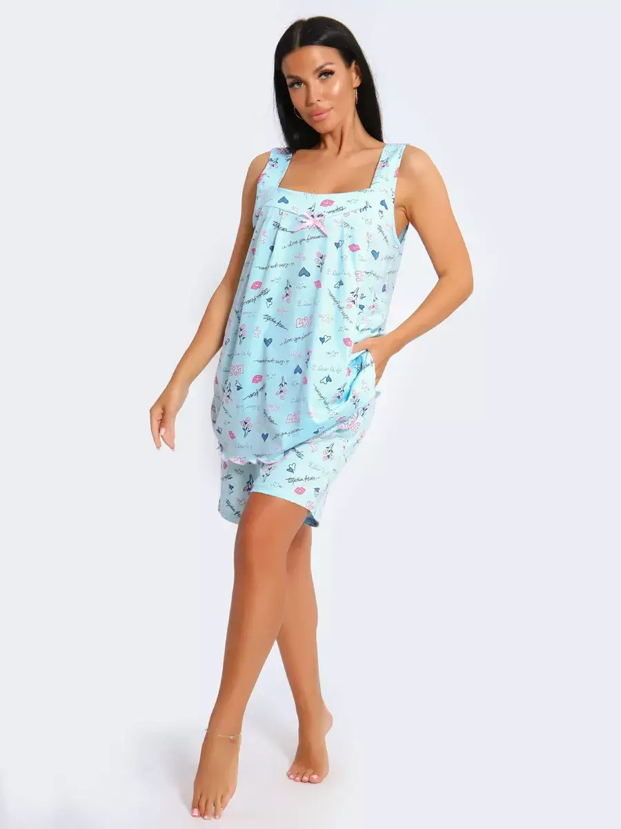Женская пижама из хлопка - Ваш правильный выбор в поисках идеальной одежды для дома! Такая пижама подарит чувство уюта. Этот пижамный комплект невероятно легкий, невесомый. Ткань мягкая и приятная к телу, это дышащий материал. Пижама не сковывают движение. Шорты на талии оснащены мягкой резинкой, обеспечивают удобную посадку по фигуре.