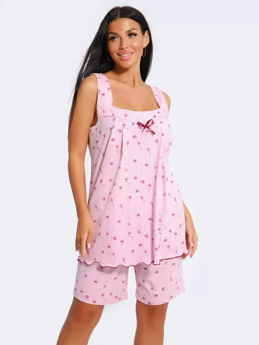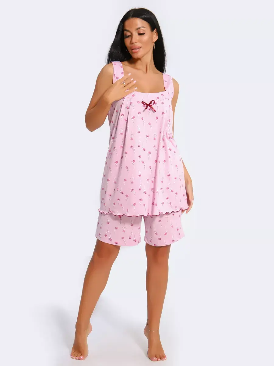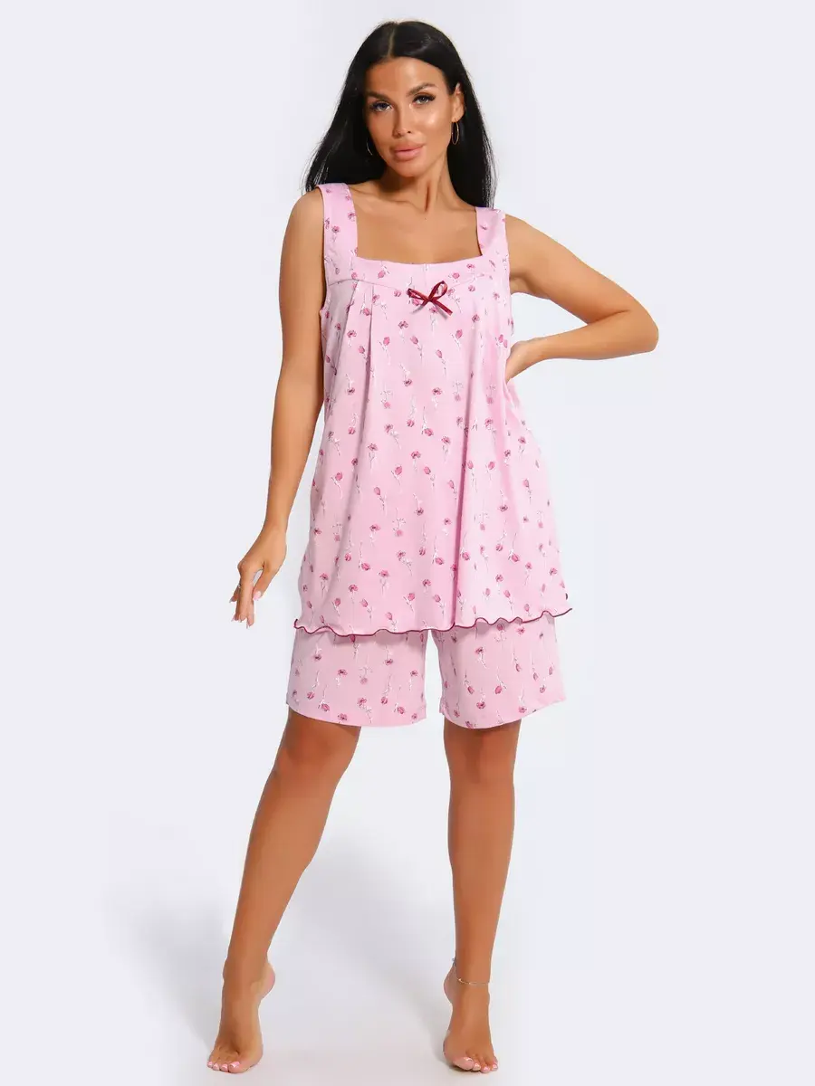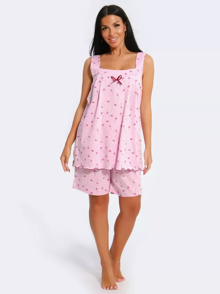 Женская пижама из хлопка - Ваш правильный выбор в поисках идеальной одежды для дома! Такая пижама подарит чувство уюта. Этот пижамный комплект невероятно легкий, невесомый. Ткань мягкая и приятная к телу, это дышащий материал. Пижама не сковывают движение. Шорты на талии оснащены мягкой резинкой, обеспечивают удобную посадку по фигуре.