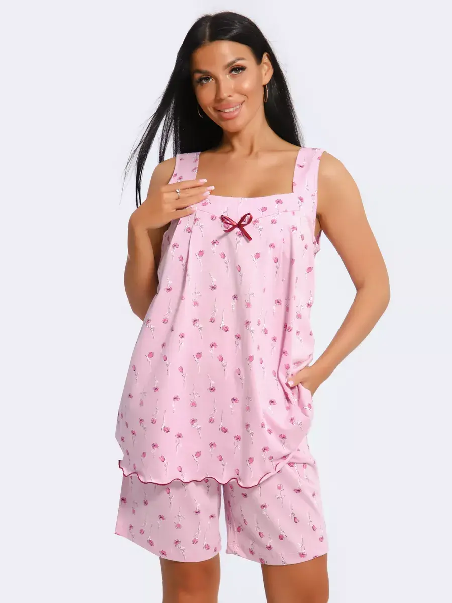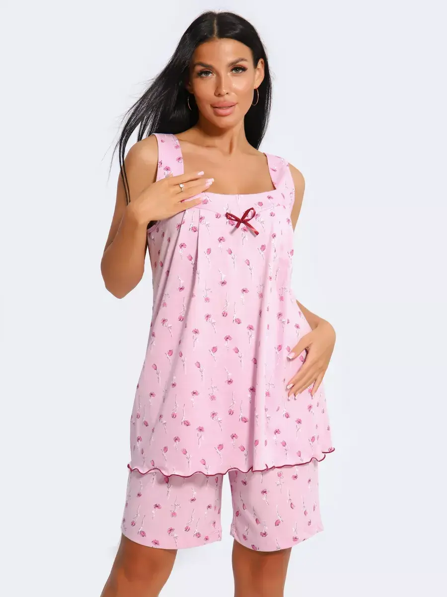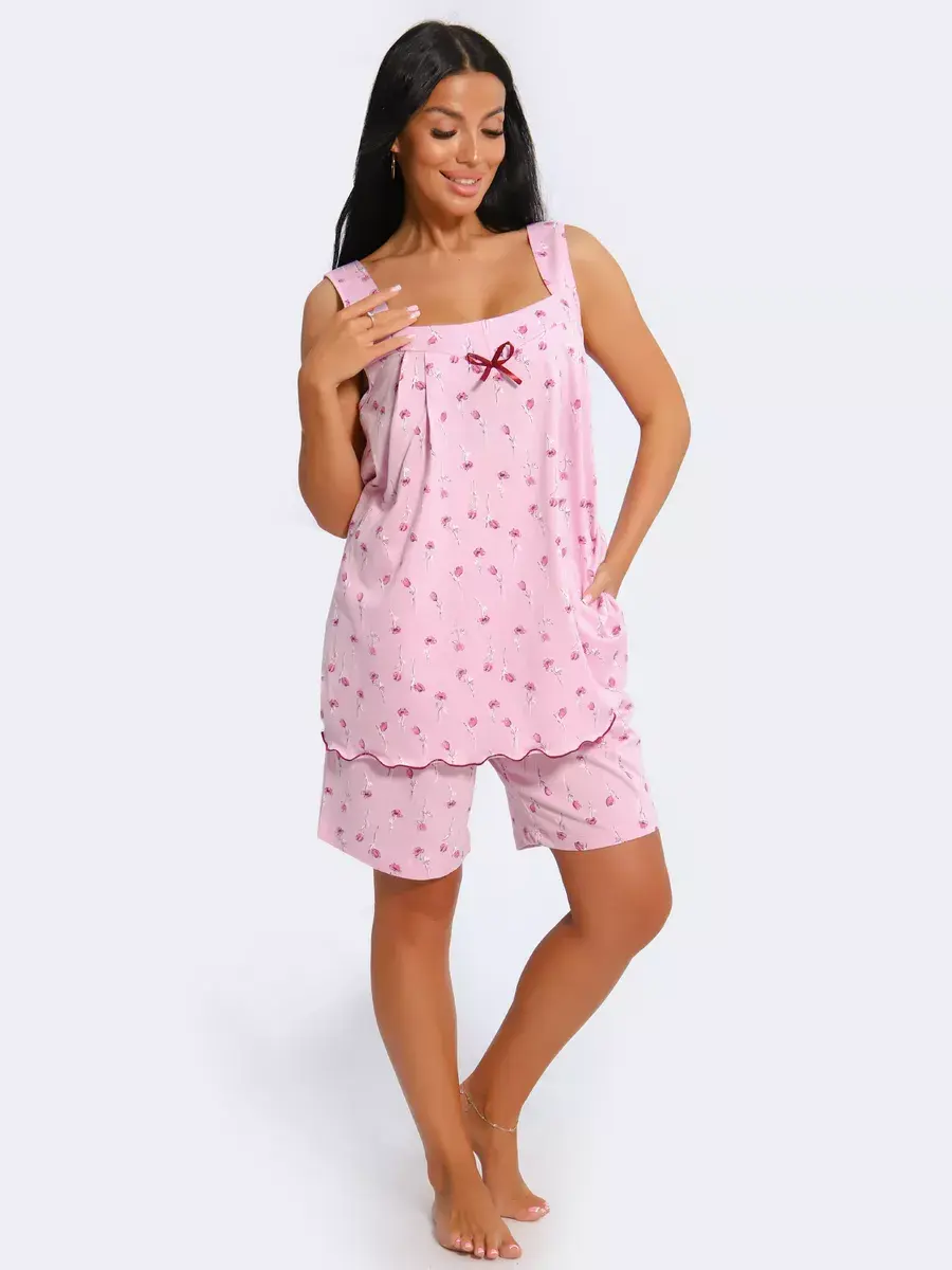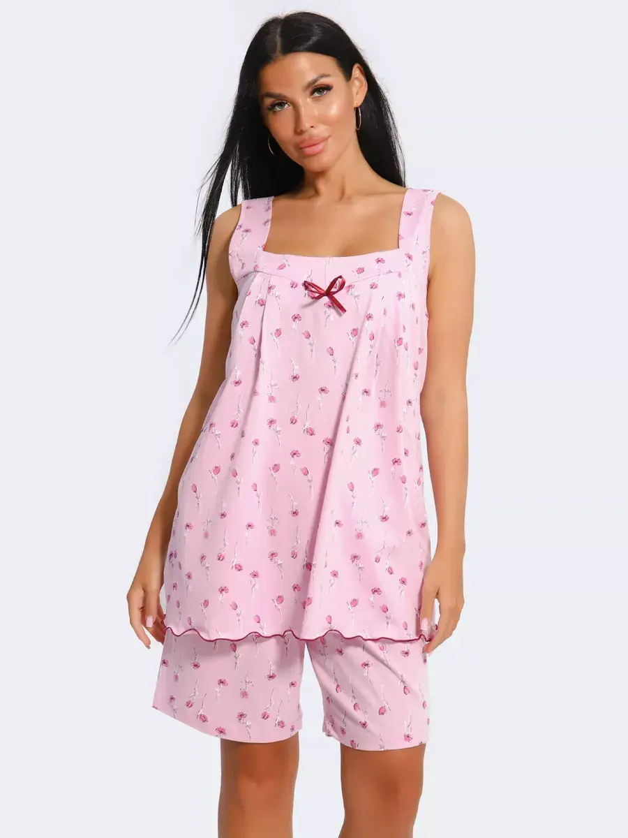 Женская пижама из хлопка - Ваш правильный выбор в поисках идеальной одежды для дома! Такая пижама подарит чувство уюта. Этот пижамный комплект невероятно легкий, невесомый. Ткань мягкая и приятная к телу, это дышащий материал. Пижама не сковывают движение. Шорты на талии оснащены мягкой резинкой, обеспечивают удобную посадку по фигуре.