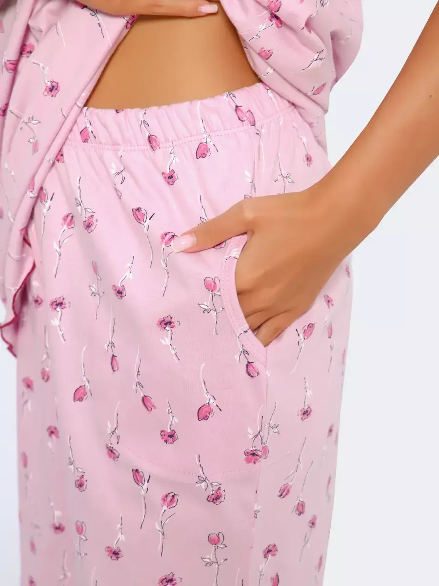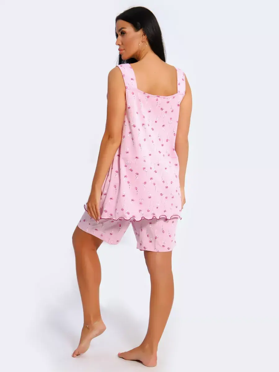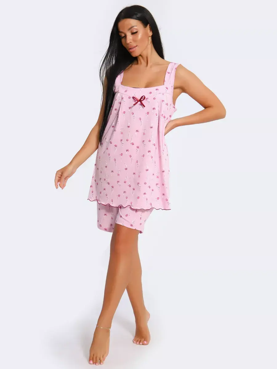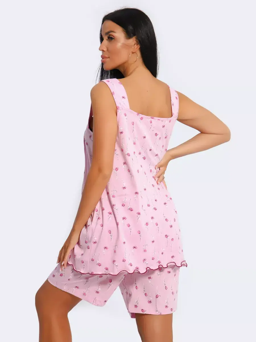 Женская пижама из хлопка - Ваш правильный выбор в поисках идеальной одежды для дома! Такая пижама подарит чувство уюта. Этот пижамный комплект невероятно легкий, невесомый. Ткань мягкая и приятная к телу, это дышащий материал. Пижама не сковывают движение. Шорты на талии оснащены мягкой резинкой, обеспечивают удобную посадку по фигуре.