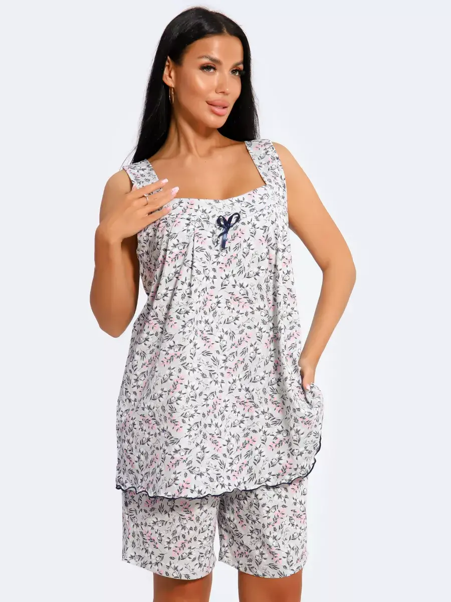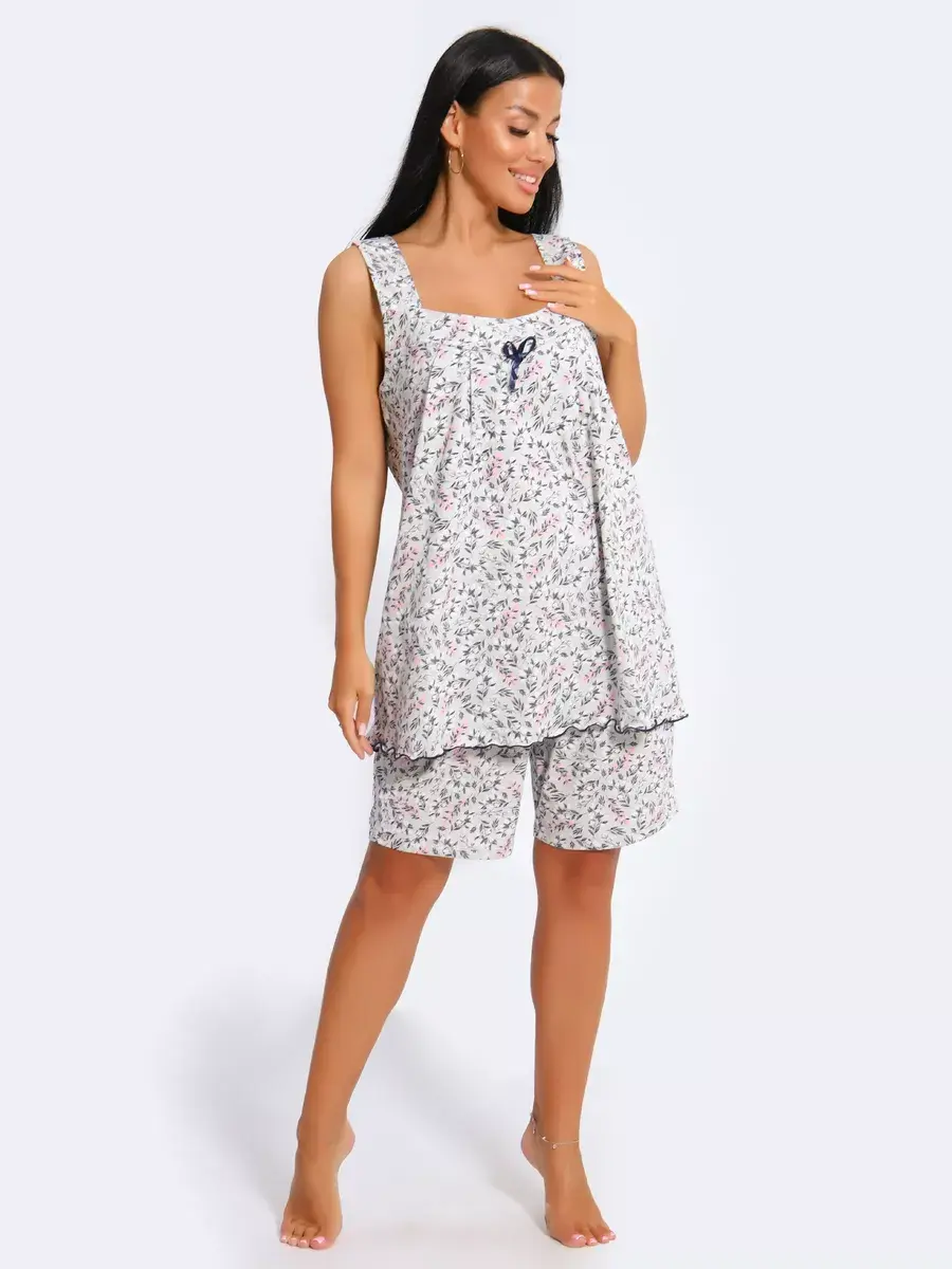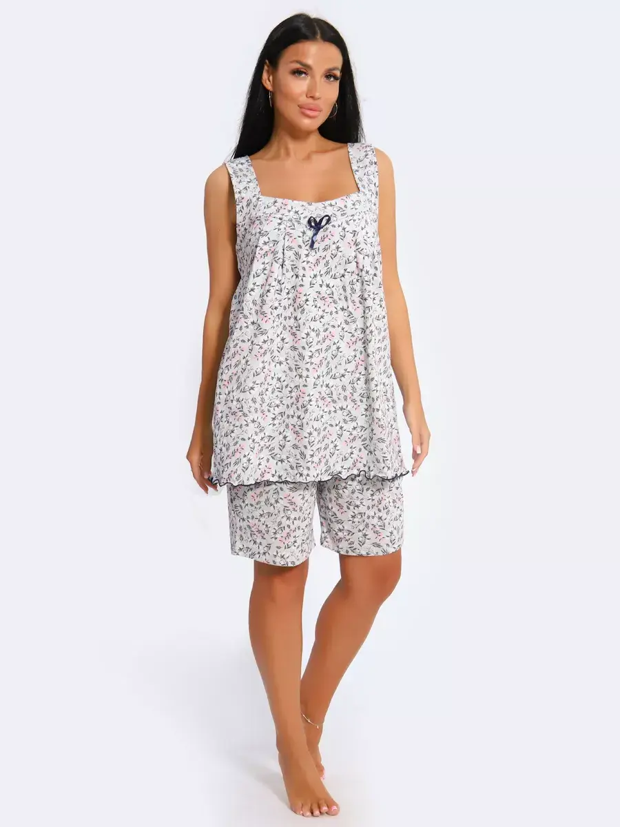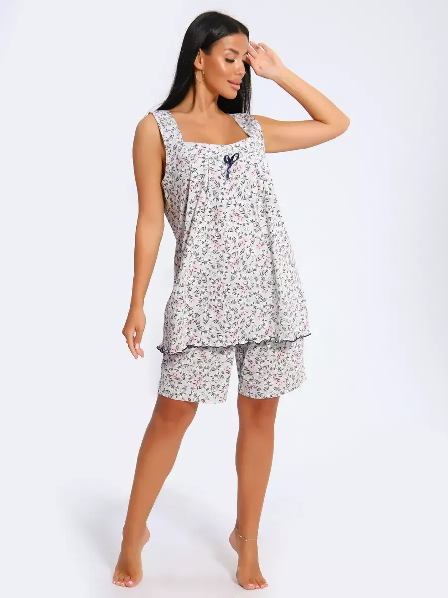 Женская пижама из хлопка - Ваш правильный выбор в поисках идеальной одежды для дома! Такая пижама подарит чувство уюта. Этот пижамный комплект невероятно легкий, невесомый. Ткань мягкая и приятная к телу, это дышащий материал. Пижама не сковывают движение. Шорты на талии оснащены мягкой резинкой, обеспечивают удобную посадку по фигуре.