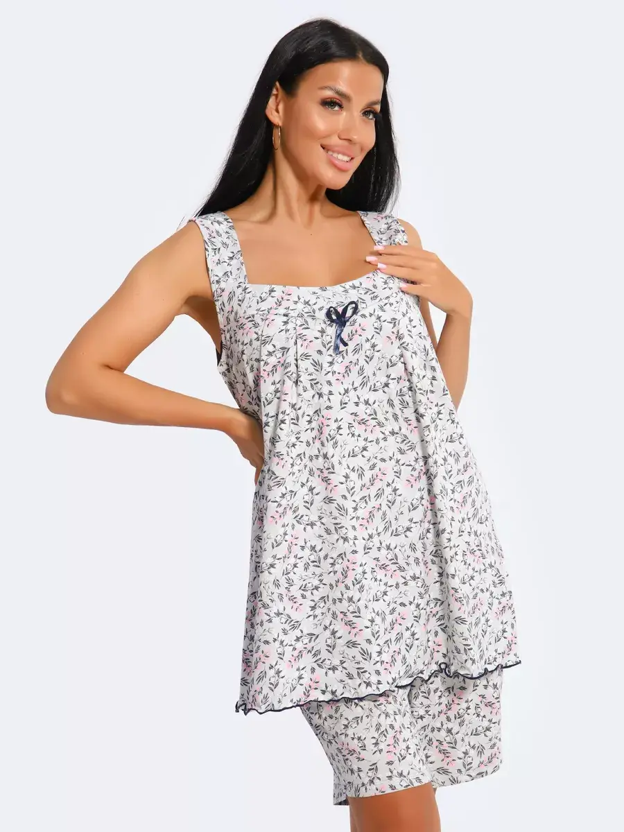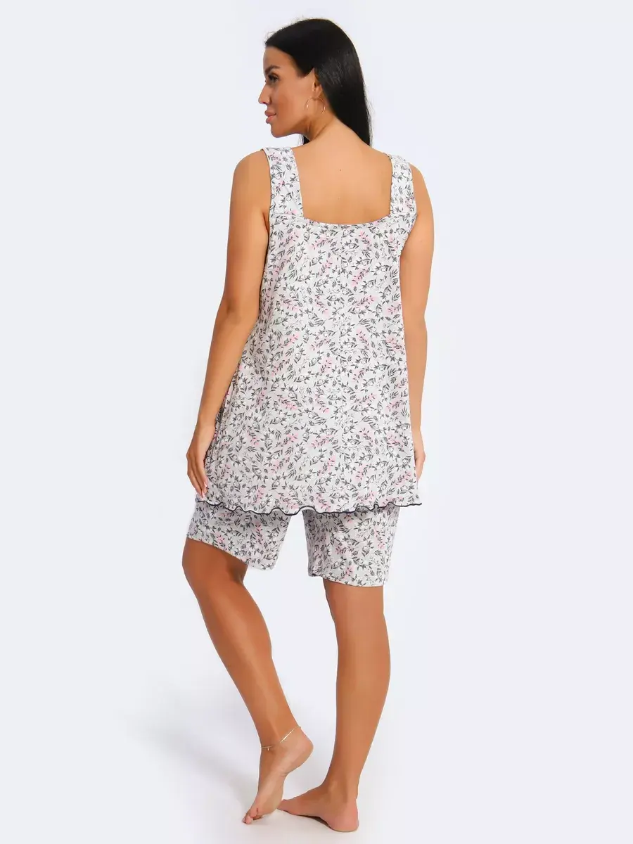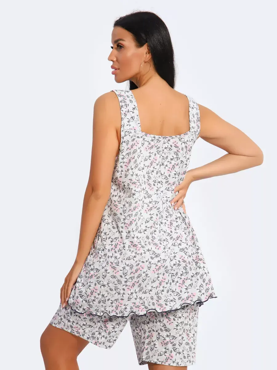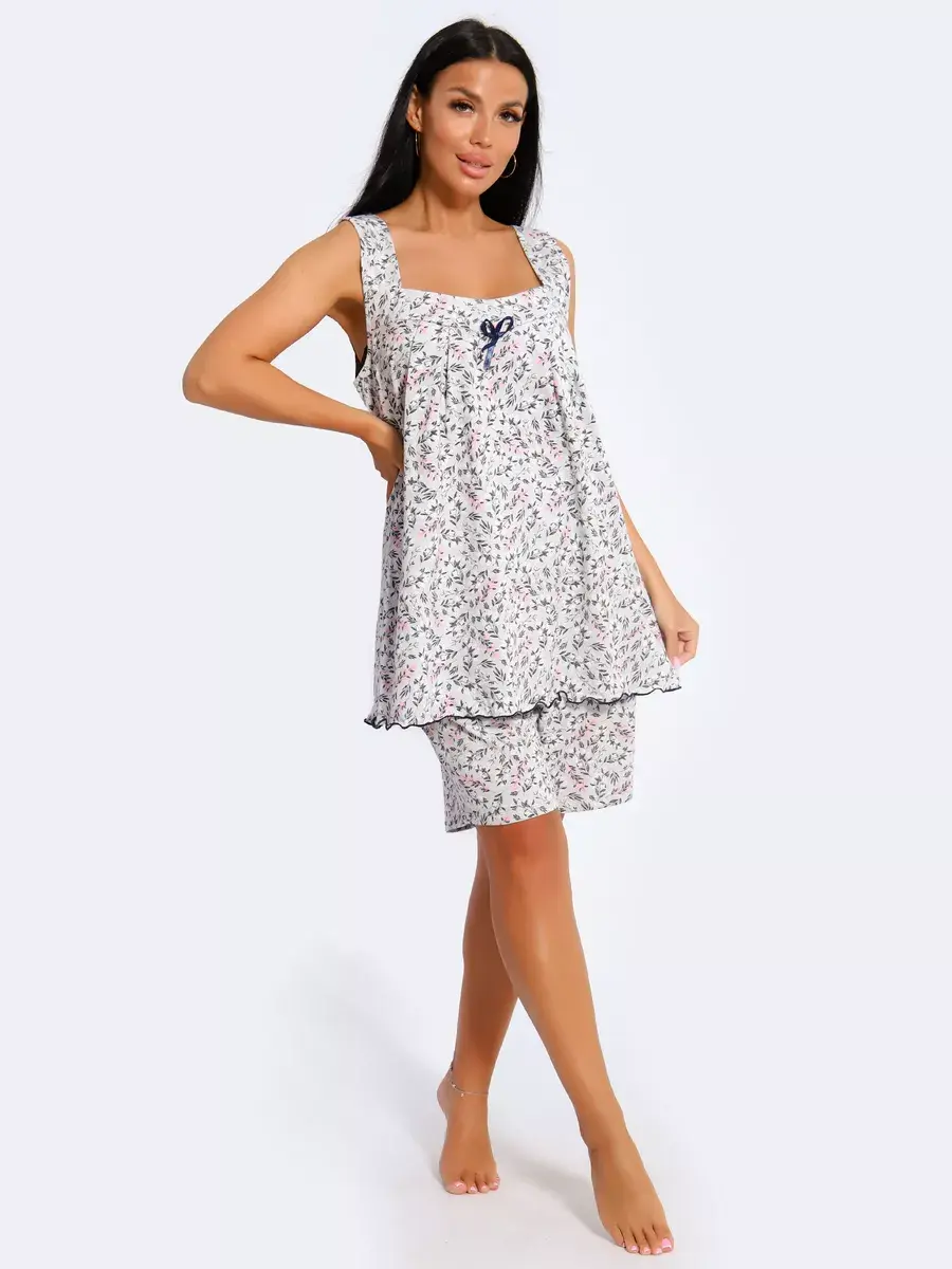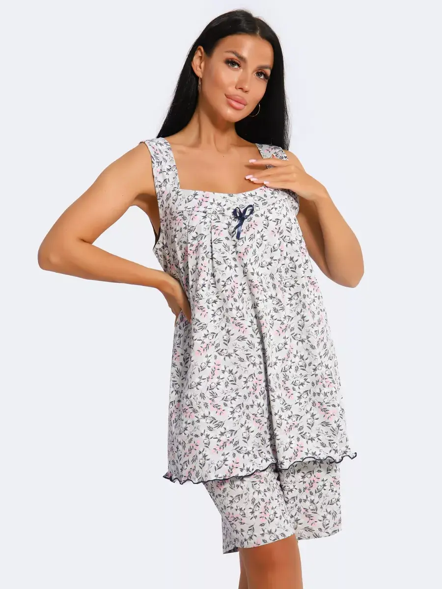 Женская пижама из хлопка - Ваш правильный выбор в поисках идеальной одежды для дома! Такая пижама подарит чувство уюта. Этот пижамный комплект невероятно легкий, невесомый. Ткань мягкая и приятная к телу, это дышащий материал. Пижама не сковывают движение. Шорты на талии оснащены мягкой резинкой, обеспечивают удобную посадку по фигуре.
