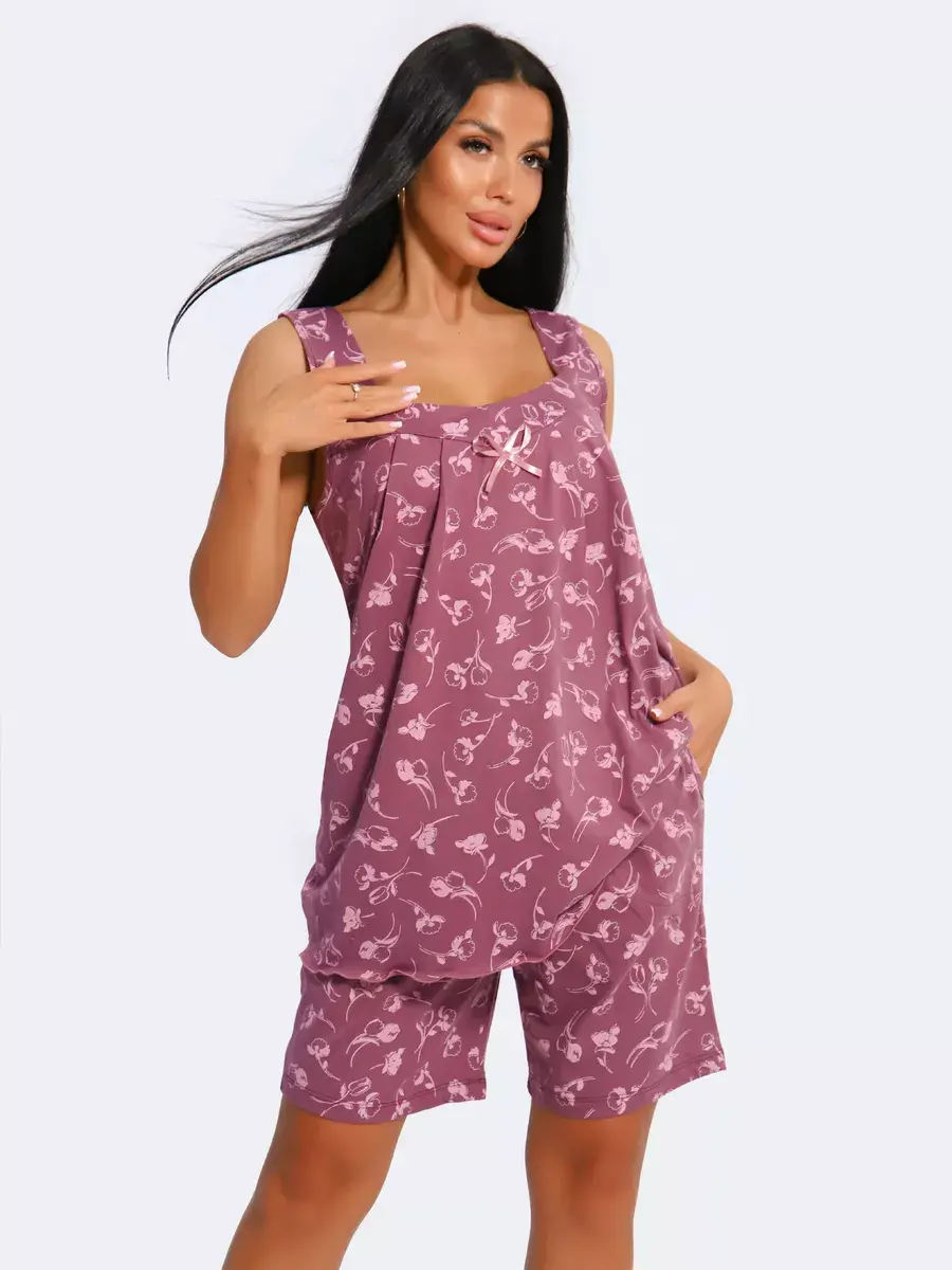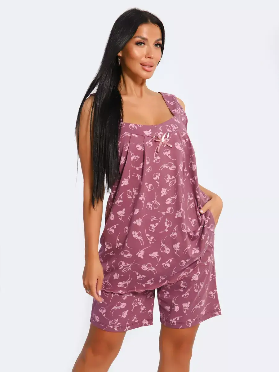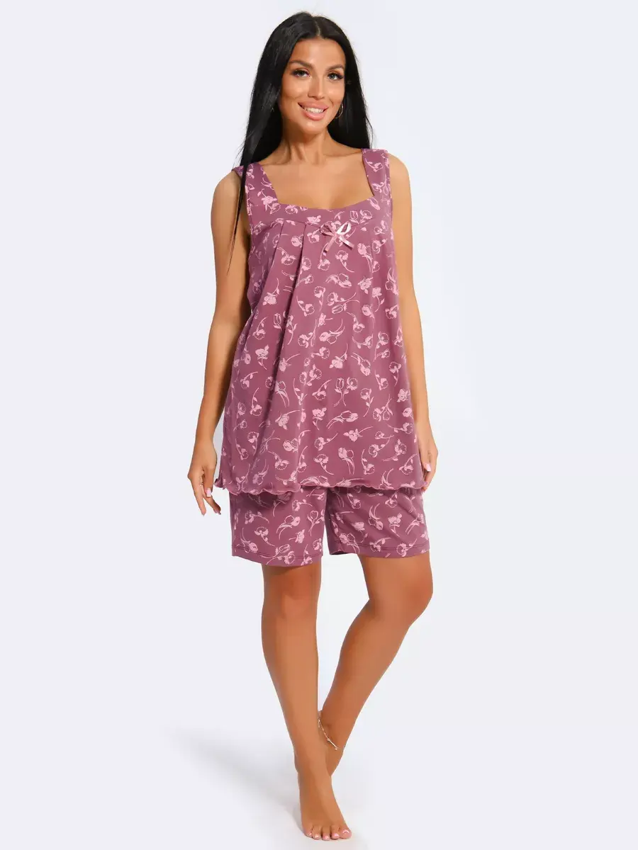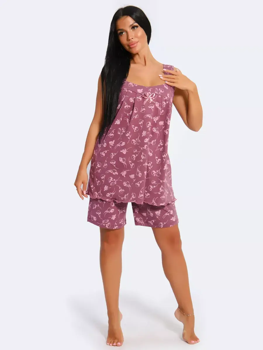 Женская пижама из хлопка - Ваш правильный выбор в поисках идеальной одежды для дома! Такая пижама подарит чувство уюта. Этот пижамный комплект невероятно легкий, невесомый. Ткань мягкая и приятная к телу, это дышащий материал. Пижама не сковывают движение. Шорты на талии оснащены мягкой резинкой, обеспечивают удобную посадку по фигуре.