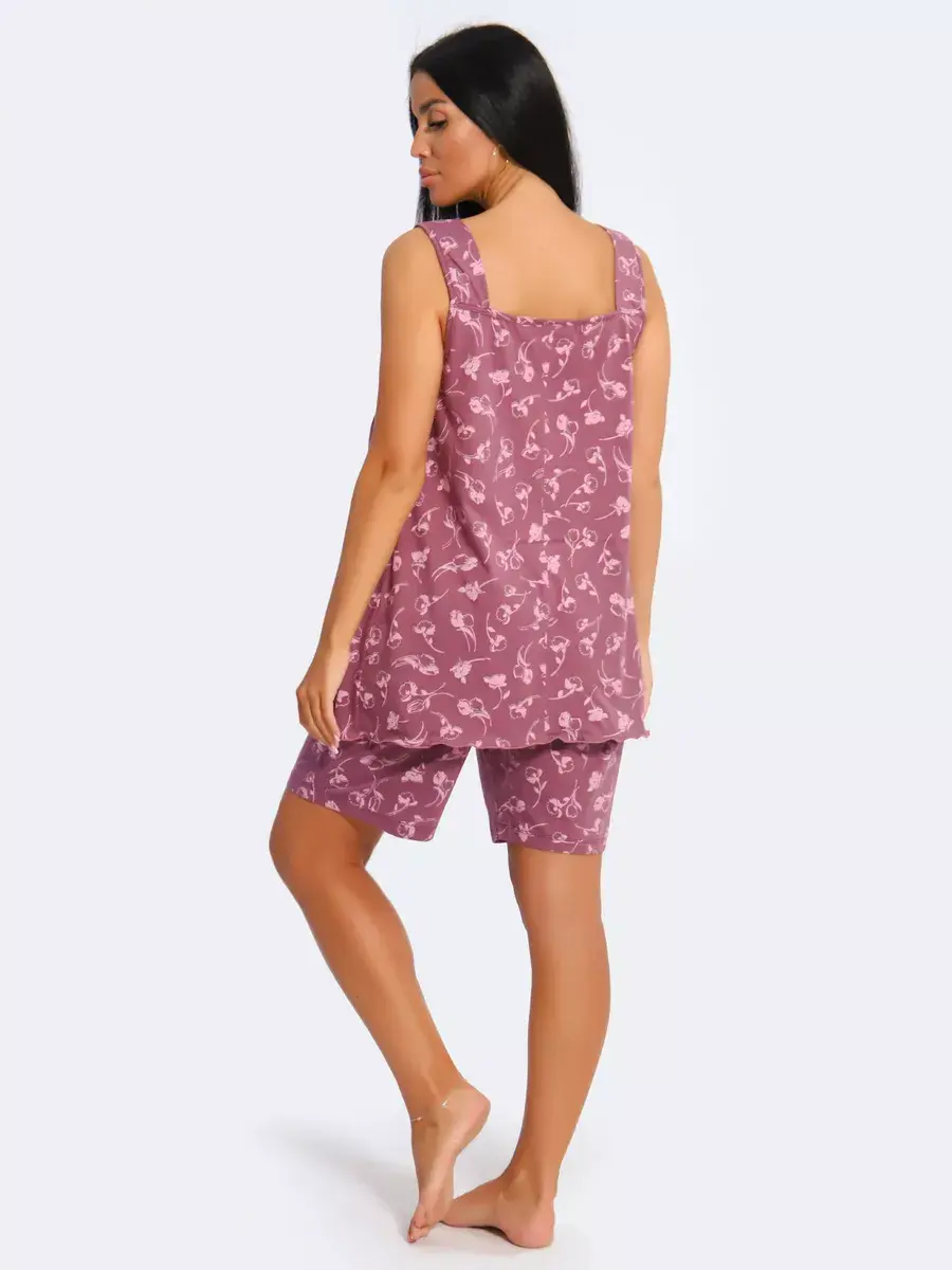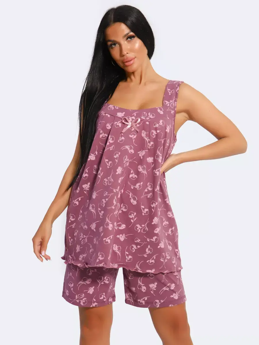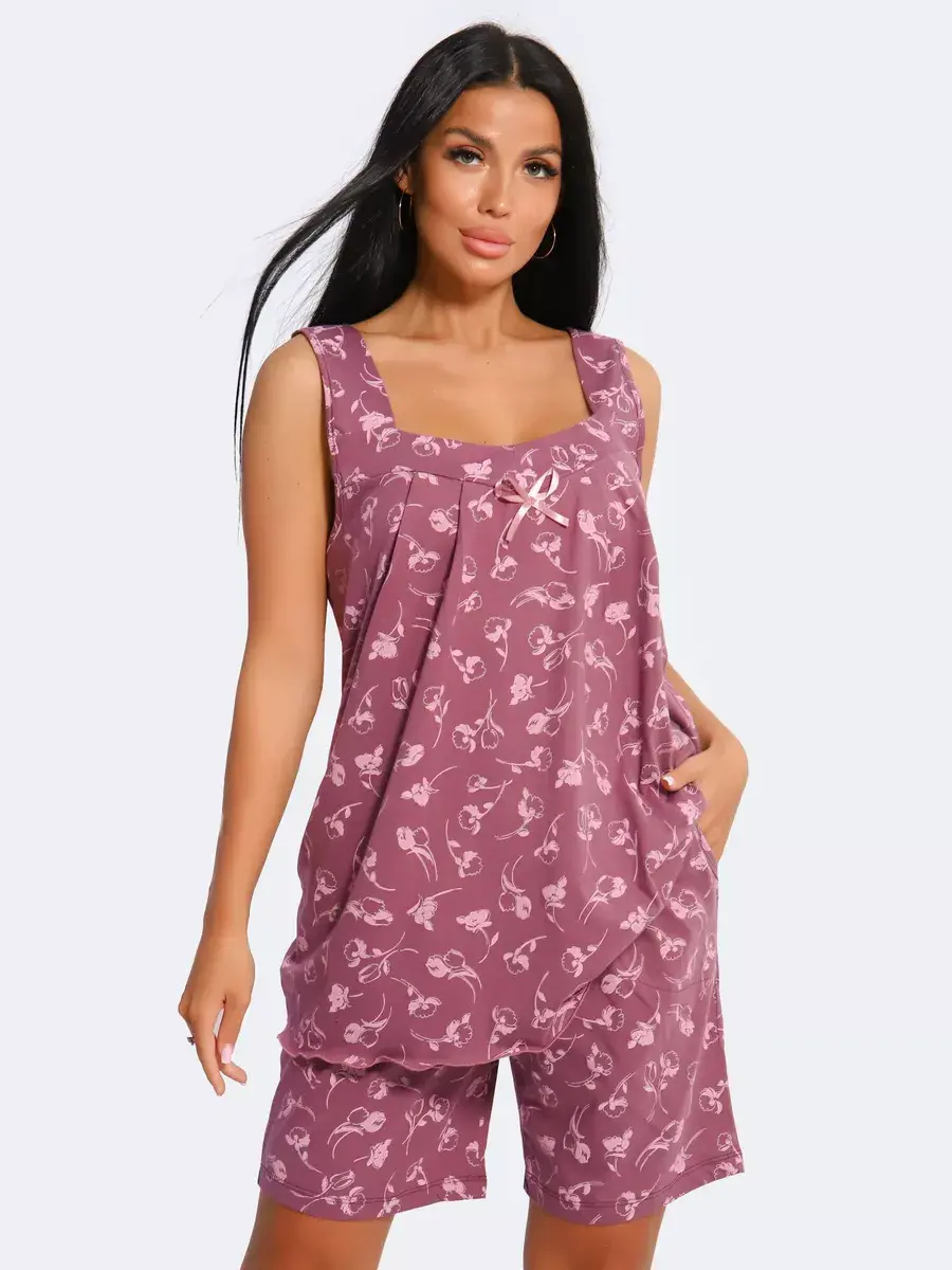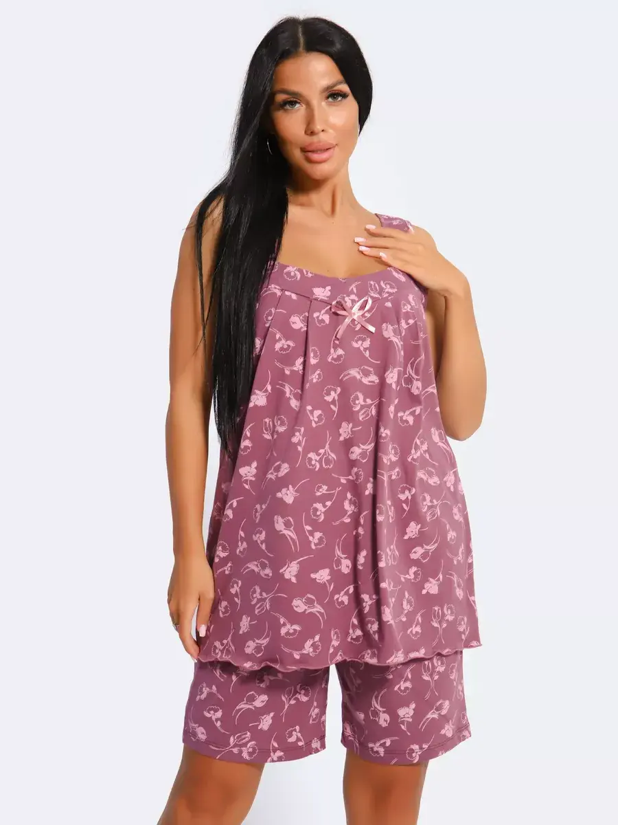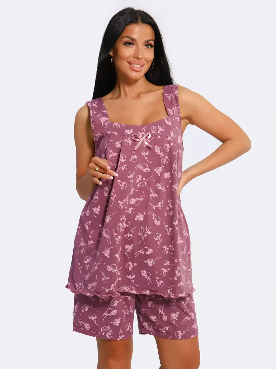 Женская пижама из хлопка - Ваш правильный выбор в поисках идеальной одежды для дома! Такая пижама подарит чувство уюта. Этот пижамный комплект невероятно легкий, невесомый. Ткань мягкая и приятная к телу, это дышащий материал. Пижама не сковывают движение. Шорты на талии оснащены мягкой резинкой, обеспечивают удобную посадку по фигуре.