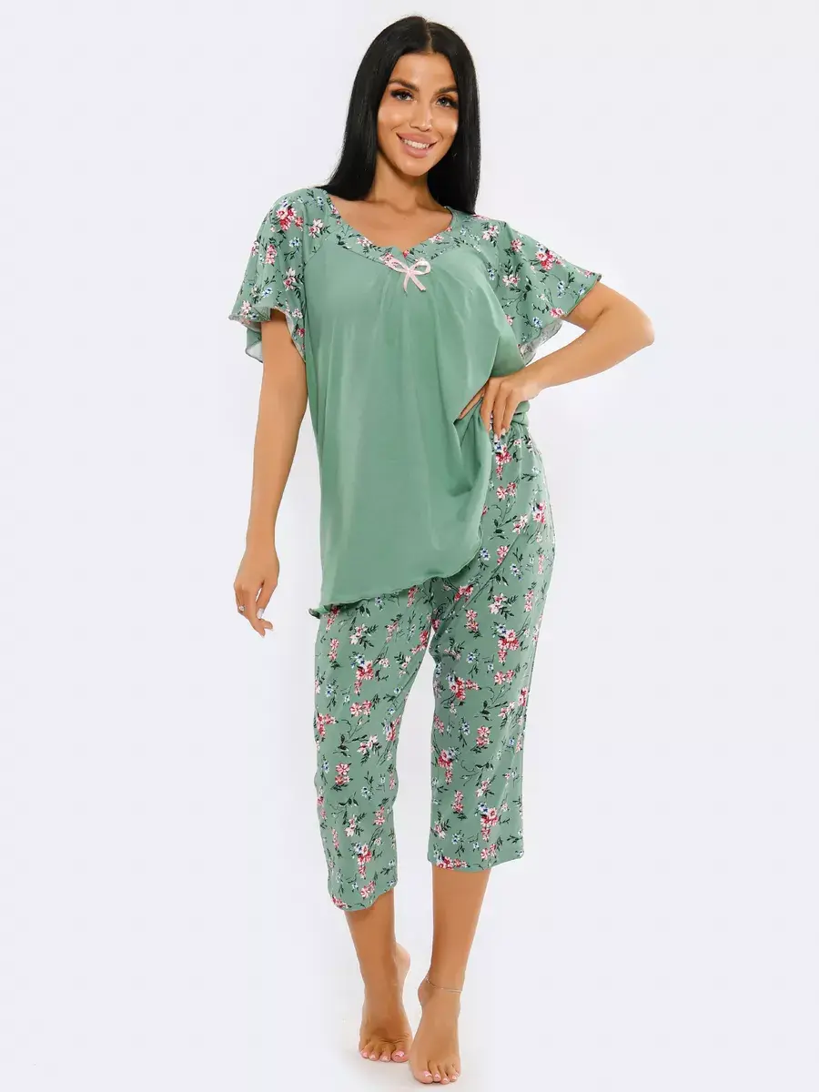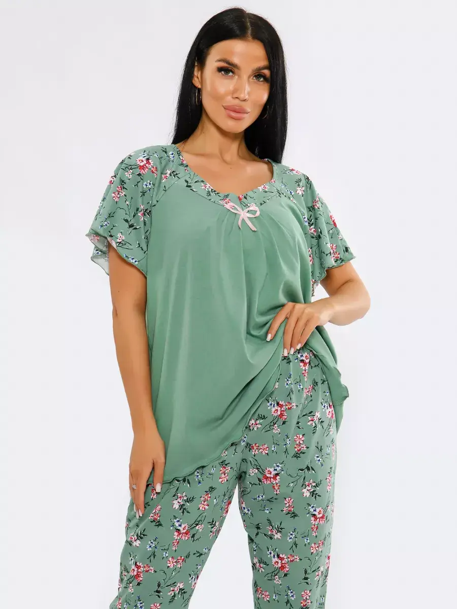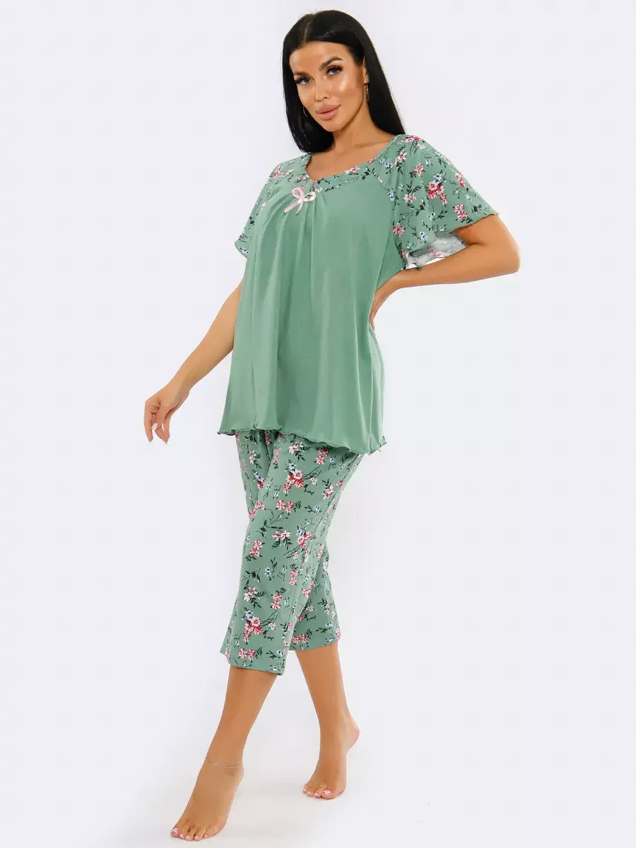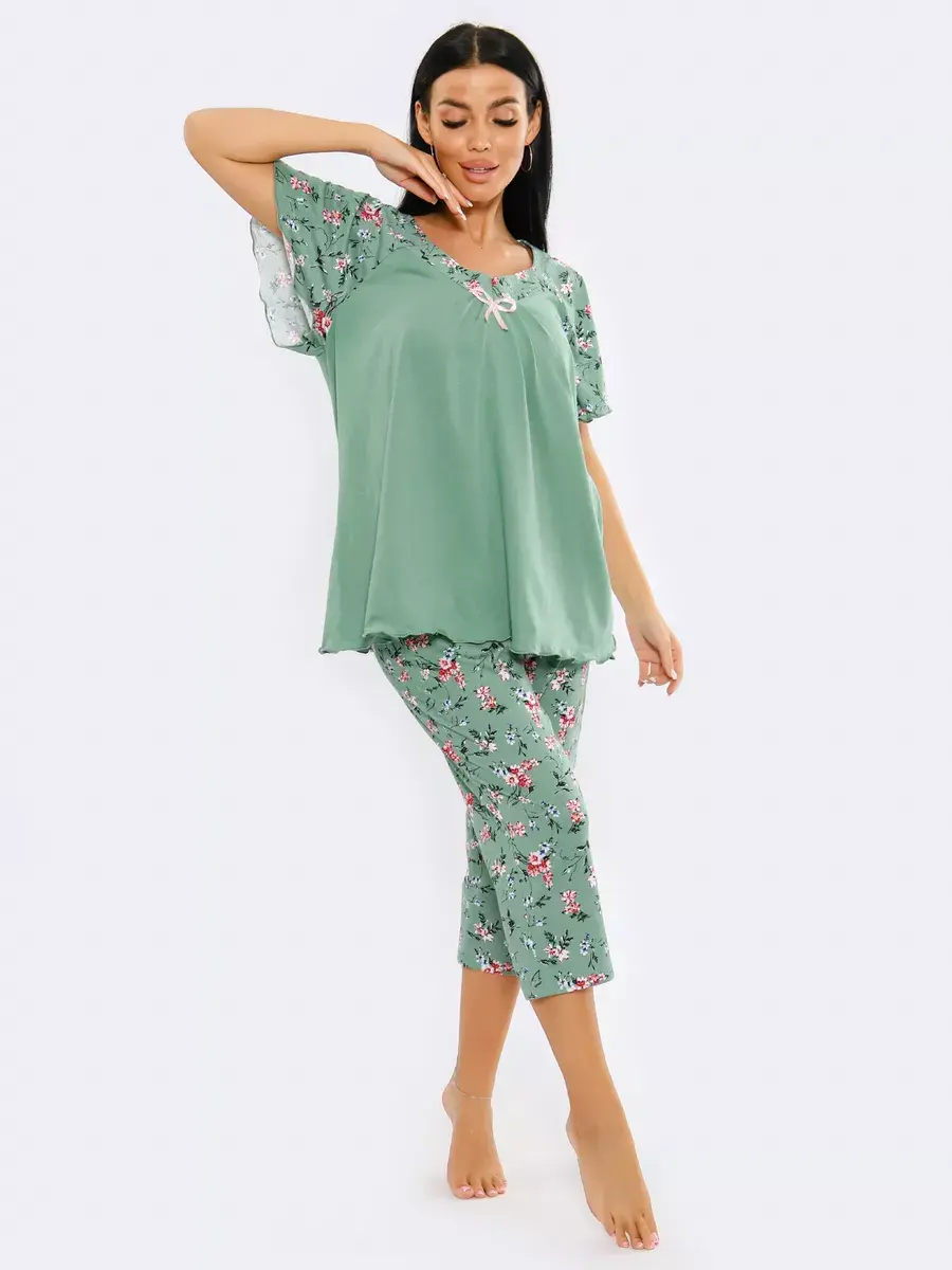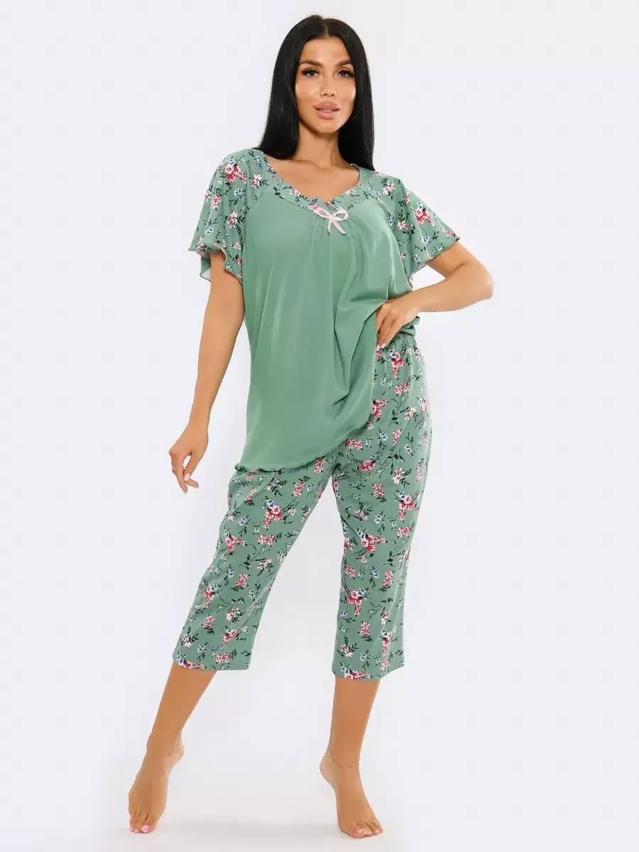 Необычная стильная женская пижама представлена в нашей новой коллекции Осень-Зима 2024. Приятный к телу ночной комплект двойка очень легкий и комфортный. Легкое, нежное, дышащее полотно не скатывается и не деформируется при носке. Эта домашняя одежда сдержанной и лаконичной расцветки подчеркнет ваш вкус. Уютная пижама состоит из футболки с коротким спущенным рукавом и пижамных бридж. Удобные бриджи на резинке на талии не стеснят движения, а футболка свободного кроя скроет недостатки фигуры. В этой пижаме Вы будете выглядеть эффектно и красиво в домашней обстановке и на отдыхе. Домашняя одежда для женщин - вещь, которую хочется получить в подарок.