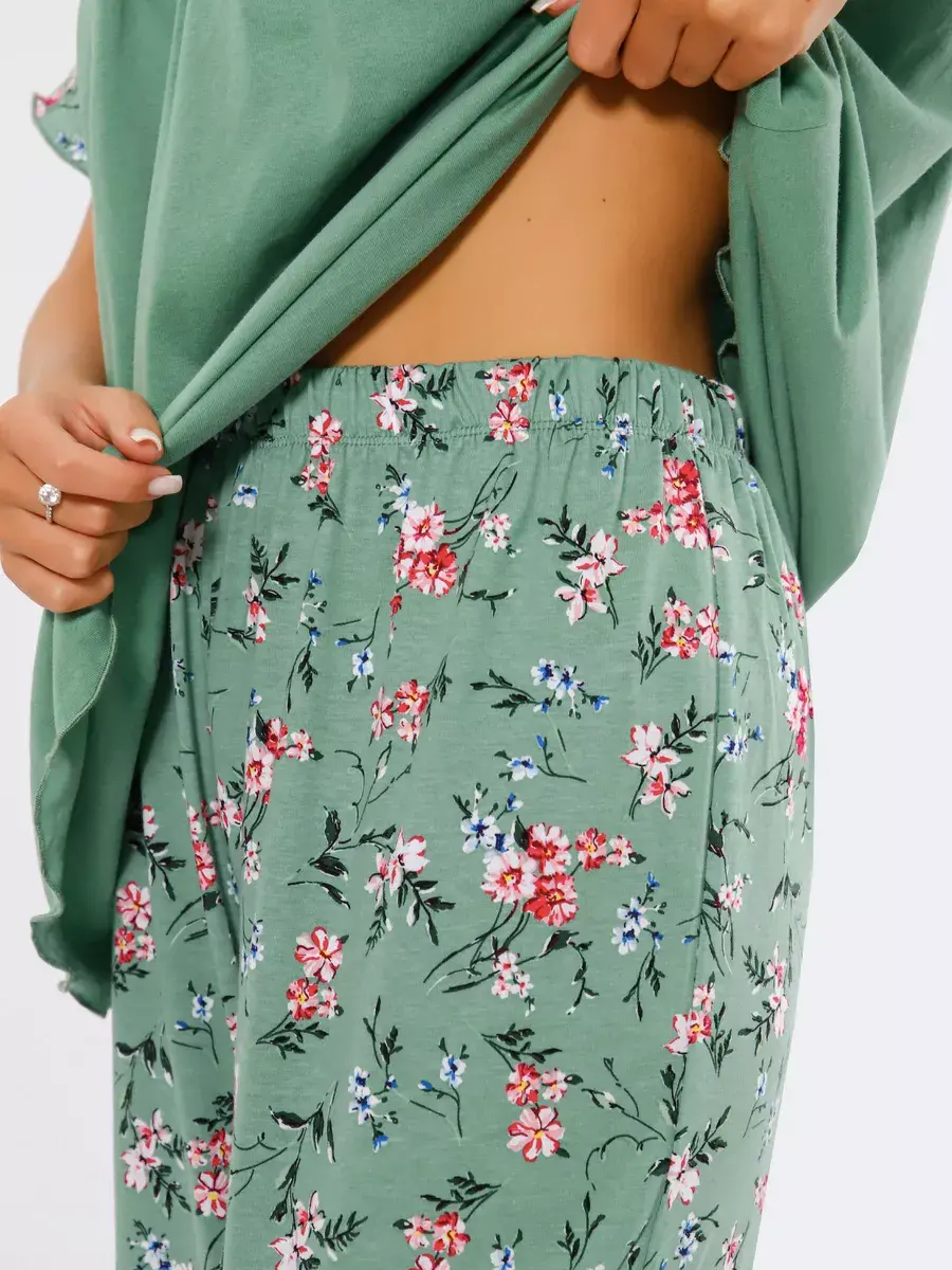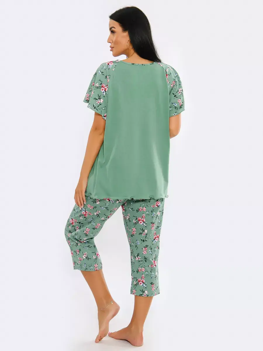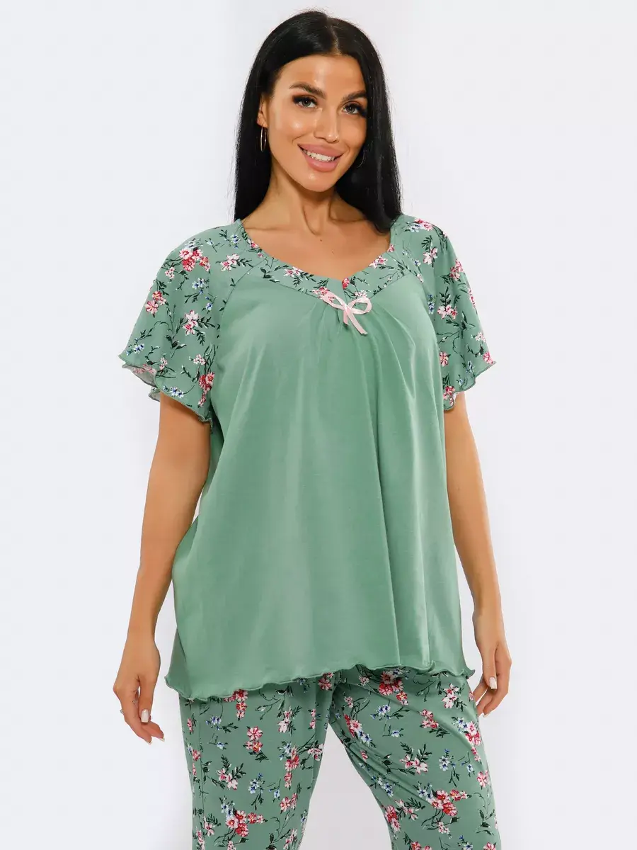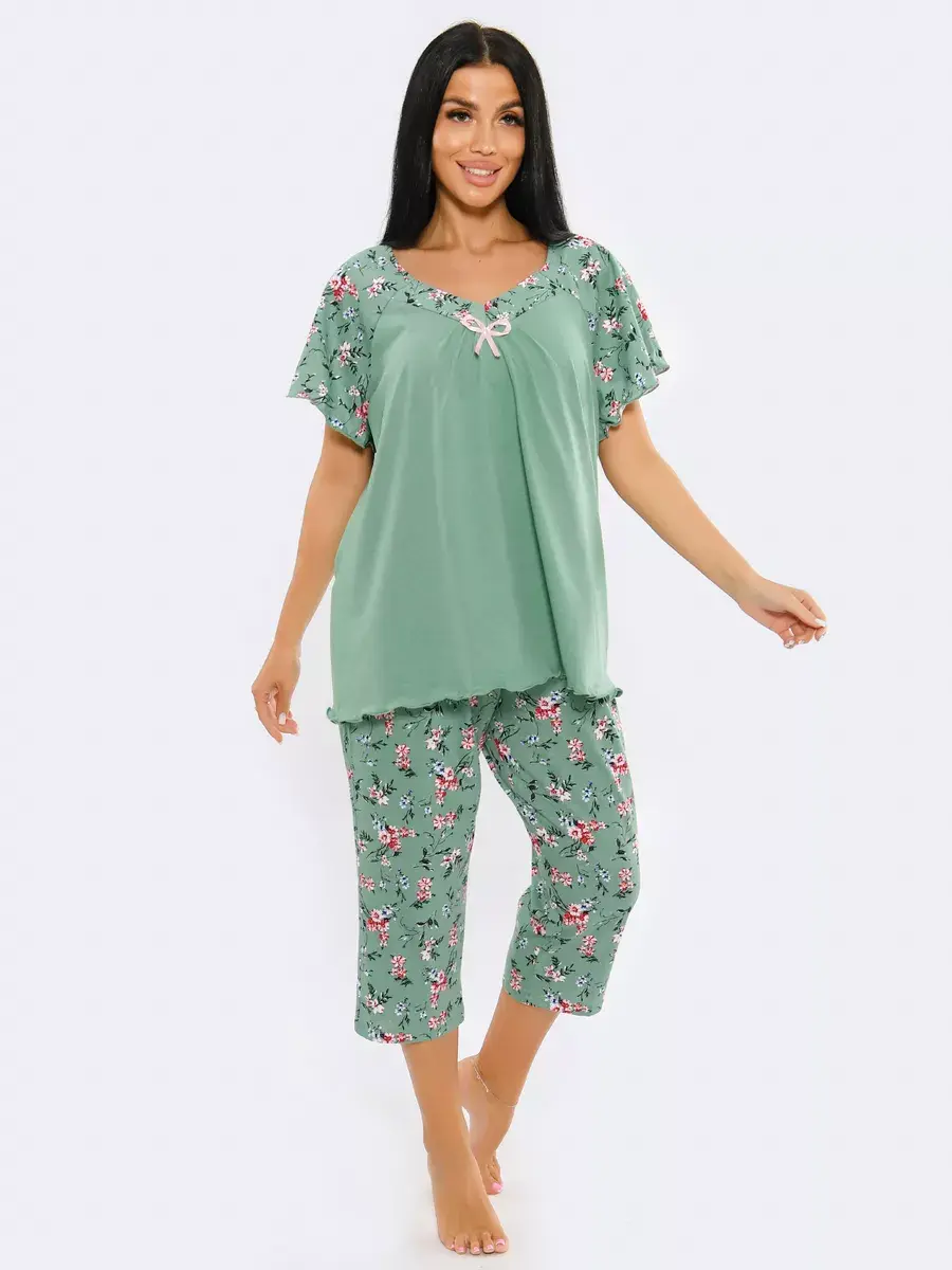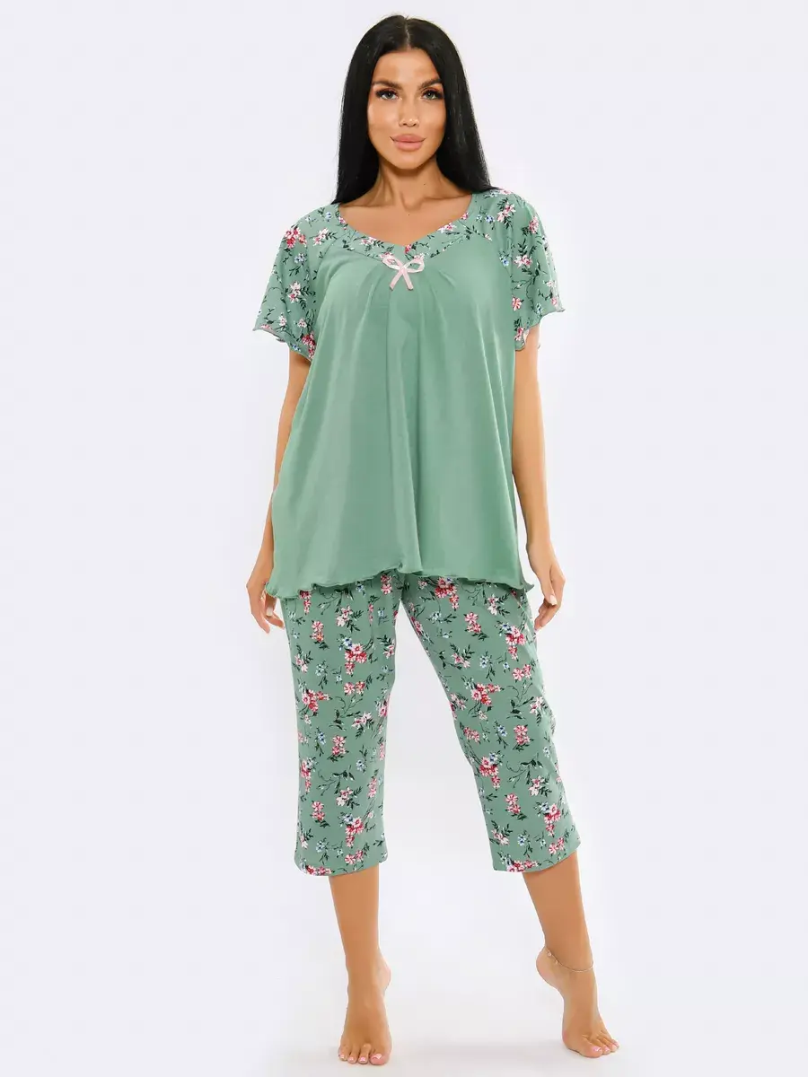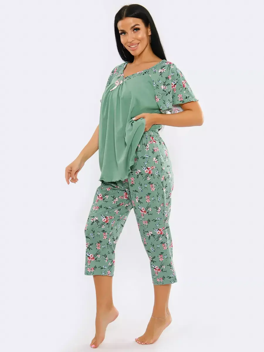 Необычная стильная женская пижама представлена в нашей новой коллекции Осень-Зима 2024. Приятный к телу ночной комплект двойка очень легкий и комфортный. Легкое, нежное, дышащее полотно не скатывается и не деформируется при носке. Эта домашняя одежда сдержанной и лаконичной расцветки подчеркнет ваш вкус. Уютная пижама состоит из футболки с коротким спущенным рукавом и пижамных бридж. Удобные бриджи на резинке на талии не стеснят движения, а футболка свободного кроя скроет недостатки фигуры. В этой пижаме Вы будете выглядеть эффектно и красиво в домашней обстановке и на отдыхе. Домашняя одежда для женщин - вещь, которую хочется получить в подарок.
