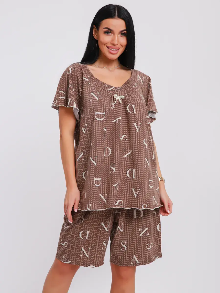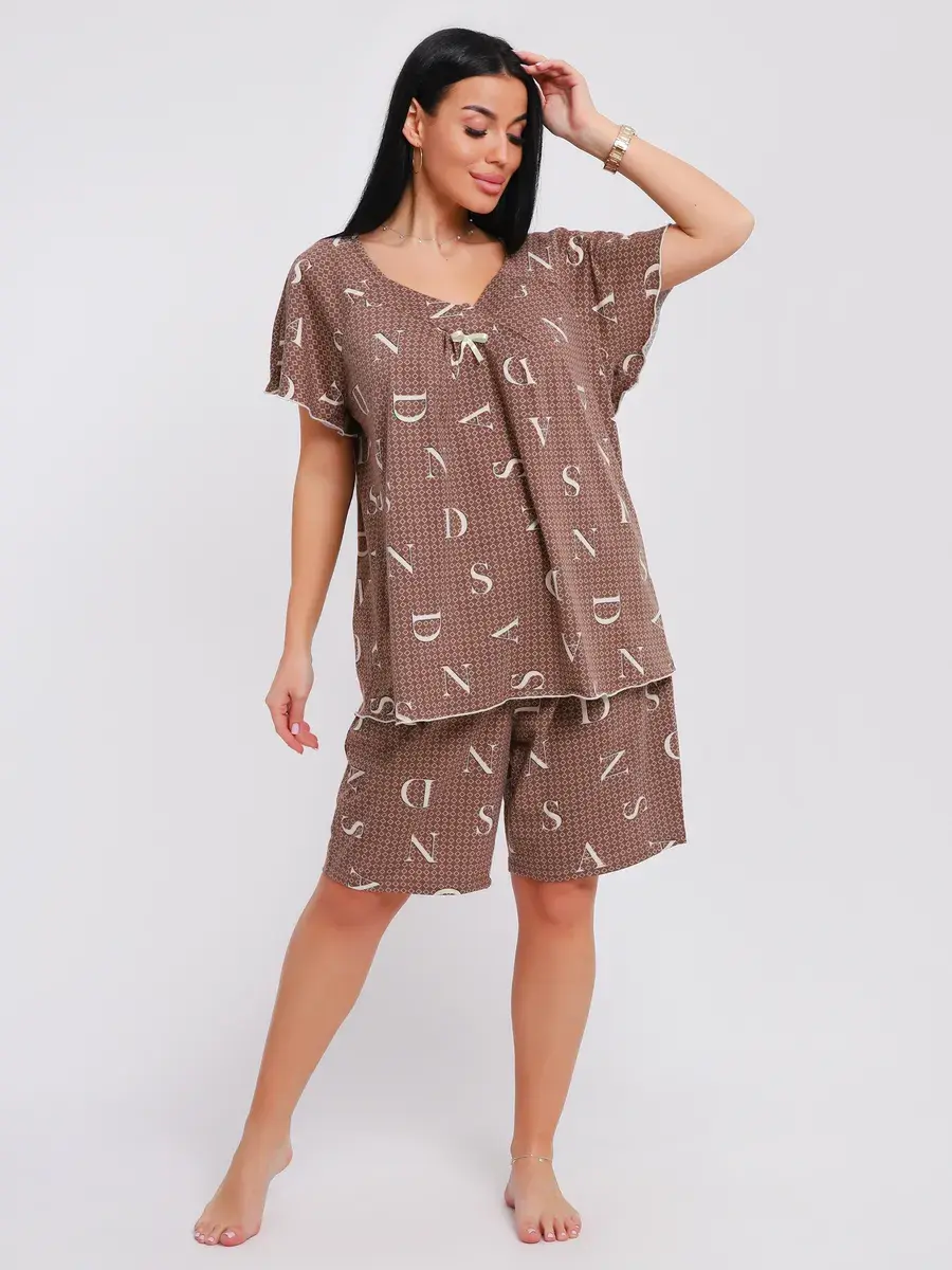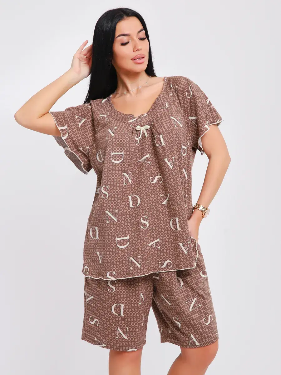 Женская пижама из хлопка - Ваш правильный выбор в поисках идеальной одежды для дома! Такая пижама подарит чувство уюта. Этот пижамный комплект невероятно легкий, невесомый. Ткань мягкая и приятная к телу, это дышащий материал. Пижама не сковывают движение. Шорты на талии оснащены мягкой резинкой, обеспечивают удобную посадку по фигуре.