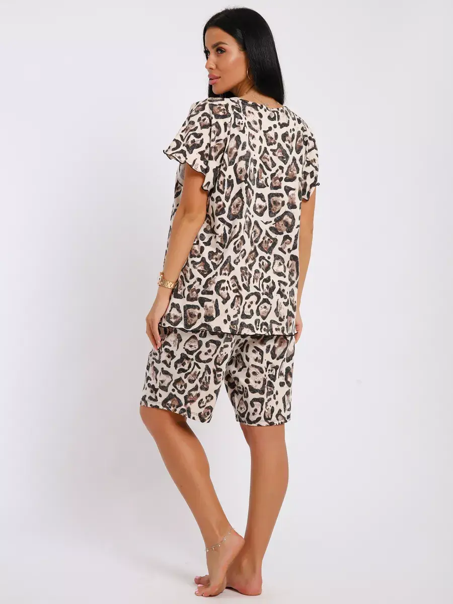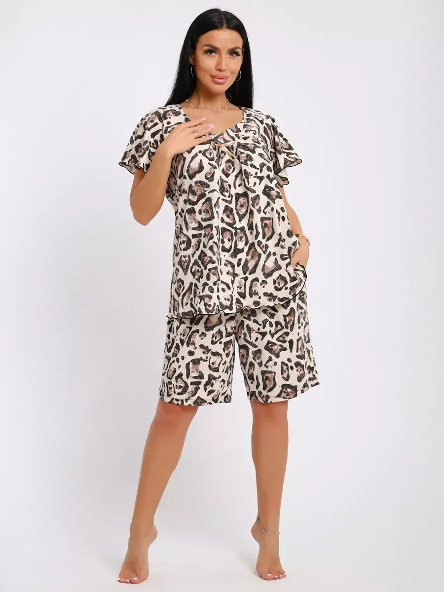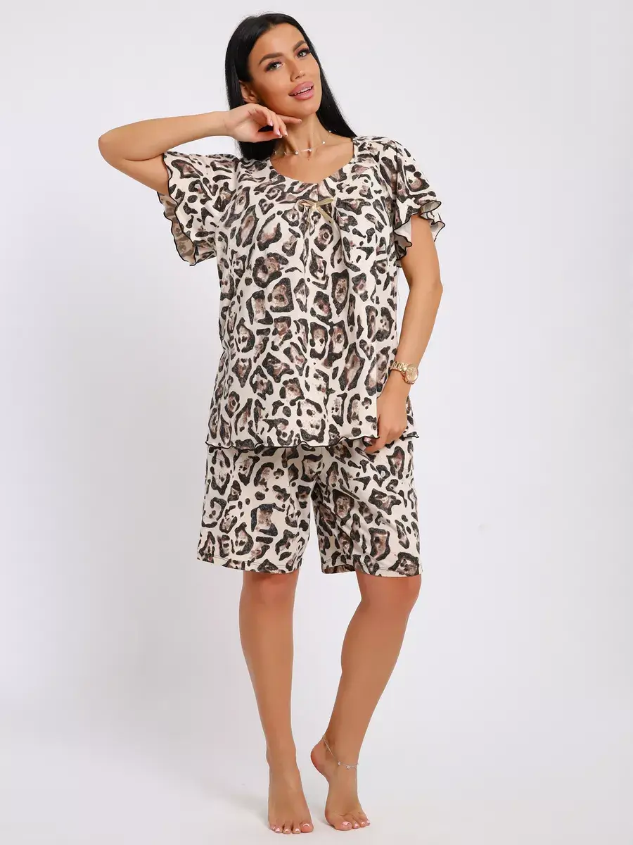 Женская пижама из хлопка - Ваш правильный выбор в поисках идеальной одежды для дома! Такая пижама подарит чувство уюта. Этот пижамный комплект невероятно легкий, невесомый. Ткань мягкая и приятная к телу, это дышащий материал. Пижама не сковывают движение. Шорты на талии оснащены мягкой резинкой, обеспечивают удобную посадку по фигуре.
