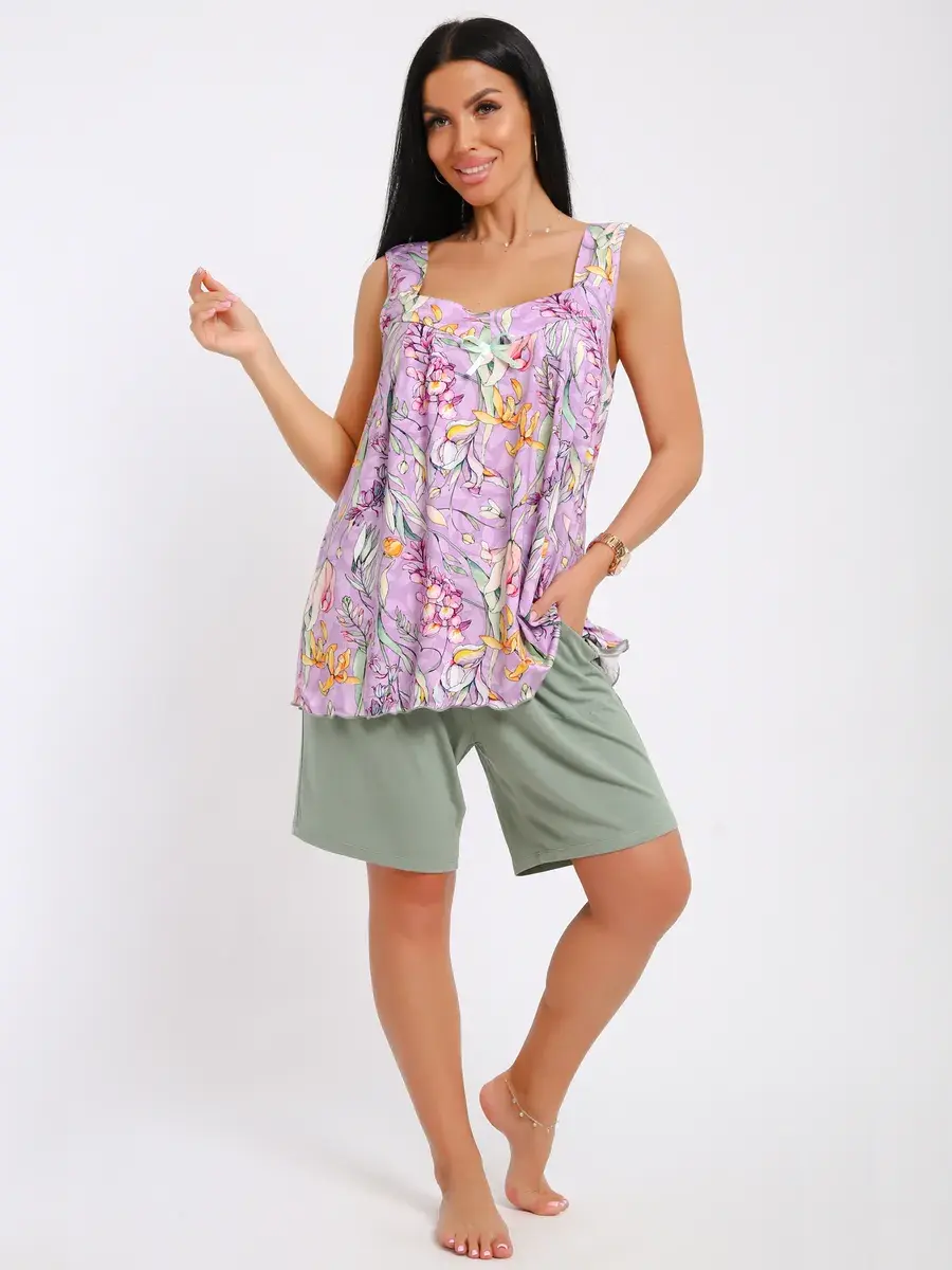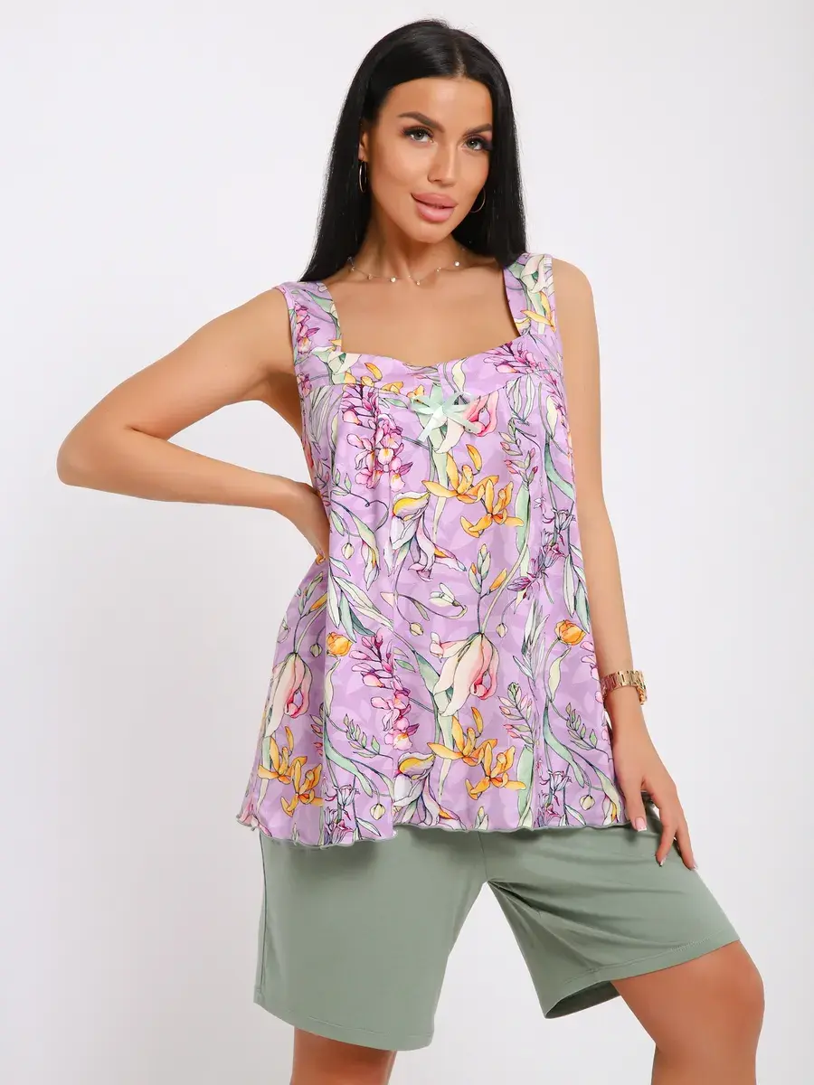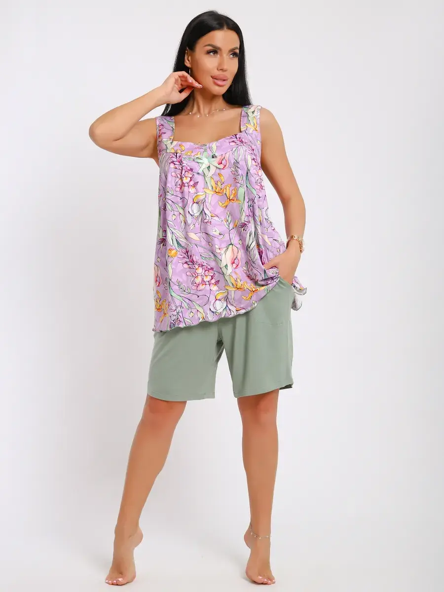 Мы создали любимую всеми модель пижамы из нежной вискозы, производства Турции. Пижама подойдет на любой тип фигуры, свободные шорты на эластичной резинке и майка-туника не стеснят Ваших движений как днём, так и ночью. Пижама станет неотъемлемой частью Вашего гардероба, желаем Вам удачных покупок!