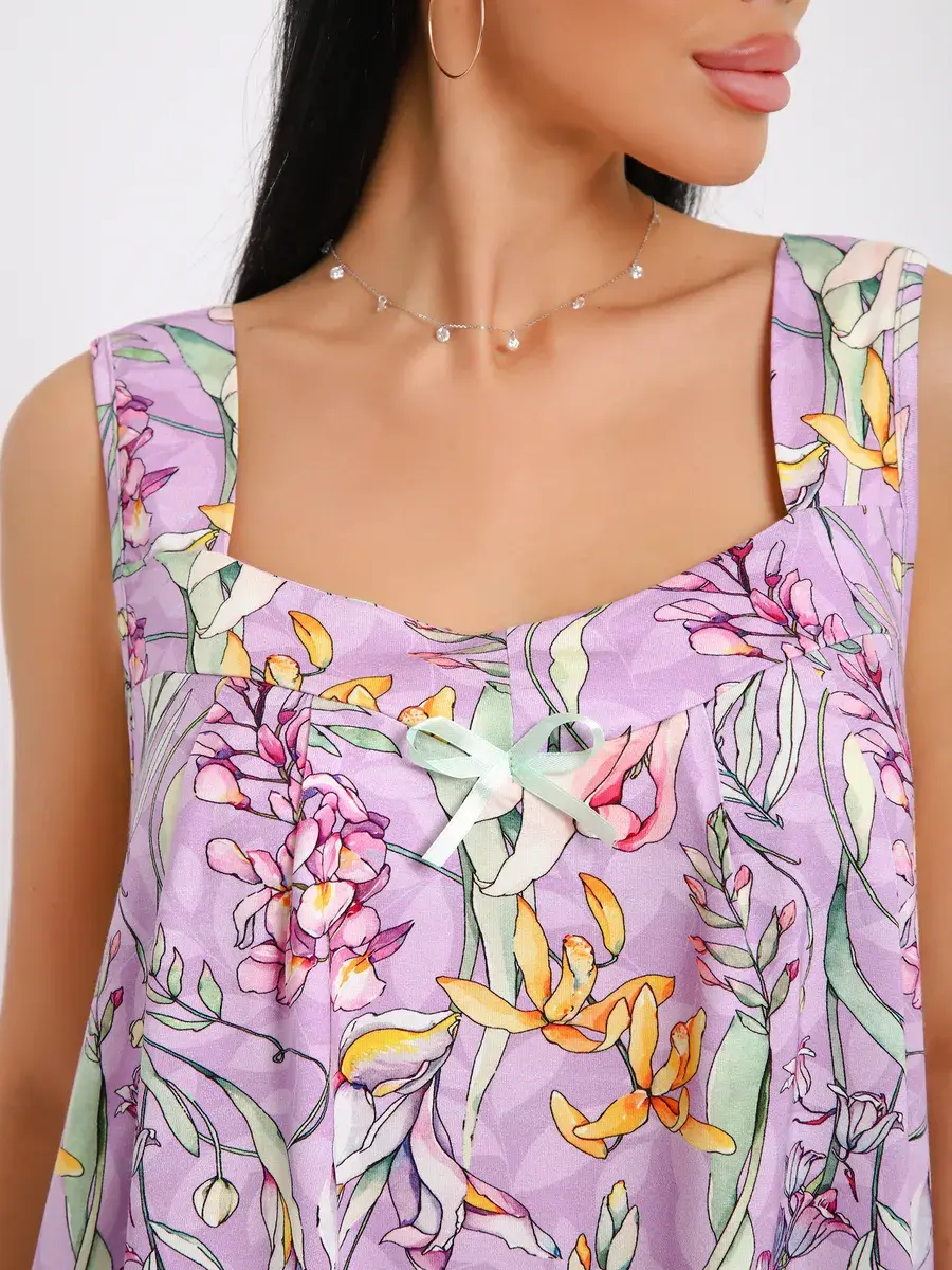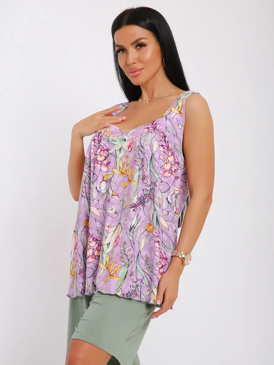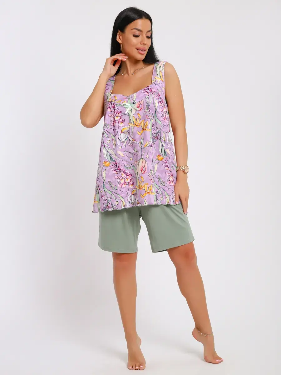 Мы создали любимую всеми модель пижамы из нежной вискозы, производства Турции. Пижама подойдет на любой тип фигуры, свободные шорты на эластичной резинке и майка-туника не стеснят Ваших движений как днём, так и ночью. Пижама станет неотъемлемой частью Вашего гардероба, желаем Вам удачных покупок!