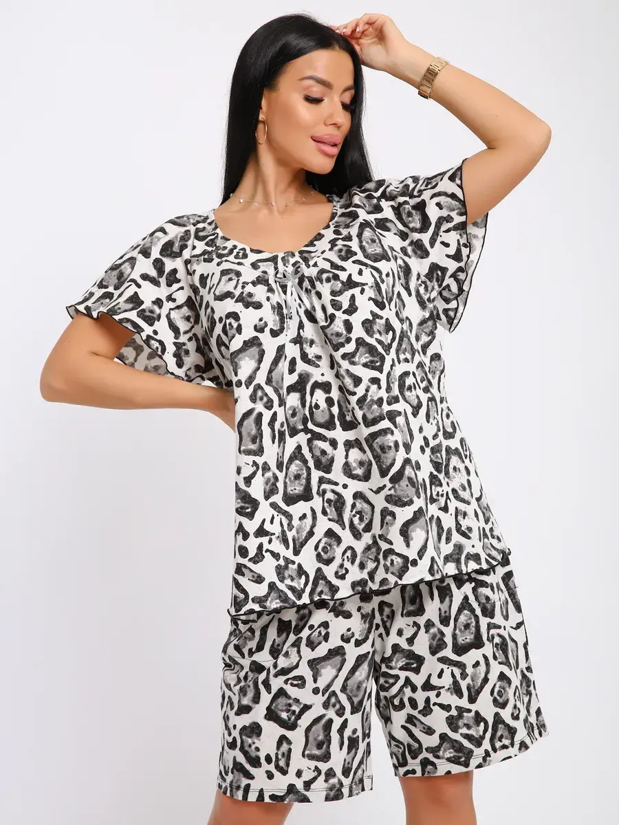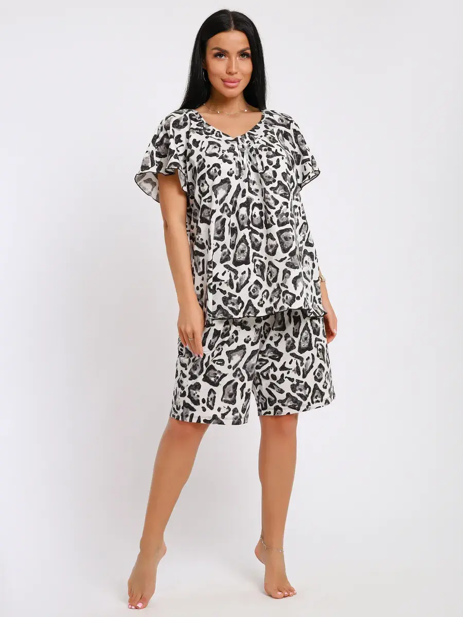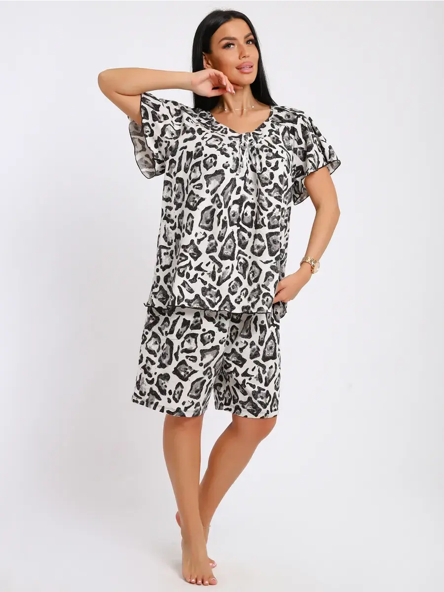 Женская пижама из хлопка - Ваш правильный выбор в поисках идеальной одежды для дома! Такая пижама подарит чувство уюта. Этот пижамный комплект невероятно легкий, невесомый. Ткань мягкая и приятная к телу, это дышащий материал. Пижама не сковывают движение. Шорты на талии оснащены мягкой резинкой, обеспечивают удобную посадку по фигуре.