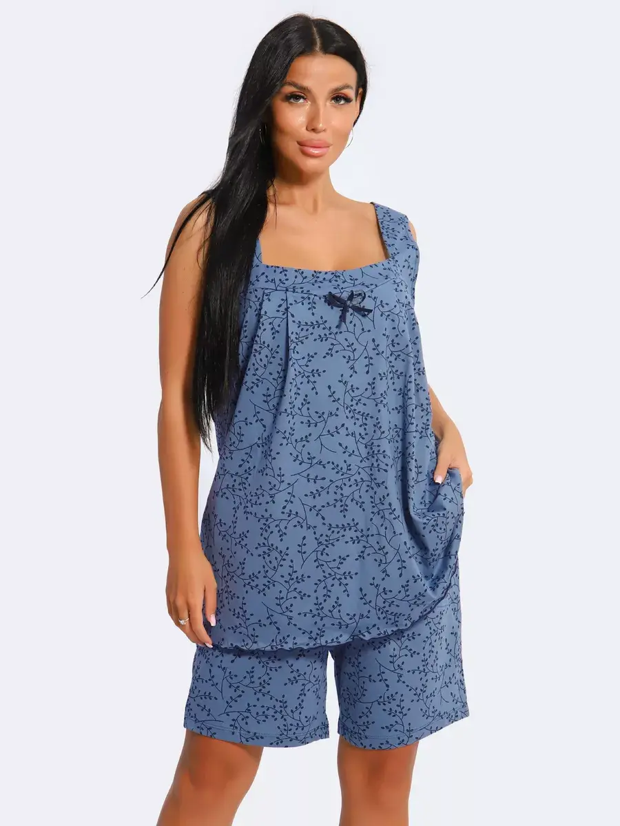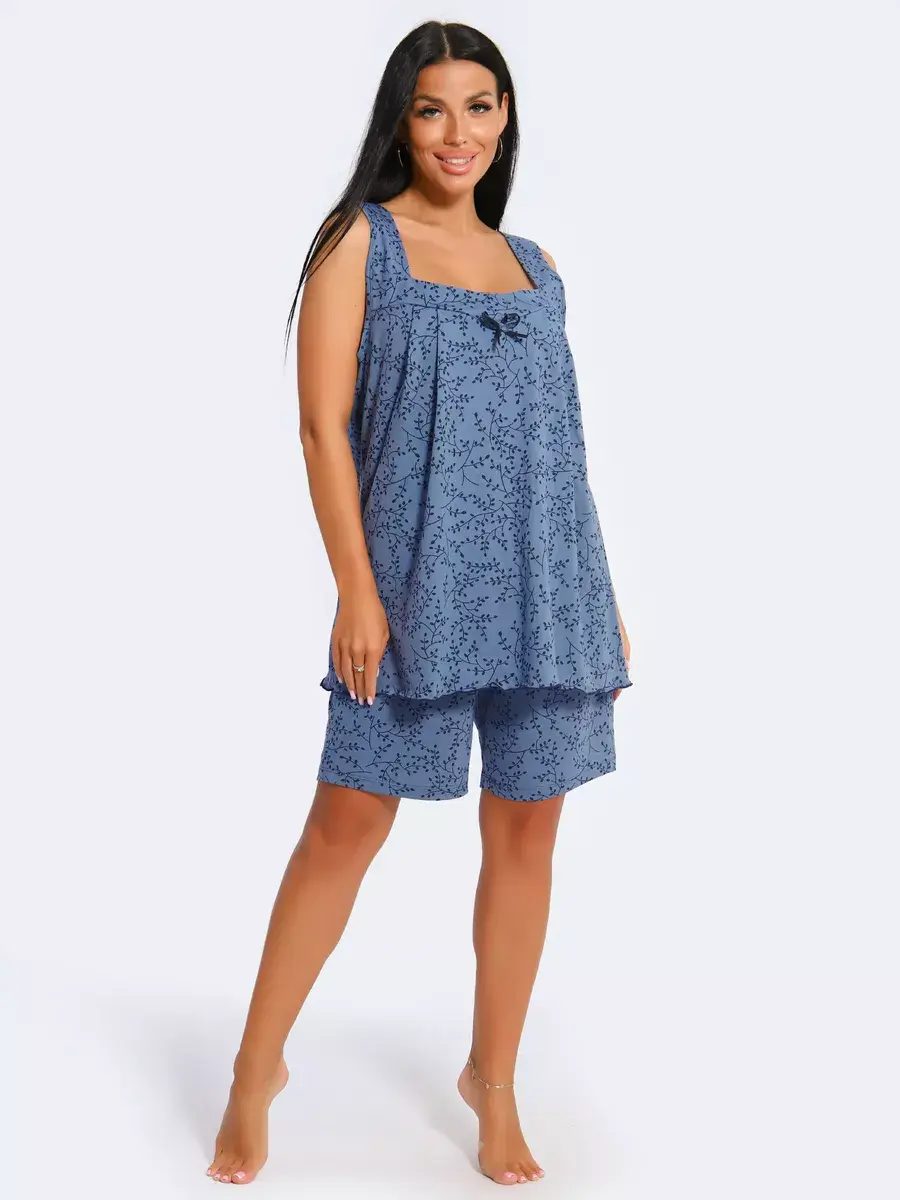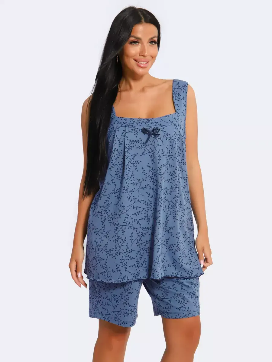 Женская пижама из хлопка - Ваш правильный выбор в поисках идеальной одежды для дома! Такая пижама подарит чувство уюта. Этот пижамный комплект невероятно легкий, невесомый. Ткань мягкая и приятная к телу, это дышащий материал. Пижама не сковывают движение. Шорты на талии оснащены мягкой резинкой, обеспечивают удобную посадку по фигуре.