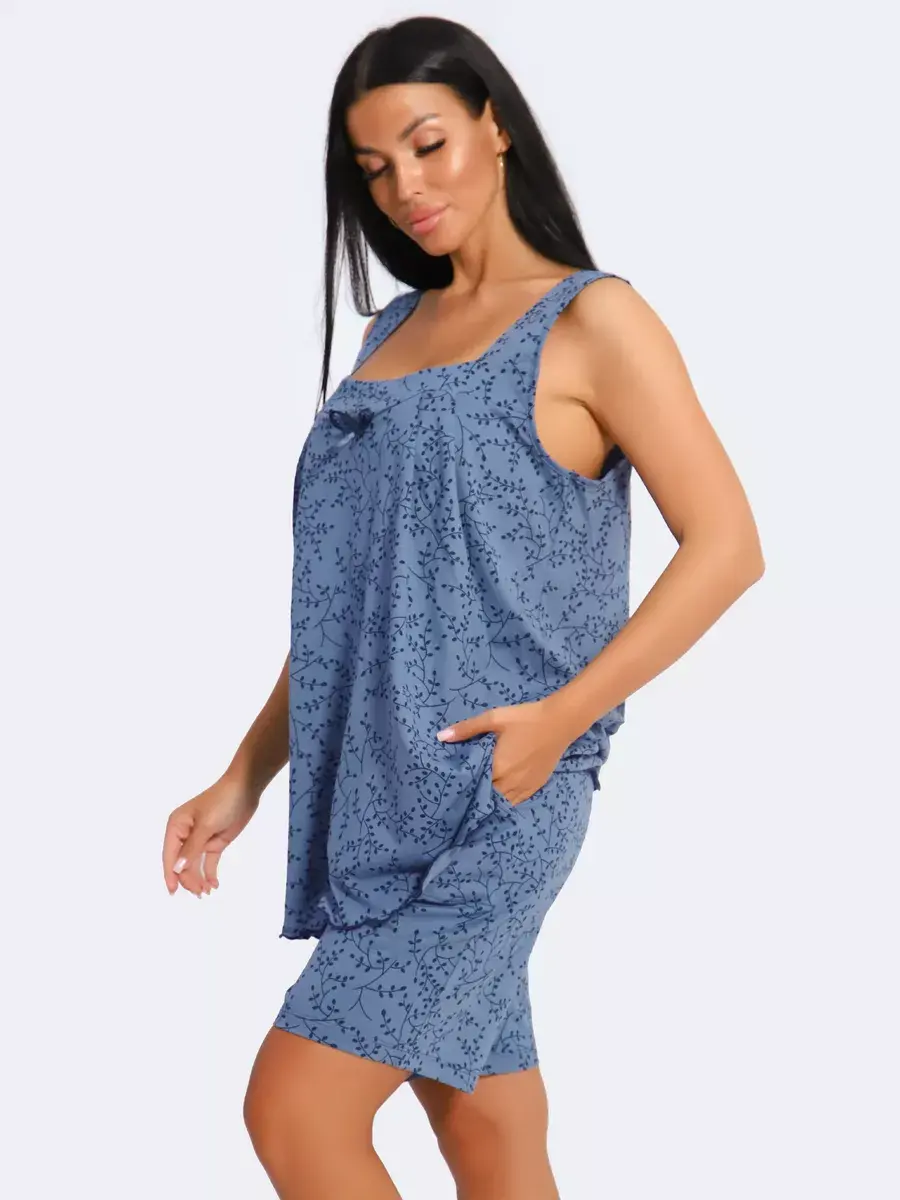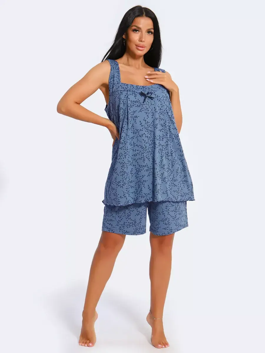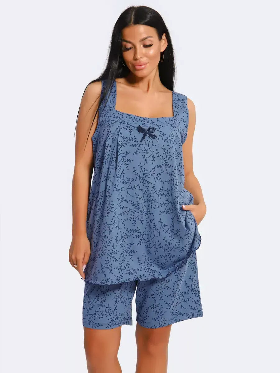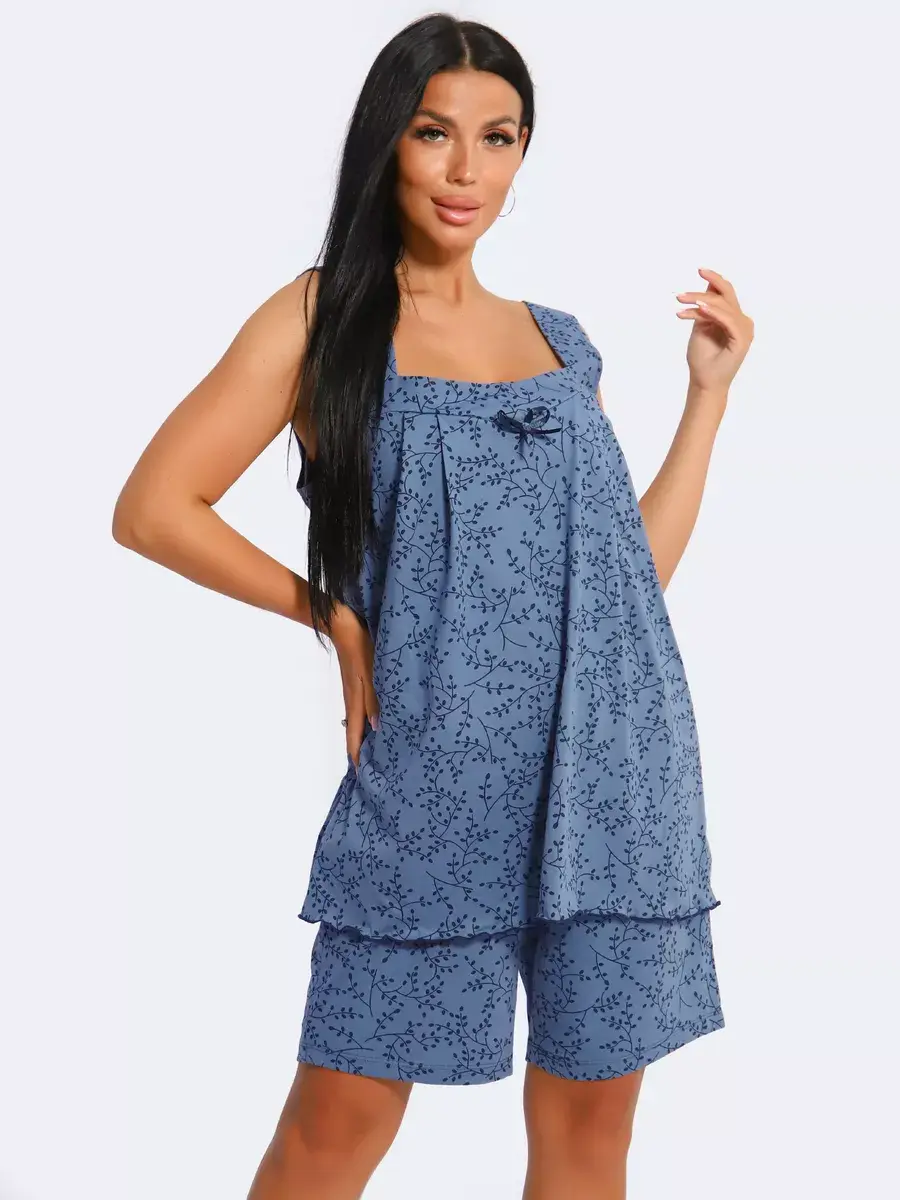 Женская пижама из хлопка - Ваш правильный выбор в поисках идеальной одежды для дома! Такая пижама подарит чувство уюта. Этот пижамный комплект невероятно легкий, невесомый. Ткань мягкая и приятная к телу, это дышащий материал. Пижама не сковывают движение. Шорты на талии оснащены мягкой резинкой, обеспечивают удобную посадку по фигуре.