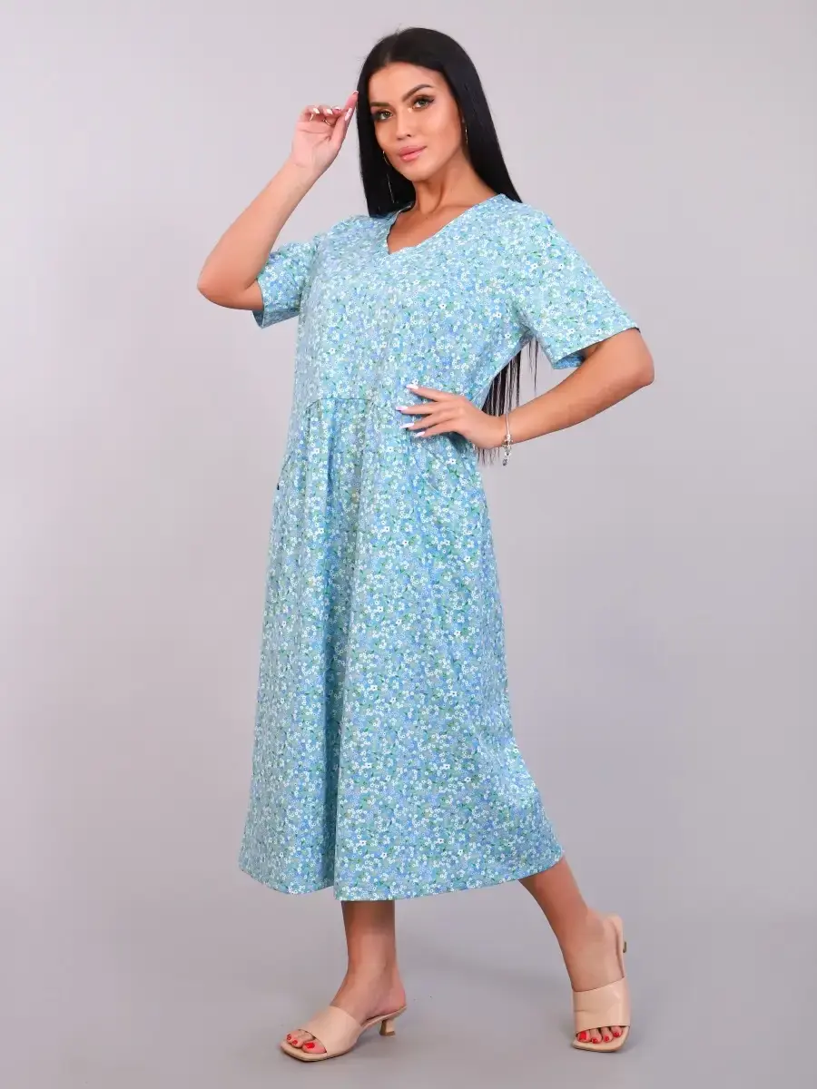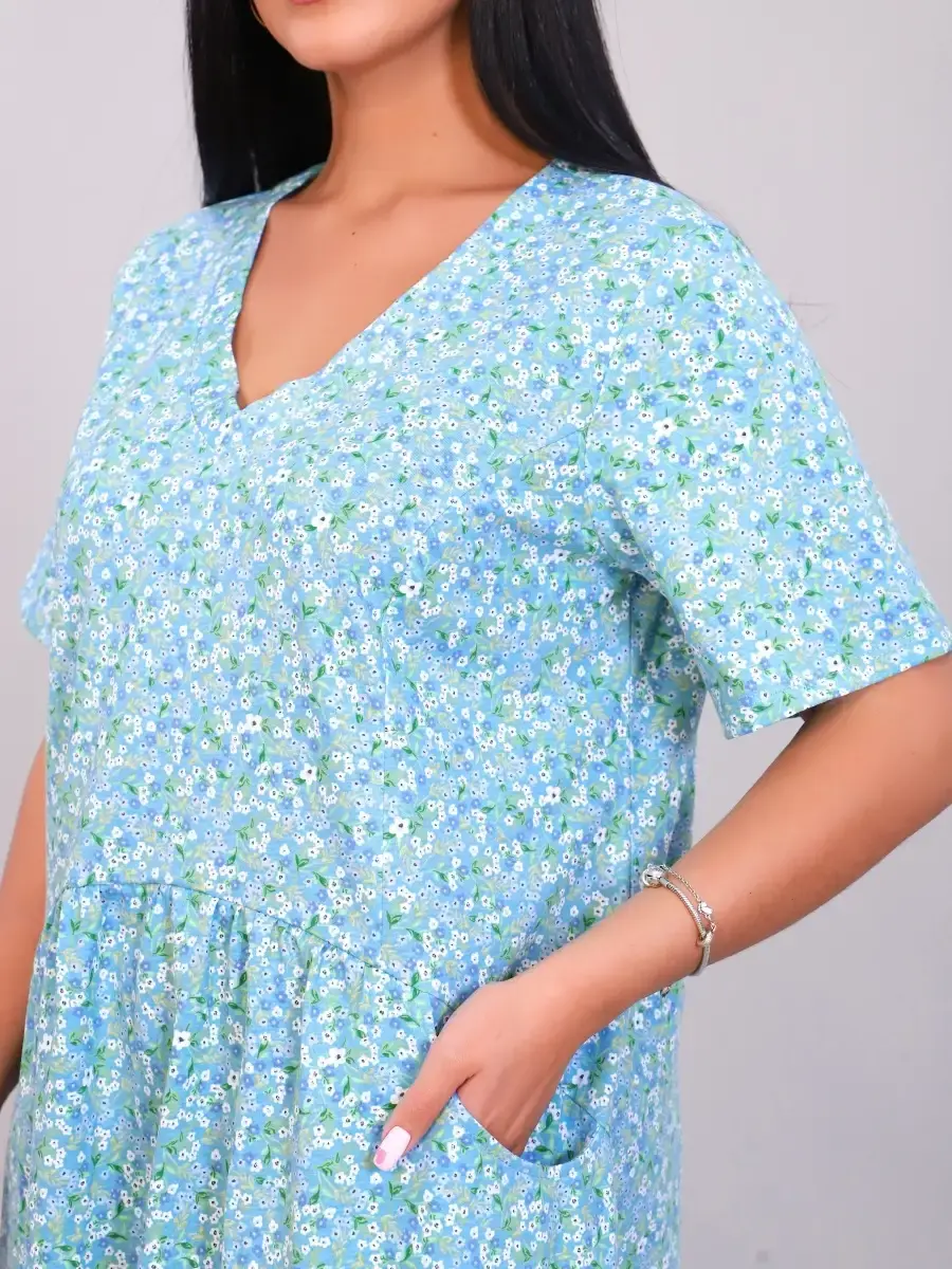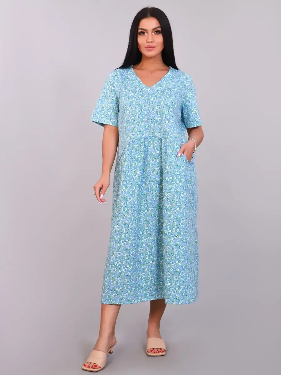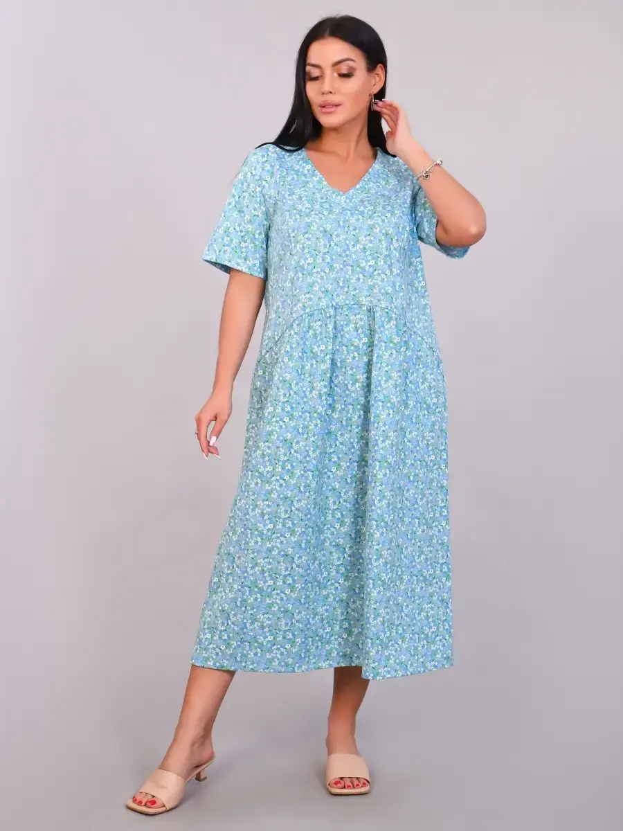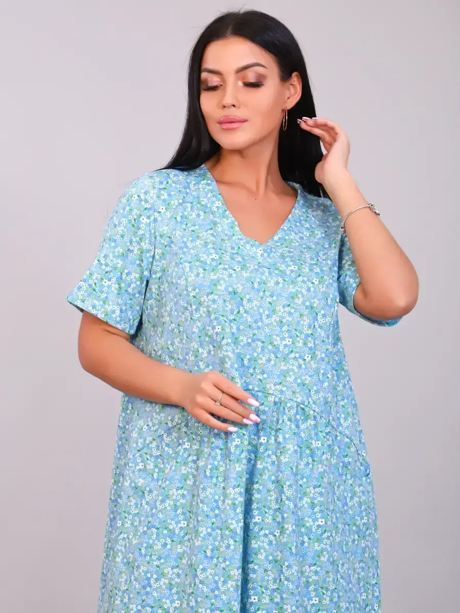 Комфортное и эффектное платье из мягкого, приятного к телу материала. За счёт идеальных лекал женское платье великолепно сидит на любой фигуре, в нем приятно не только окунуться в мир спокойствия и уюта после рабочего дня, но и посвятить себя ежедневным заботам по дому. За счет свободного кроя платье летнее подойдет для беременных женщин, подходит под категорию будущие мамы. Размерный ряд имеет большие размеры . Легкое и удобное платье будет уместно и дома, и на отдыхе, придаст образу нотку очарования и женственности.