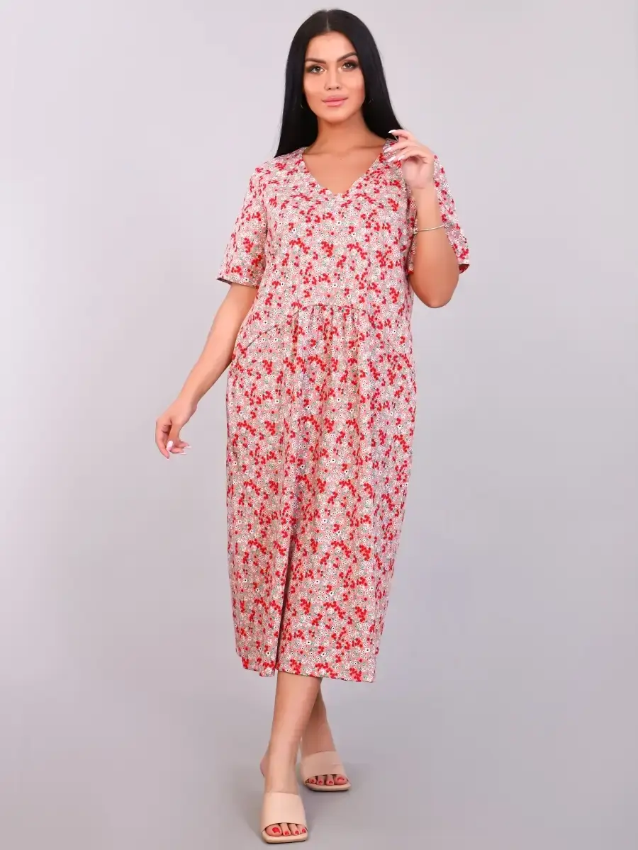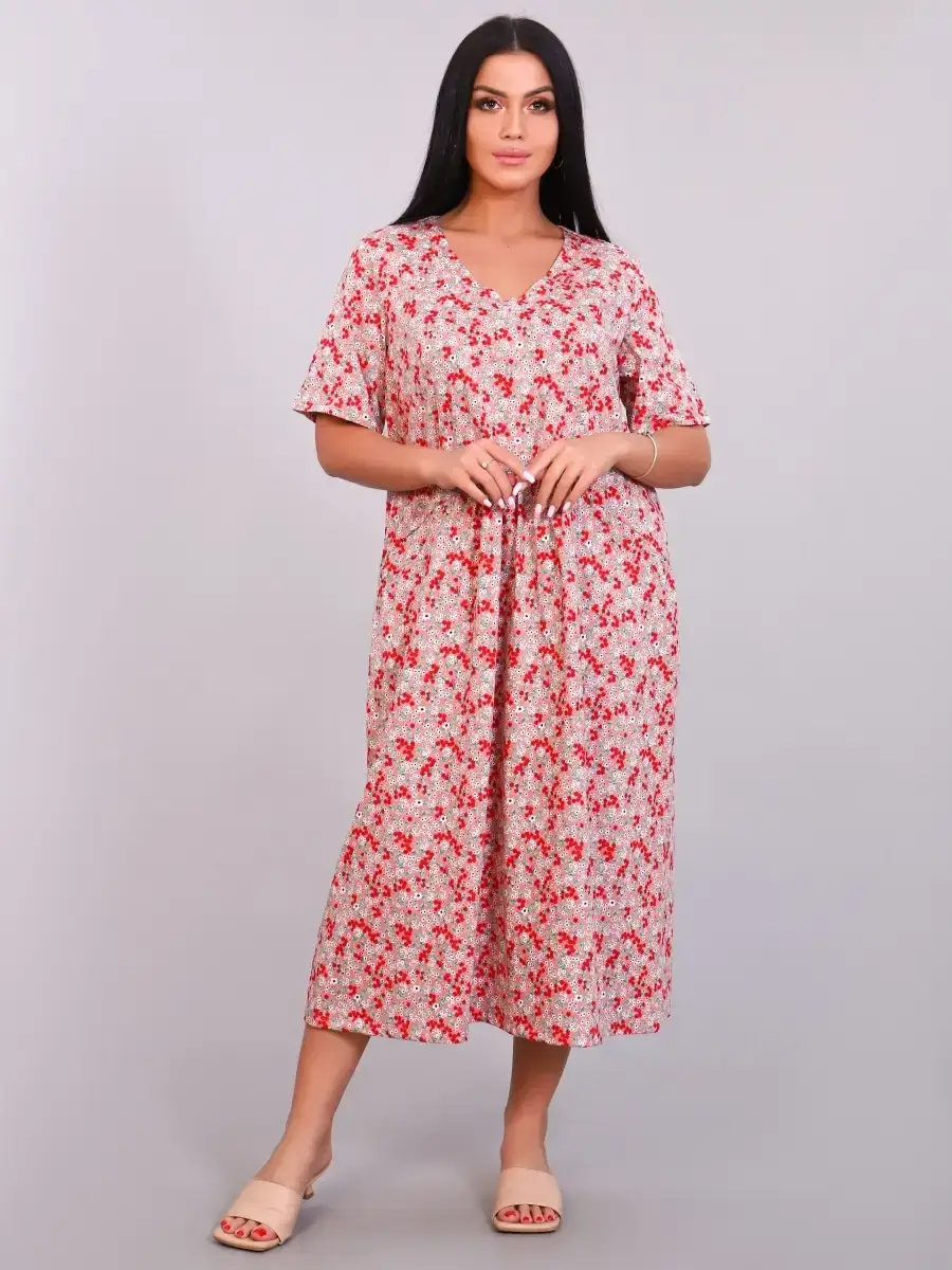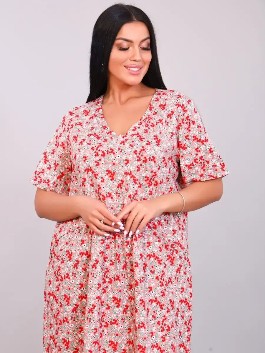 Комфортное и эффектное платье из мягкого, приятного к телу материала. За счёт идеальных лекал женское платье великолепно сидит на любой фигуре, в нем приятно не только окунуться в мир спокойствия и уюта после рабочего дня, но и посвятить себя ежедневным заботам по дому. За счет свободного кроя платье летнее подойдет для беременных женщин, подходит под категорию будущие мамы. Размерный ряд имеет большие размеры . Легкое и удобное платье будет уместно и дома, и на отдыхе, придаст образу нотку очарования и женственности.