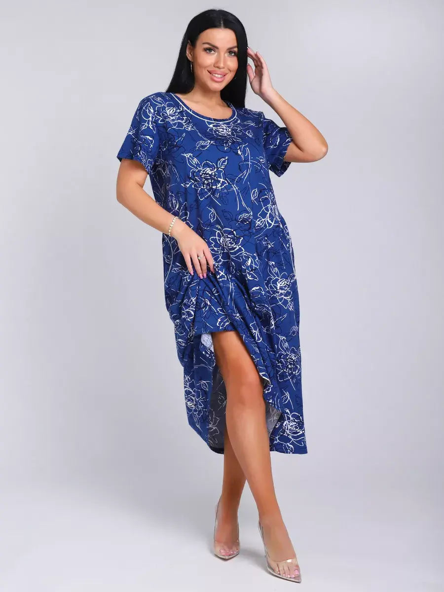 Яркое летнее платье. Модель покроя - бохо с короткими рукавами и втачными карманами. Округлый вырез горловины. Летнее платье станет отличным вариантом как для офиса, так и для прогулок по городу, придаст его обладательнице чувство легкости и комфорта. Подойдет для любого возраста и мероприятия.