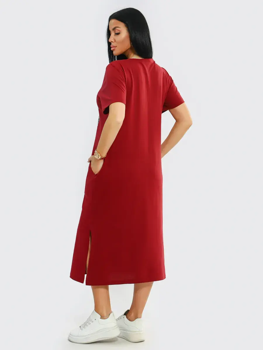 Платье из кулирного полотна, производства Турции, 100% хлопок. Платье подойдет для повседневной носки, для дома, прогулок, отдыха. Платье имеет боковые карманы и разрезы по бокам внизу на подоле. Платье удобное в носке, не стесняет движений, прямой покрой подойдет на любую фигуру. Платье имеет широкий размерный ряд с 48р по 62р.