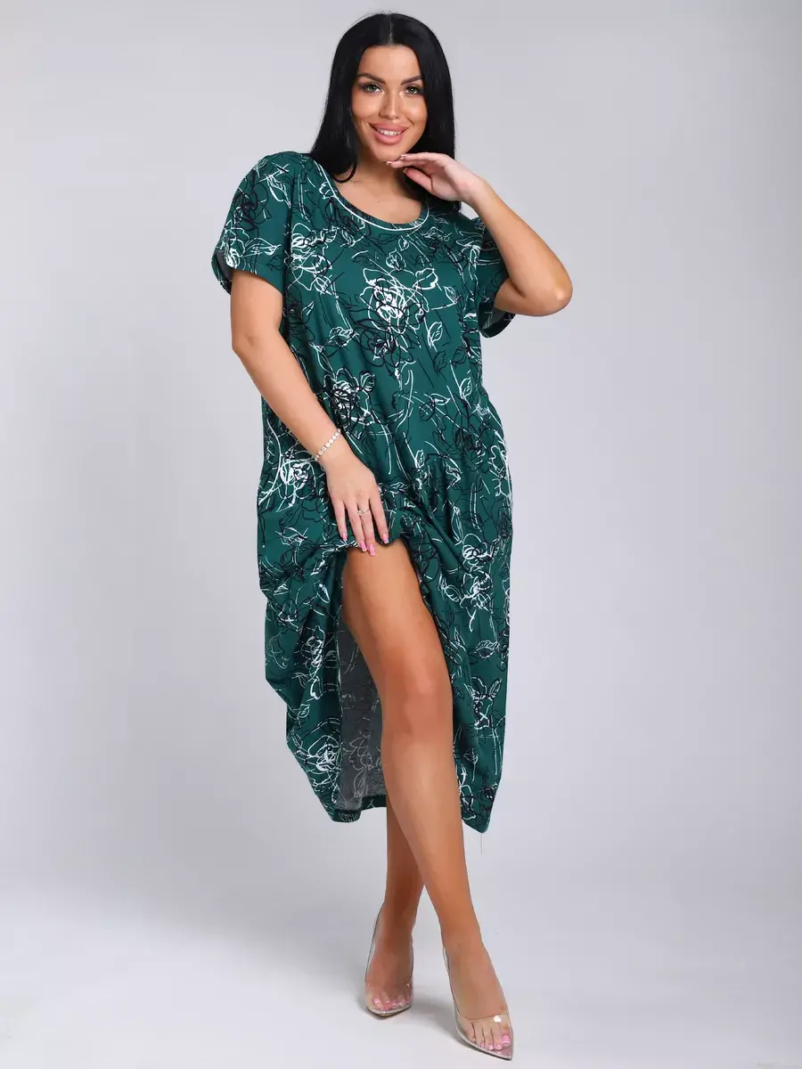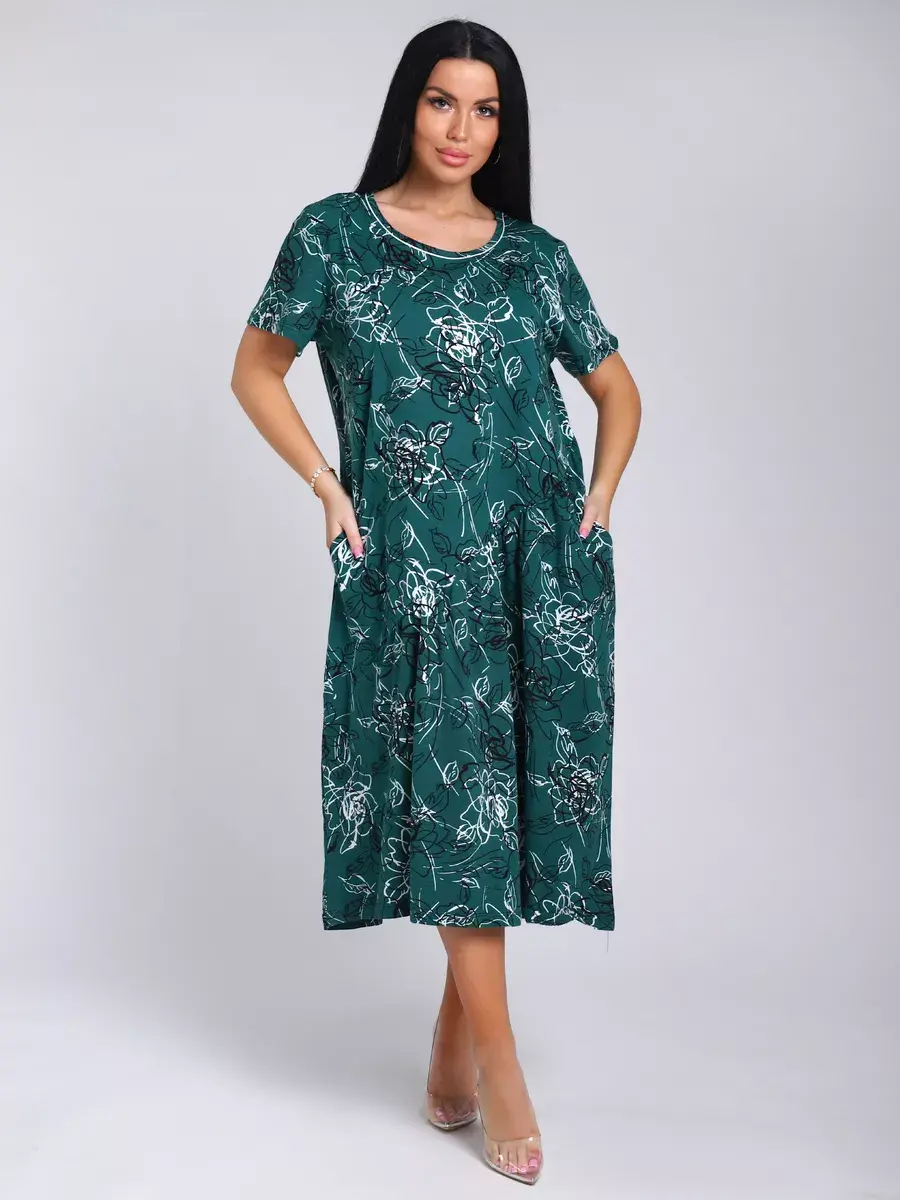 Яркое летнее платье. Модель покроя - бохо с короткими рукавами и втачными карманами. Округлый вырез горловины. Летнее платье станет отличным вариантом как для офиса, так и для прогулок по городу, придаст его обладательнице чувство легкости и комфорта. Подойдет для любого возраста и мероприятия.