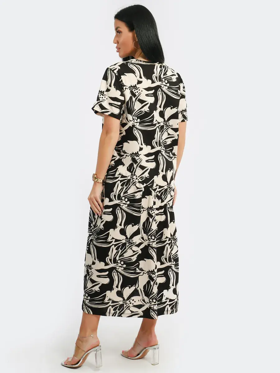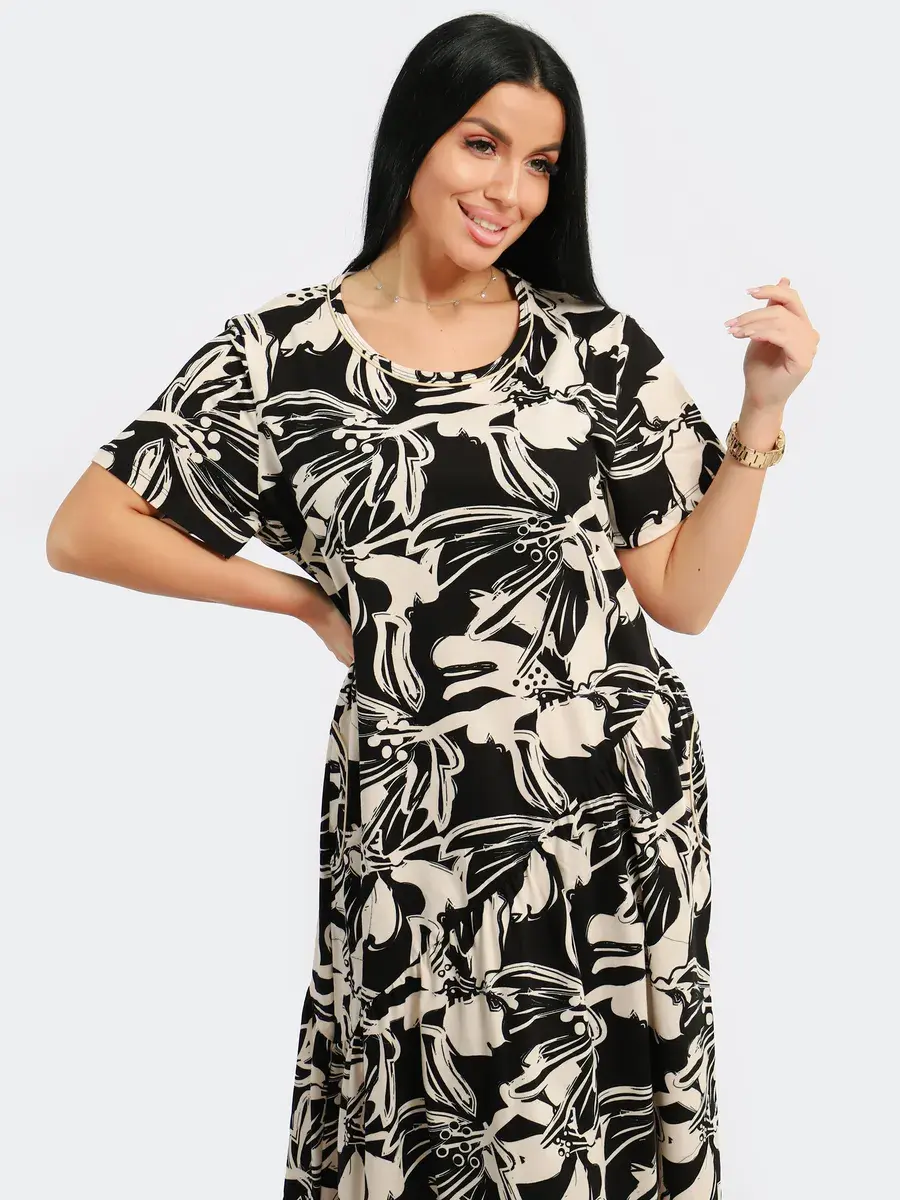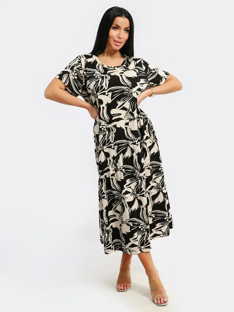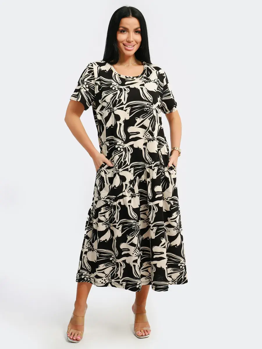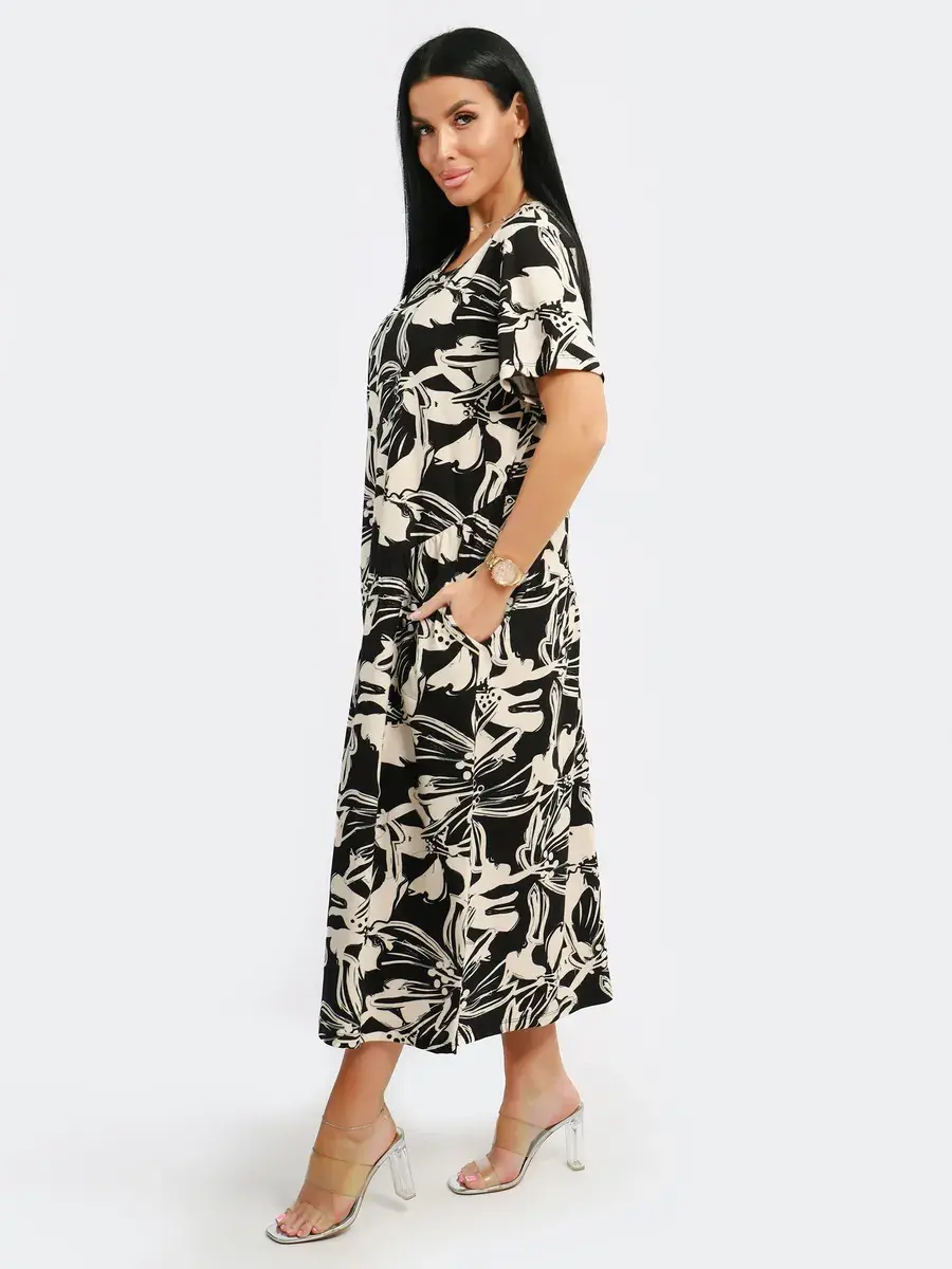 Яркое летнее платье. Модель покроя - бохо с короткими рукавами и втачными карманами. Округлый вырез горловины. Летнее платье станет отличным вариантом как для офиса, так и для прогулок по городу, придаст его обладательнице чувство легкости и комфорта. Подойдет для любого возраста и мероприятия.