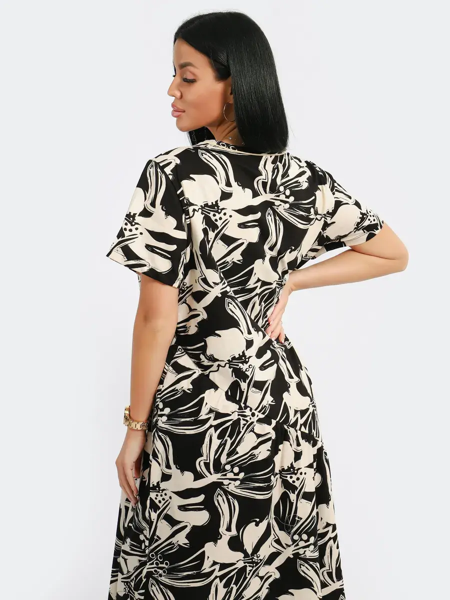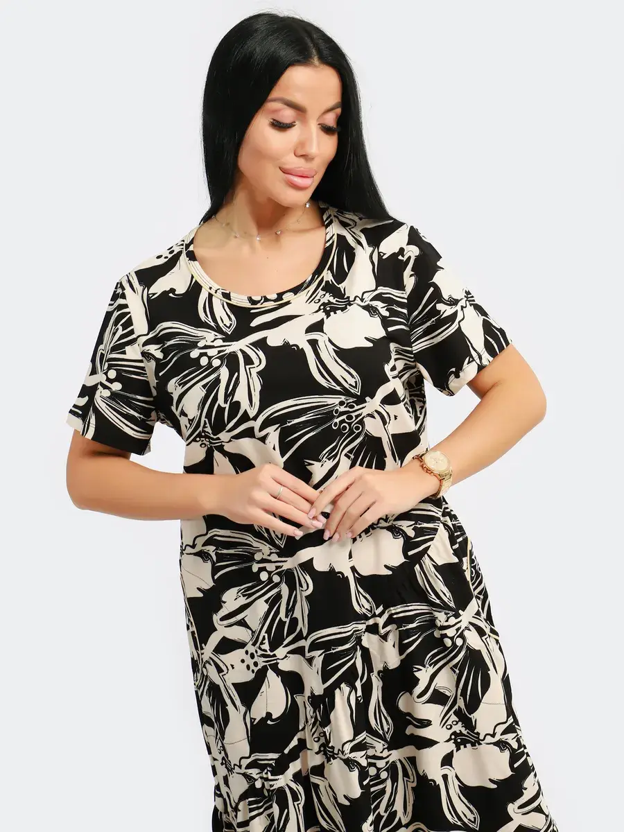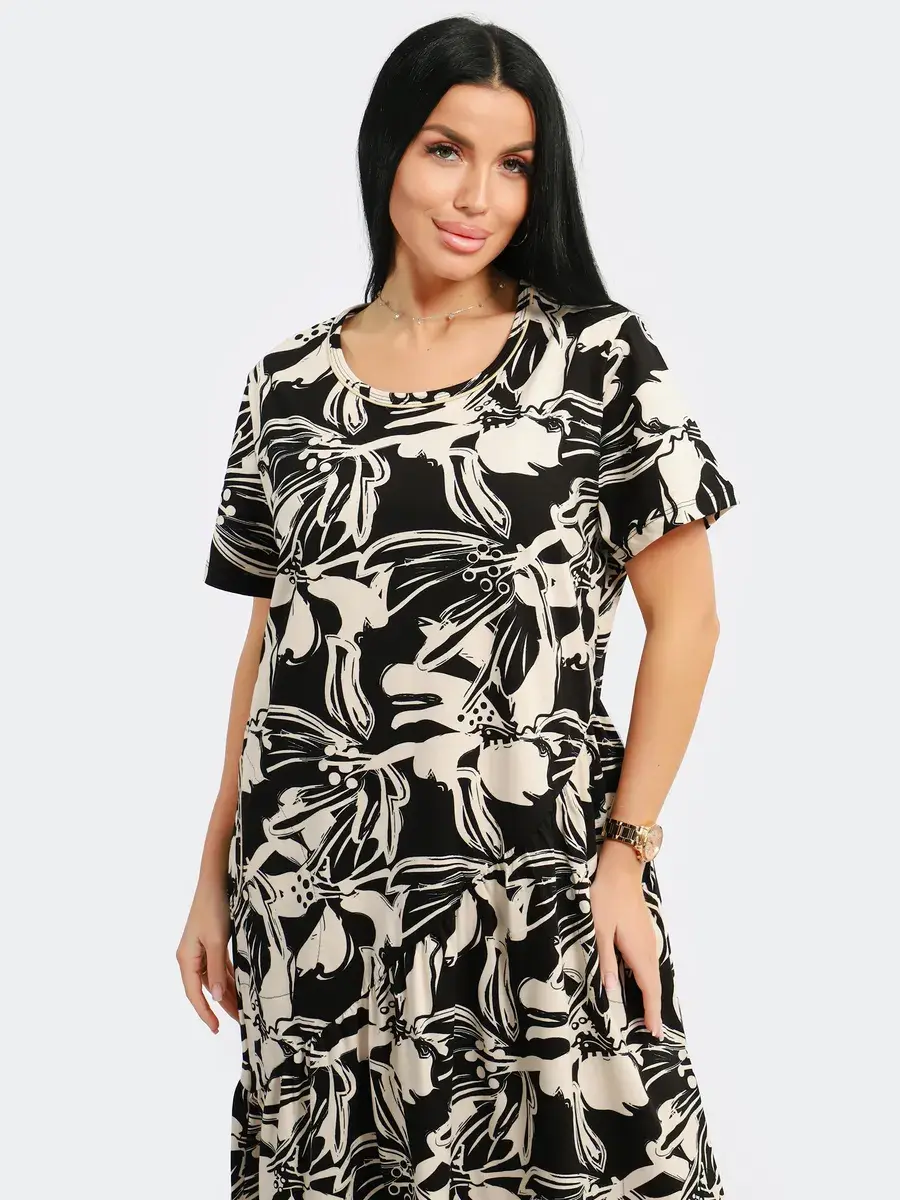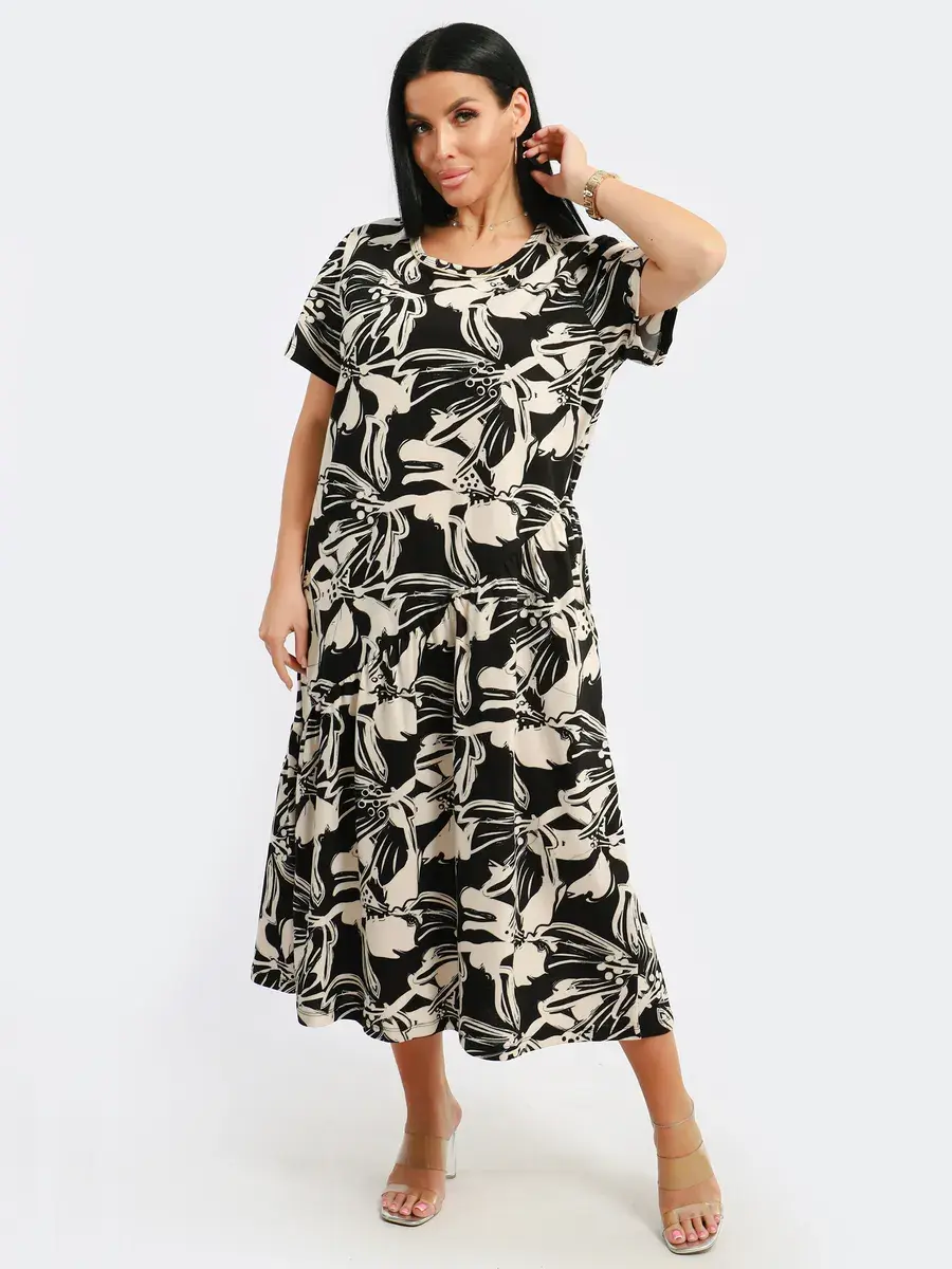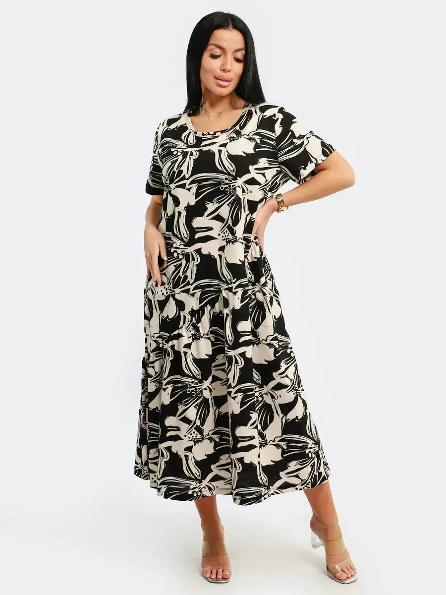 Яркое летнее платье. Модель покроя - бохо с короткими рукавами и втачными карманами. Округлый вырез горловины. Летнее платье станет отличным вариантом как для офиса, так и для прогулок по городу, придаст его обладательнице чувство легкости и комфорта. Подойдет для любого возраста и мероприятия.