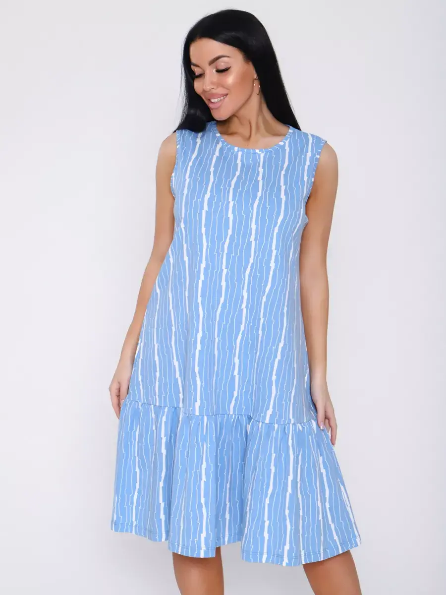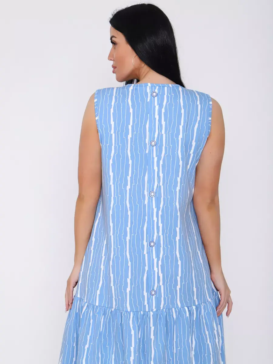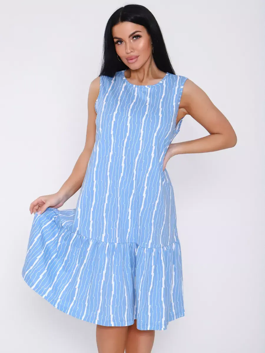 Отличное летнее платье из хлопковой ткани, незаменимая вещь для отдыха, летних прогулок в городе и на природе. Платье трапеция скроет все недостатки фигуры. Платье легкое, невесомое, будет незаменимо в жару! Платье можно компановать с любой обувью, каблук, летние шлепки, спортивный образ придадут легкие кроссовки или кеды. Удачный выбор для тех, кто ценит комфорт!