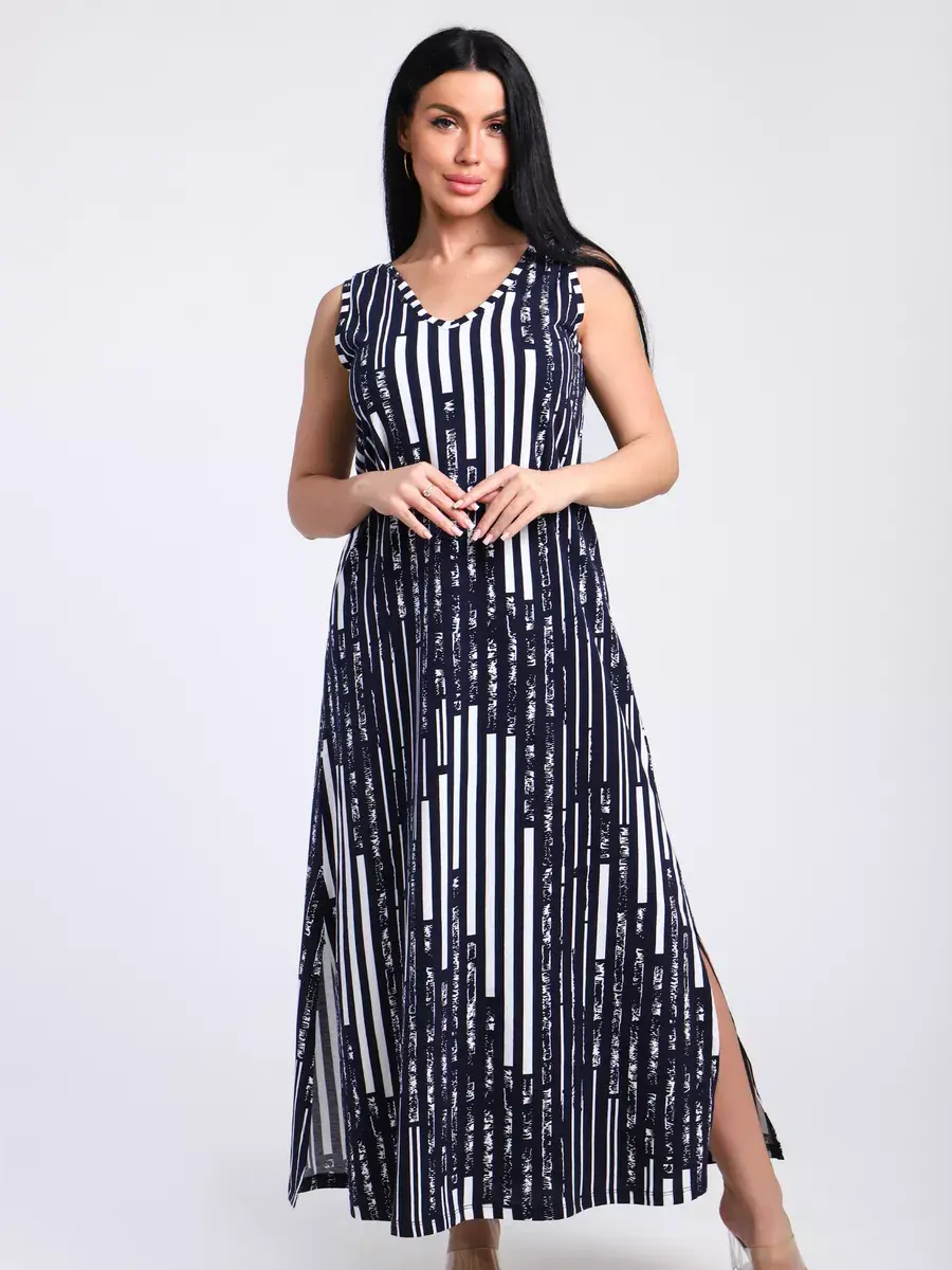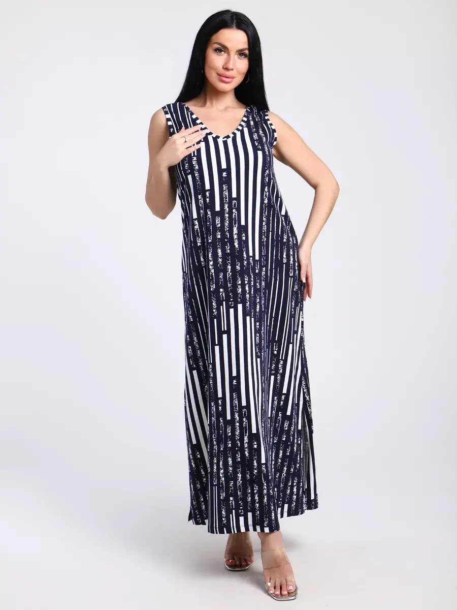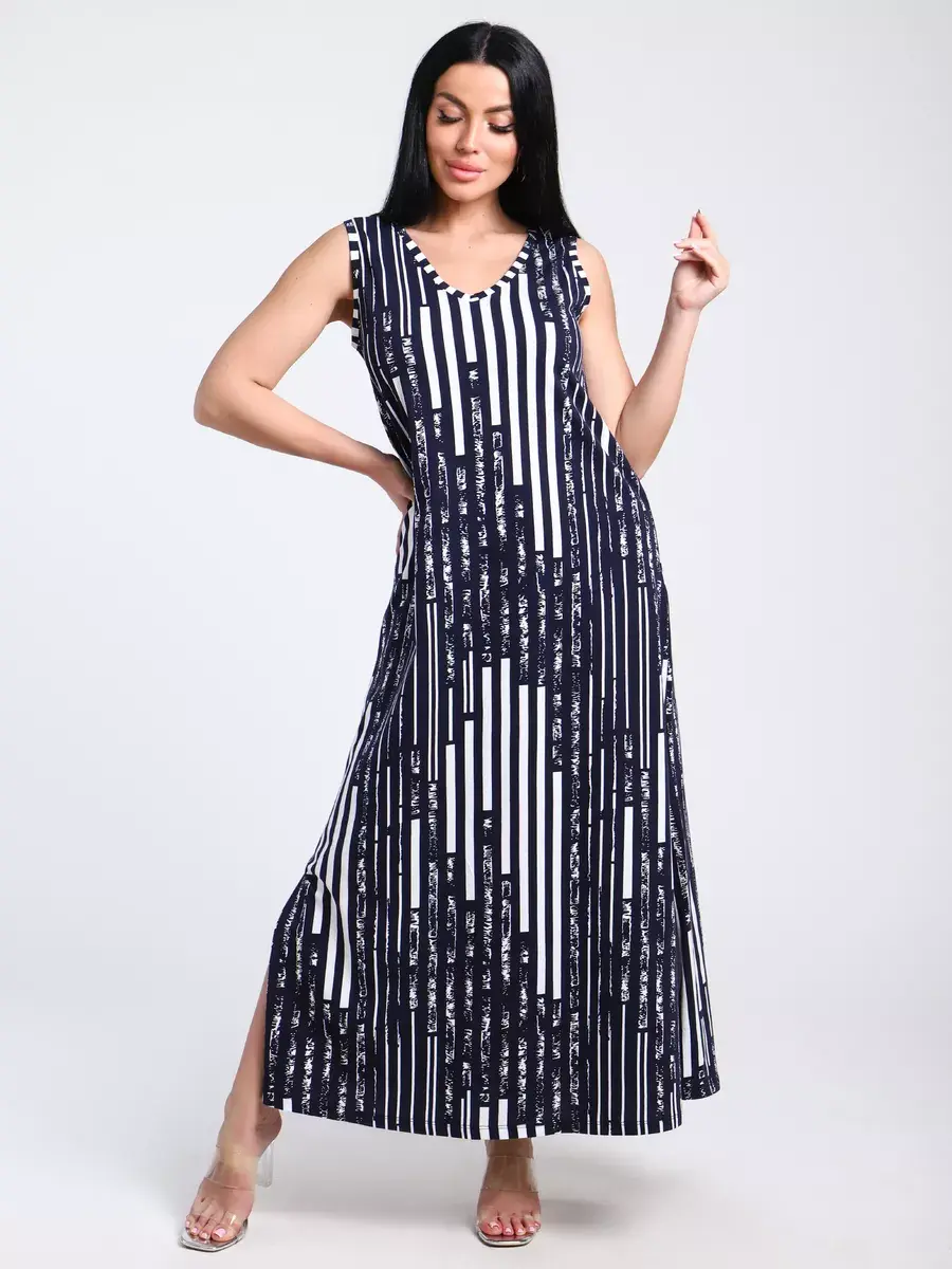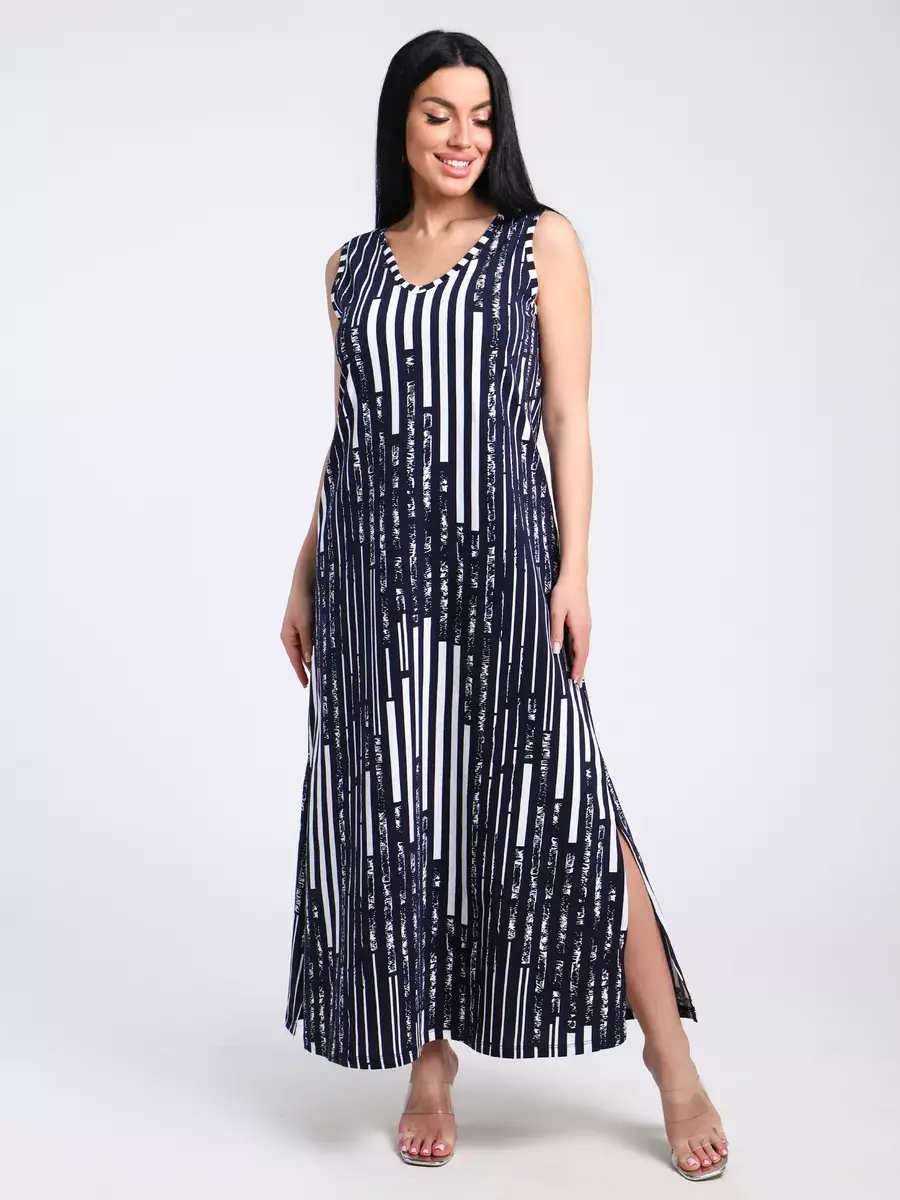 Мы создали для Вас платье красивой модели из турецкого хлопка. Платье летнее, легкое, струящееся, удлиненное с разрезами по бокам, с красивым вырезом горловины и изящной спинкой с завязкой, подойдет на любой тип фигуры. Принт платья- вертикальные полосы скроют все недостатки фигуры и будут подчеркивать Ваши достоинства. Широкий размерный ряд с 46-60, позволит Вам выбрать именно Ваш размер. Желаем Вам удачных покупок!