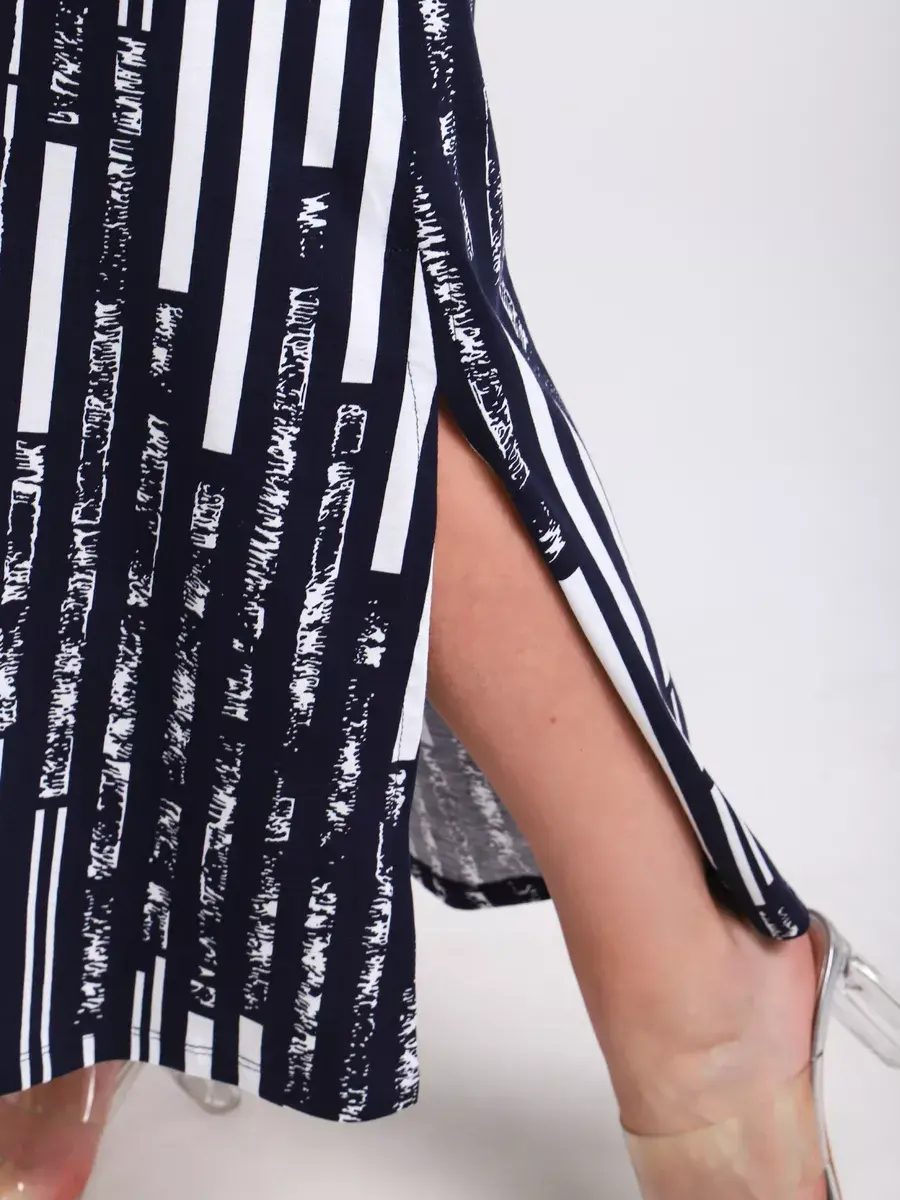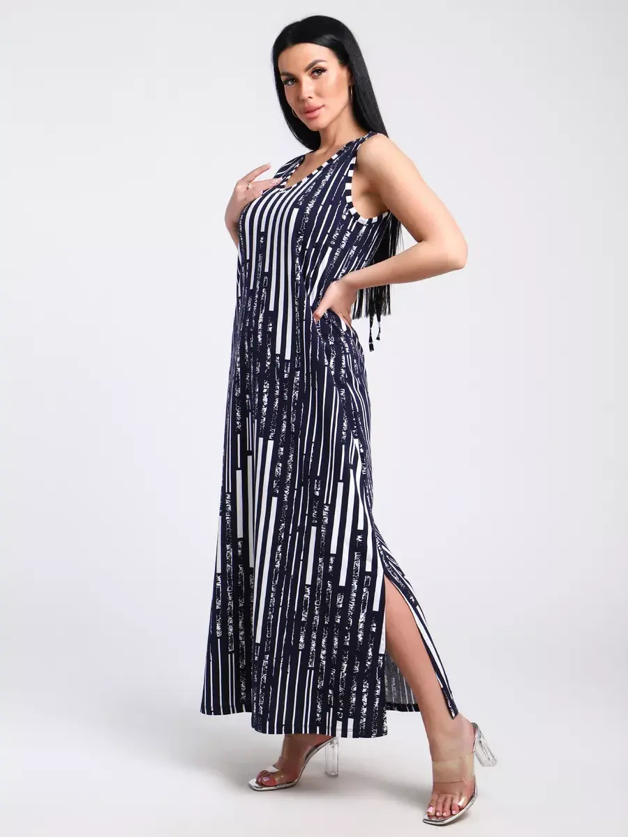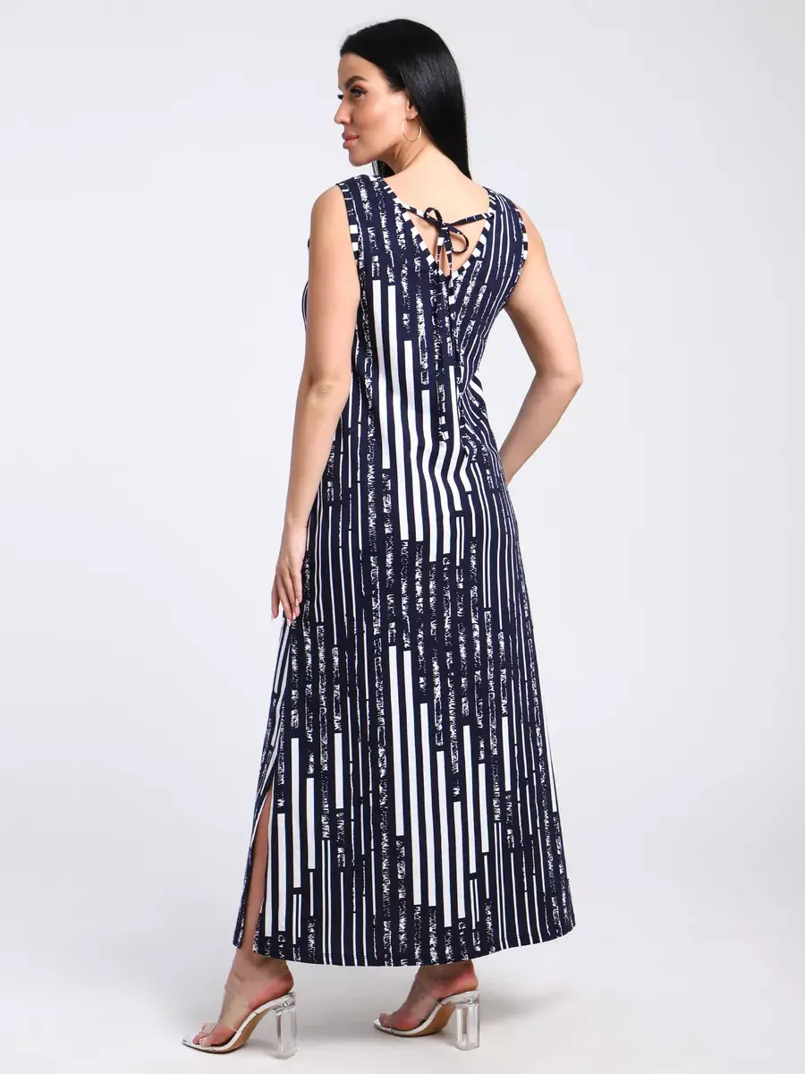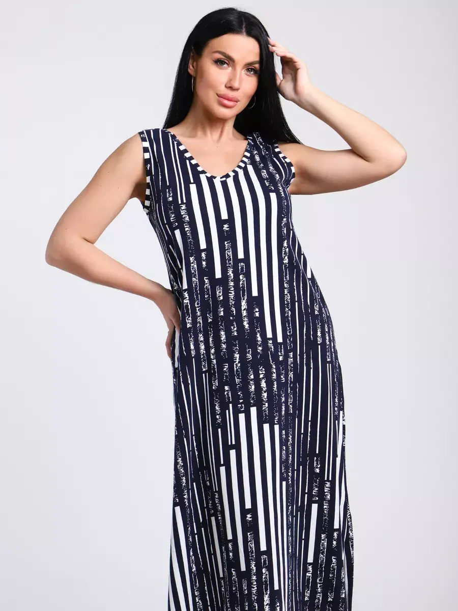 Мы создали для Вас платье красивой модели из турецкого хлопка. Платье летнее, легкое, струящееся, удлиненное с разрезами по бокам, с красивым вырезом горловины и изящной спинкой с завязкой, подойдет на любой тип фигуры. Принт платья- вертикальные полосы скроют все недостатки фигуры и будут подчеркивать Ваши достоинства. Широкий размерный ряд с 46-60, позволит Вам выбрать именно Ваш размер. Желаем Вам удачных покупок!