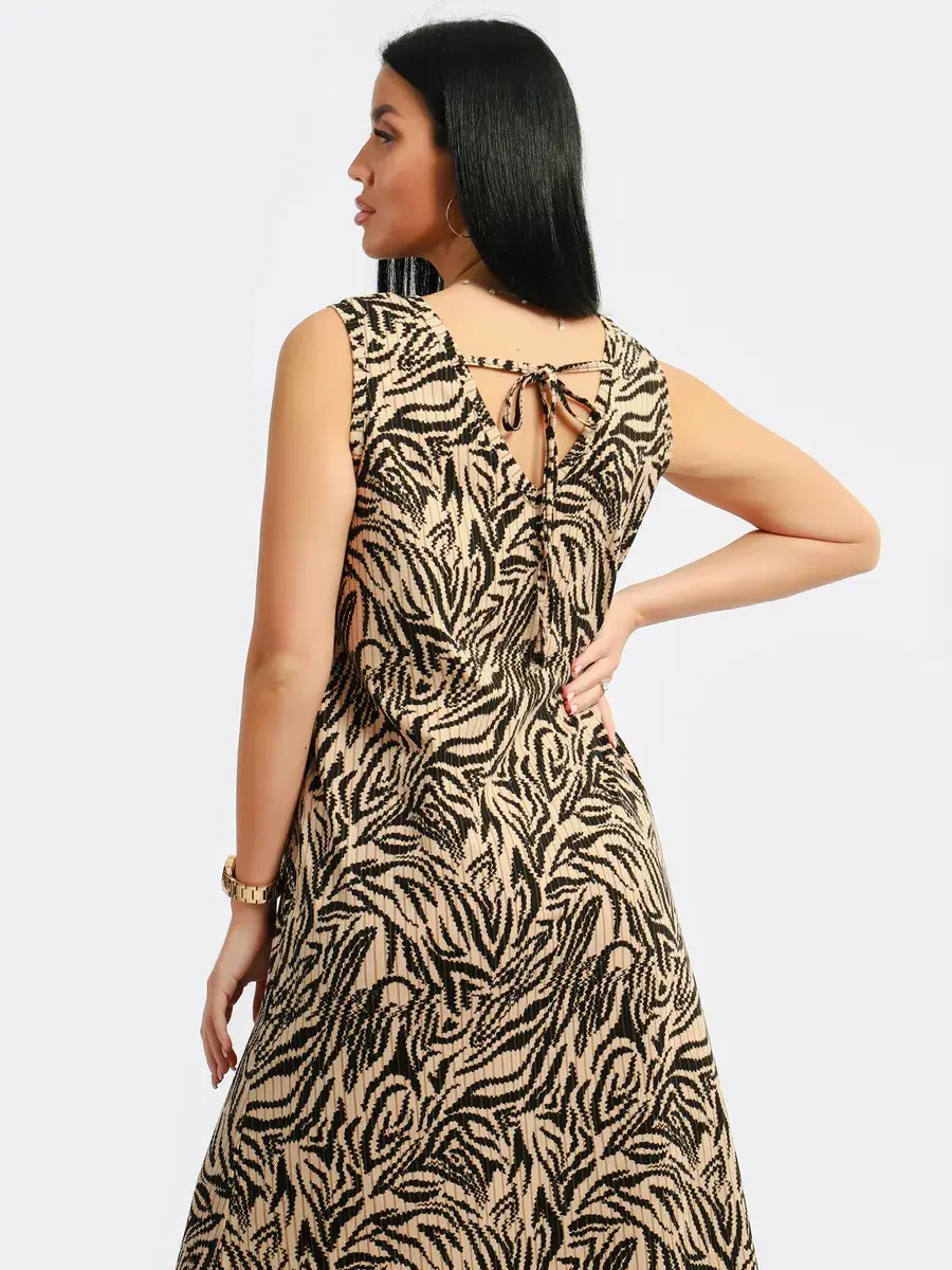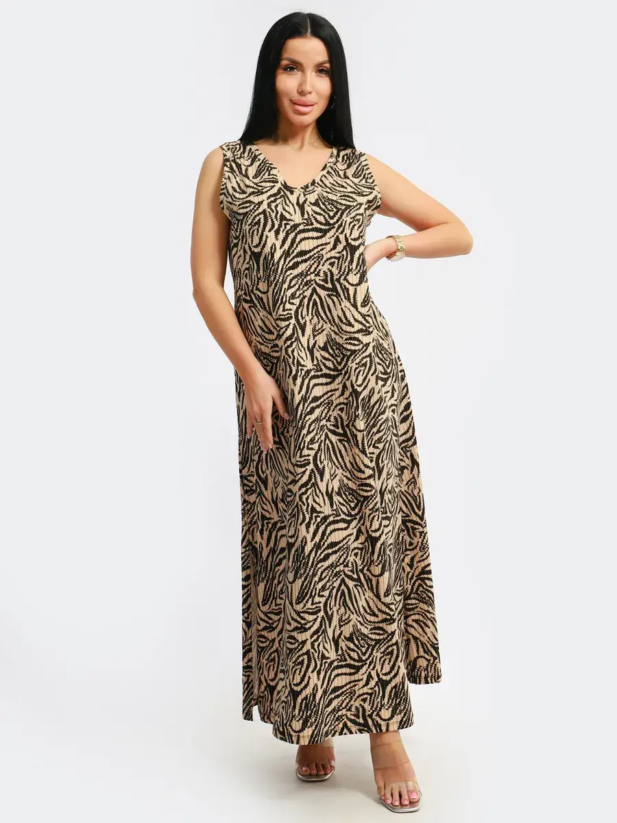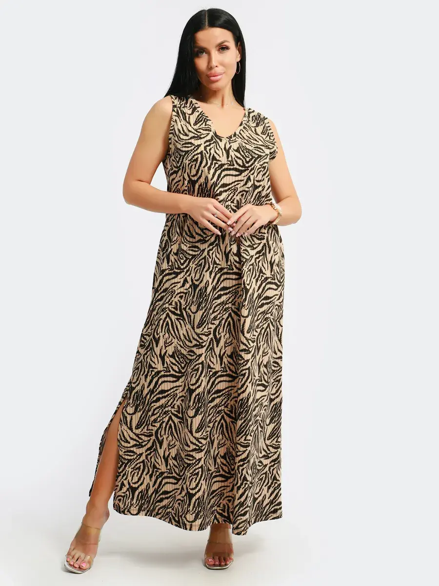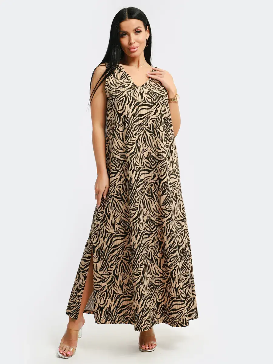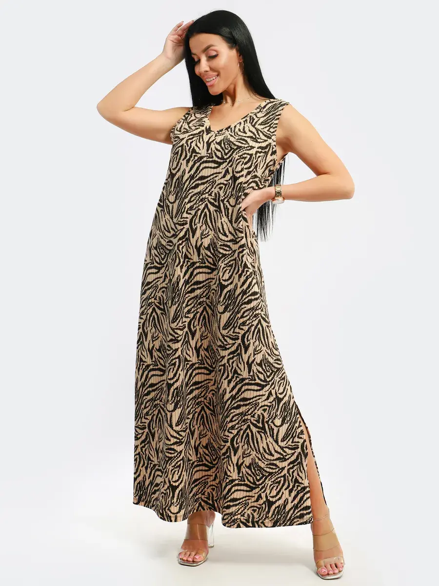 Мы создали для Вас платье красивой модели из турецкого хлопка. Платье летнее, легкое, струящееся, удлиненное с разрезами по бокам, с красивым вырезом горловины и изящной спинкой с завязкой, подойдет на любой тип фигуры. Принт платья- вертикальные полосы скроют все недостатки фигуры и будут подчеркивать Ваши достоинства. Широкий размерный ряд с 46-60, позволит Вам выбрать именно Ваш размер. Желаем Вам удачных покупок!