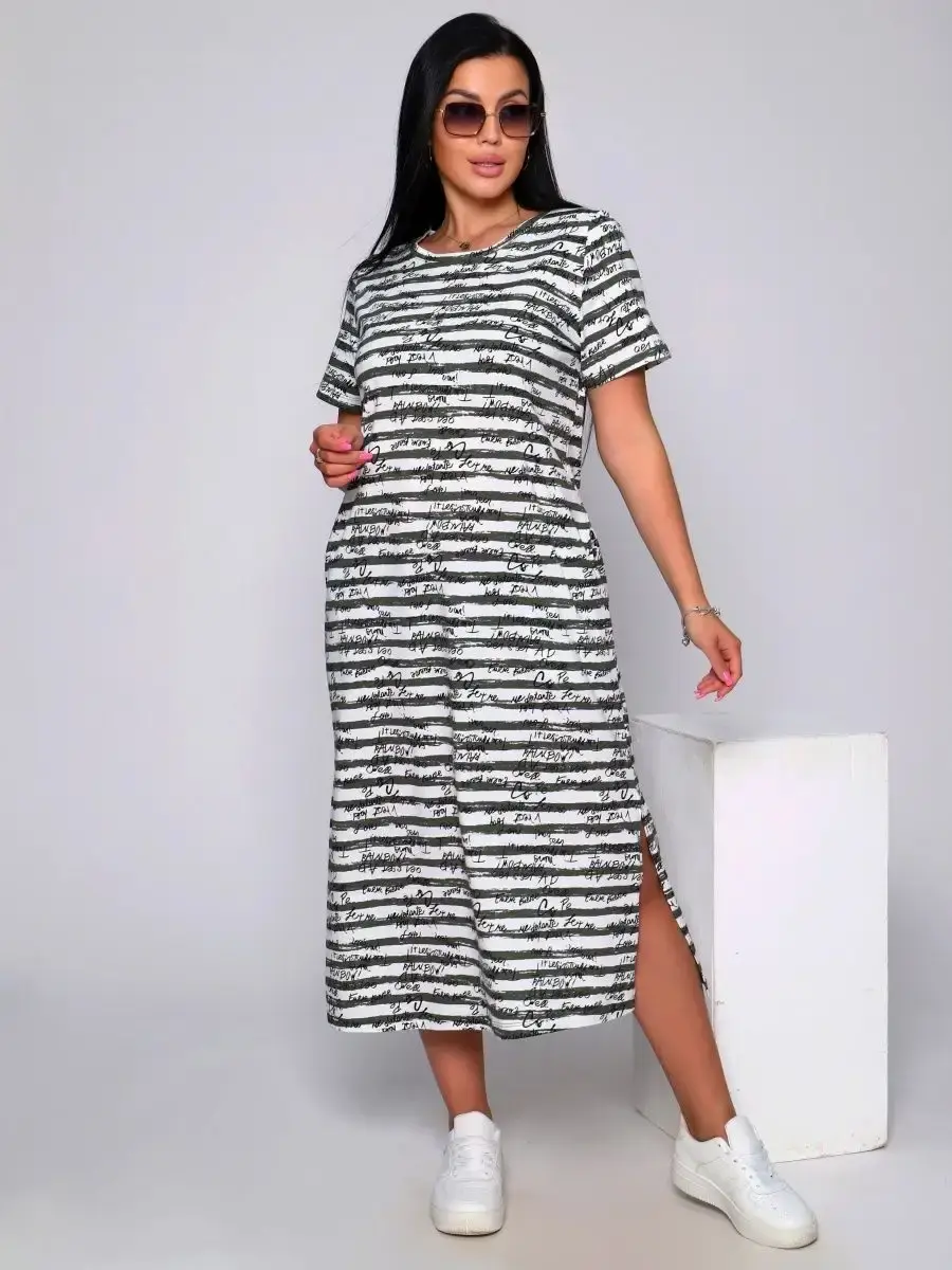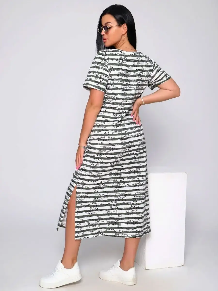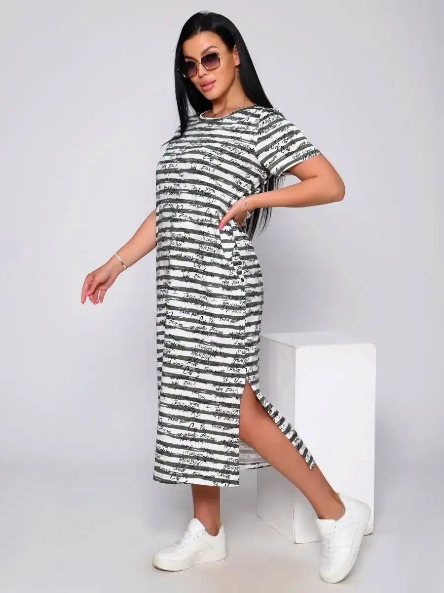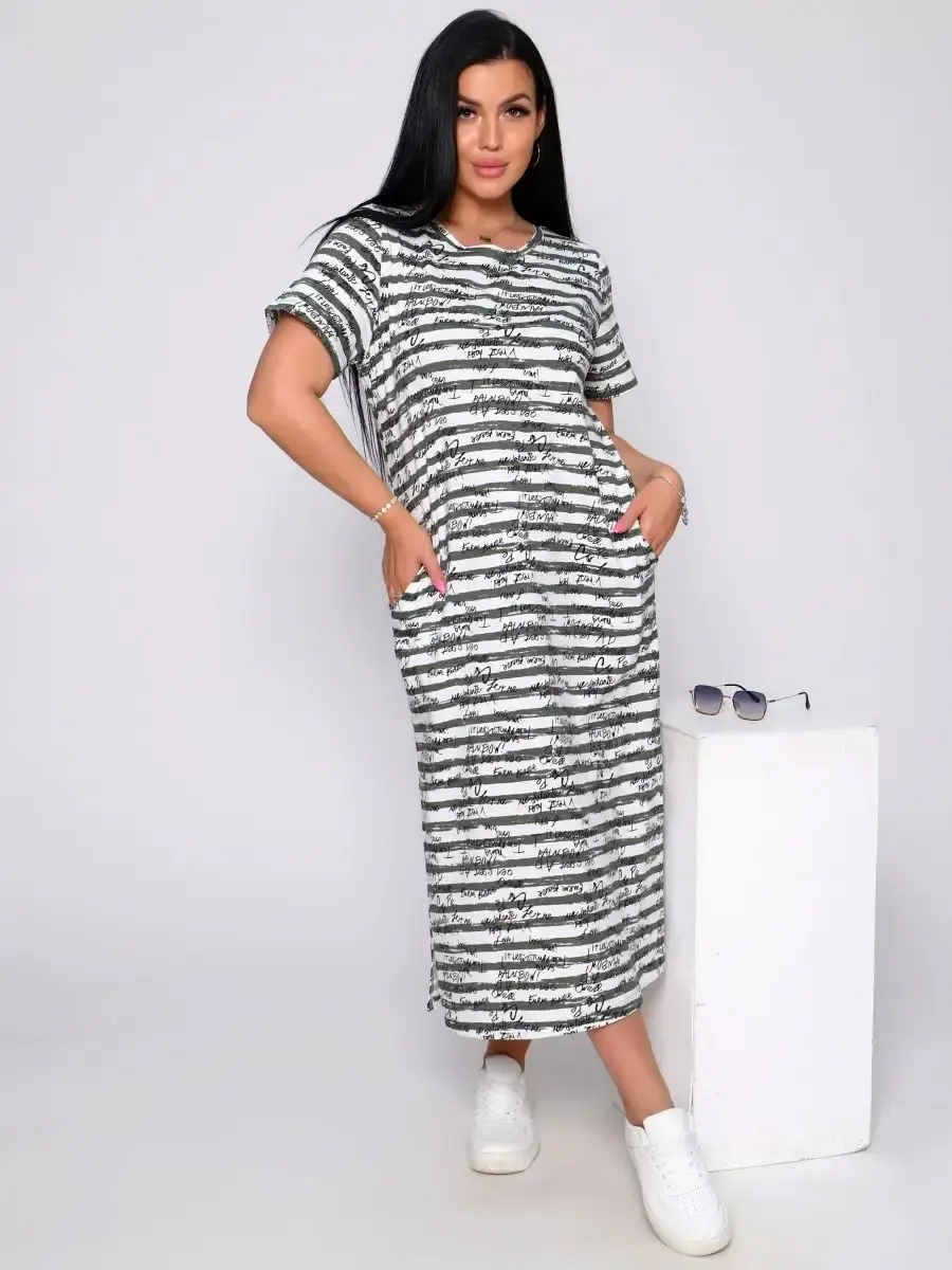 Платье из кулирного полотна, производства Турции, 100% хлопок. Платье подойдет для повседневной носки, для дома, прогулок, отдыха. Платье имеет боковые карманы и разрезы по бокам внизу на подоле. Платье удобное в носке, не стесняет движений, прямой покрой подойдет на любую фигуру. Платье имеет широкий размерный ряд с 48р по 62р.