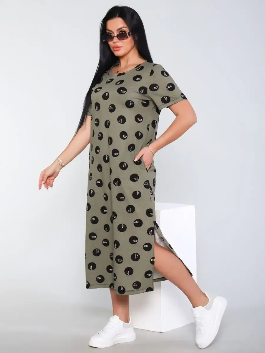 Платье из кулирного полотна, производства Турции, 100% хлопок. Платье подойдет для повседневной носки, для дома, прогулок, отдыха. Платье имеет боковые карманы и разрезы по бокам внизу на подоле. Платье удобное в носке, не стесняет движений, прямой покрой подойдет на любую фигуру. Платье имеет широкий размерный ряд с 48р по 62р.