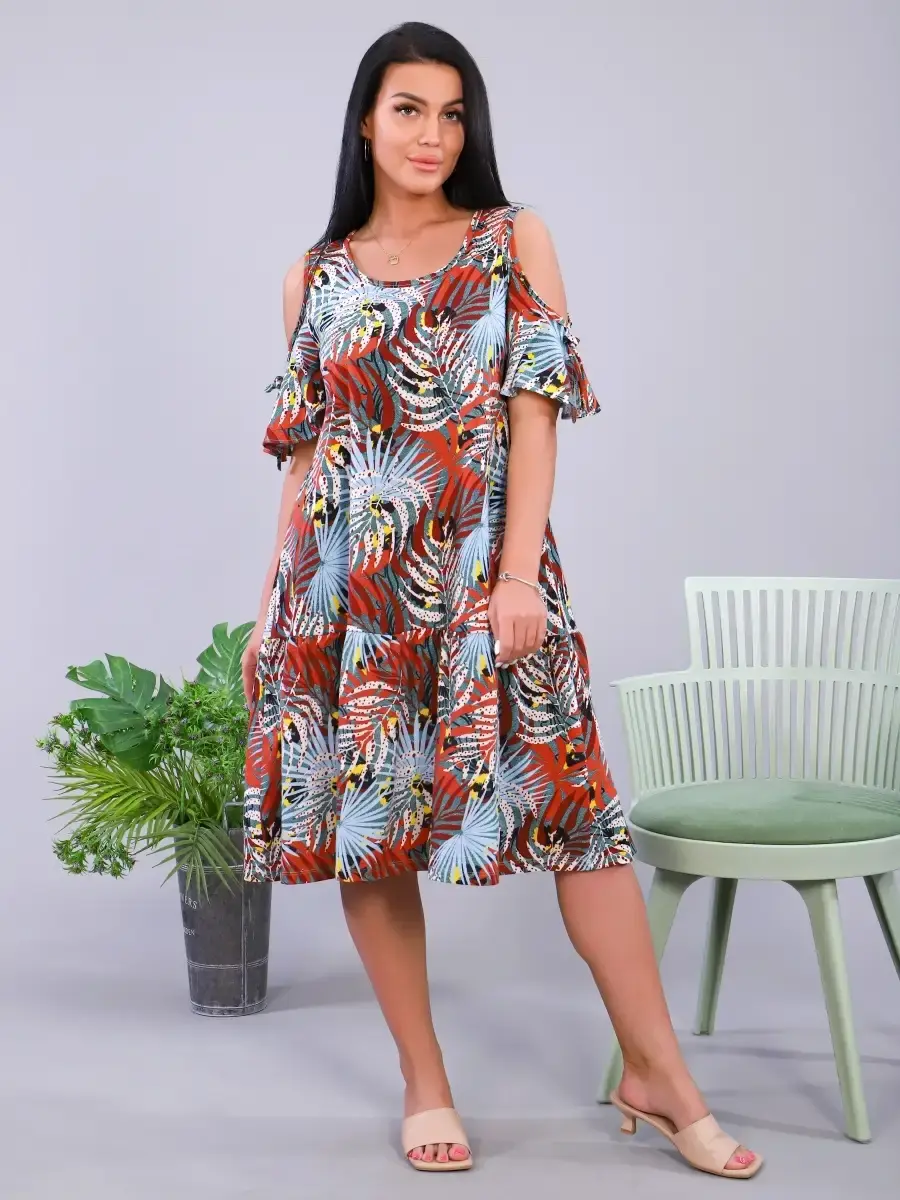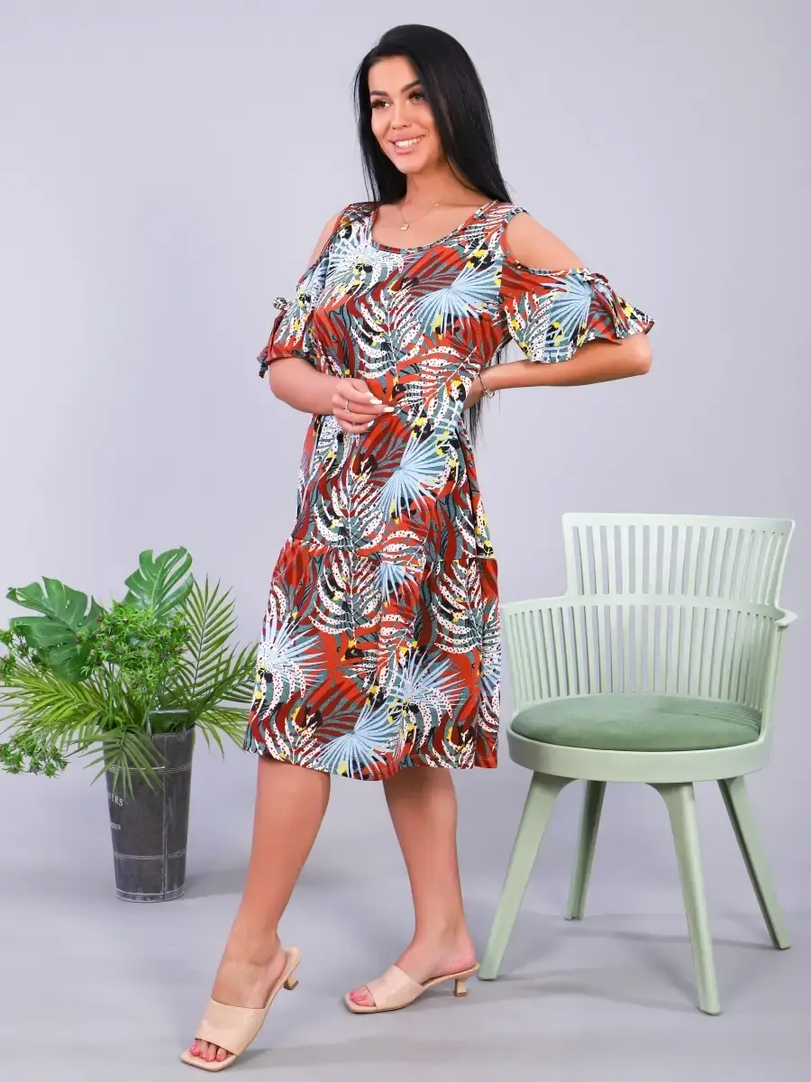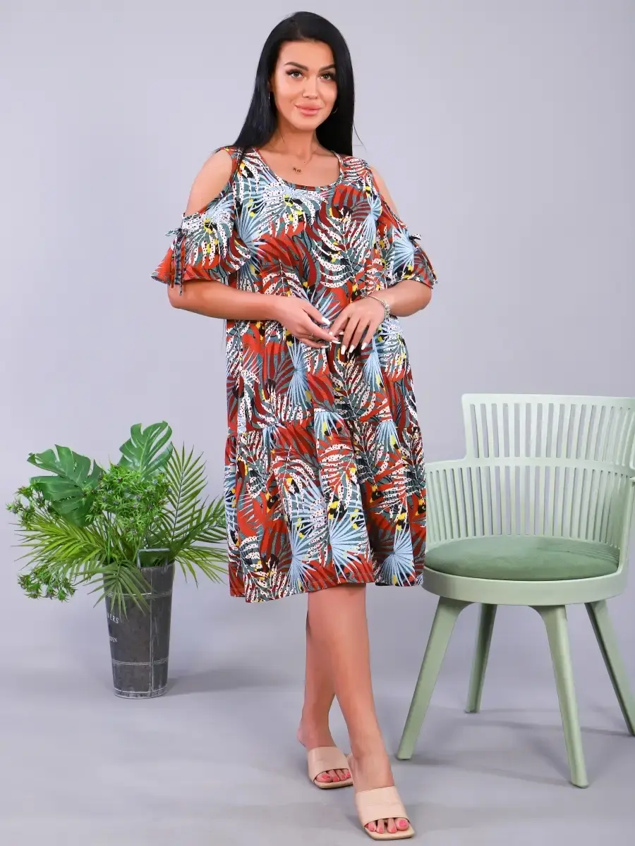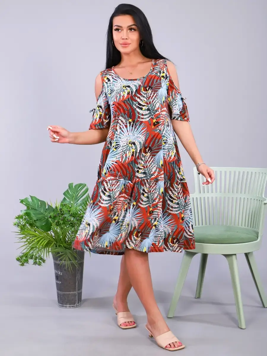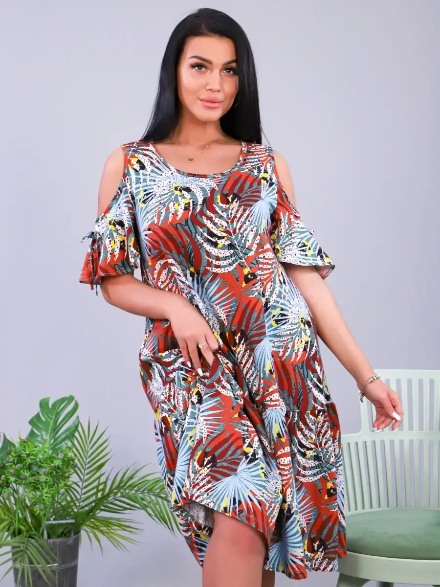 Платье из трикотажа, натуральных волокон, 100% хлопок. Подходит для дома, отдыха, прогулок. Скроет все недостатки фигуры. Яркие краски поднимут Вам настроение. Платье имеет широкий размерный ряд и большие размеры. Отличный подарок для Ваших близких.